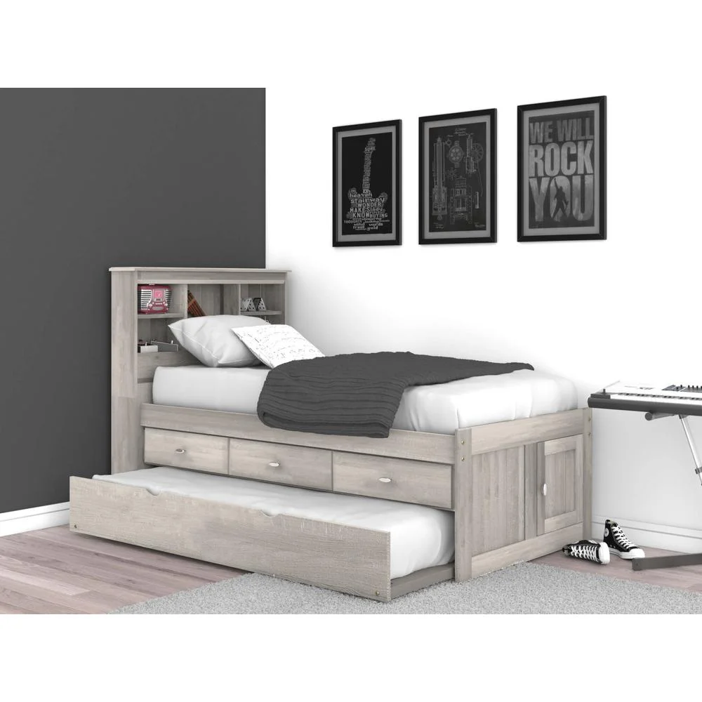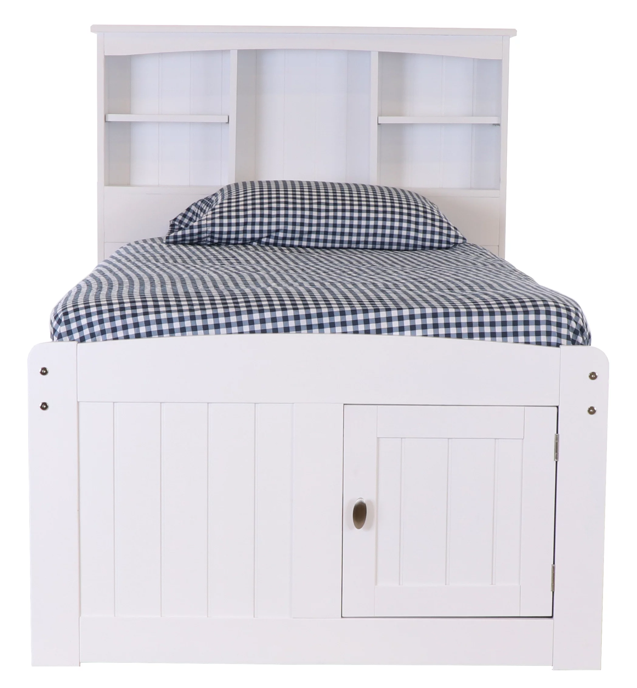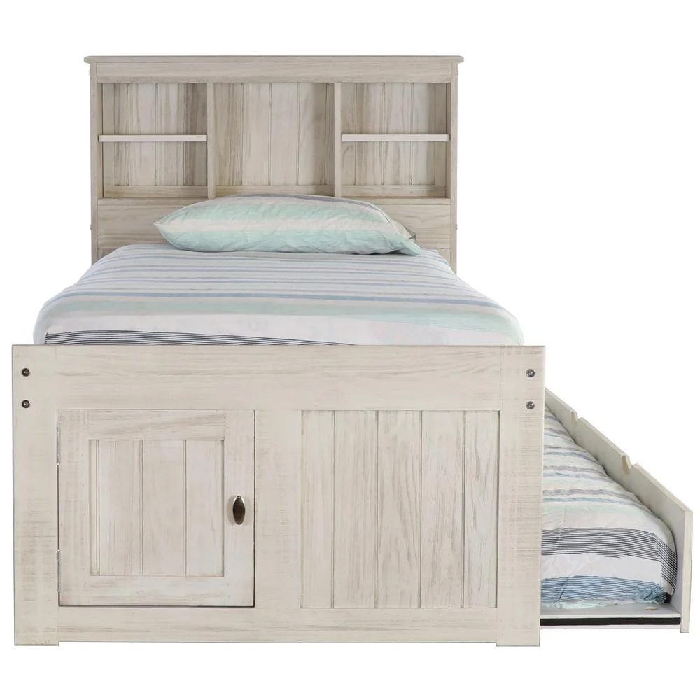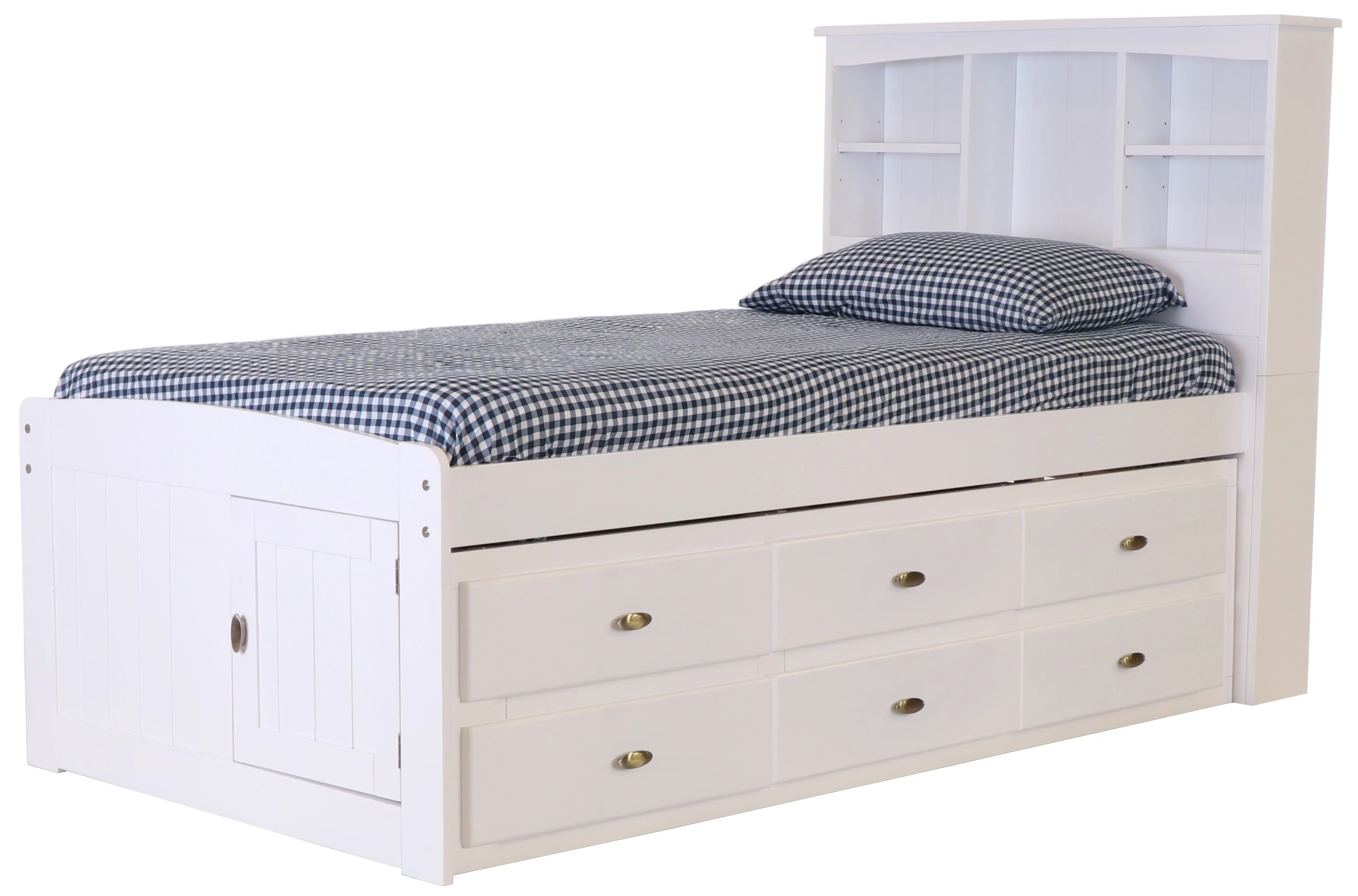 OS Home and Office Model 80220K6-22 Solid Pine Twin Captains Bookcase Bed with 6 spacious under bed drawers in Casual White