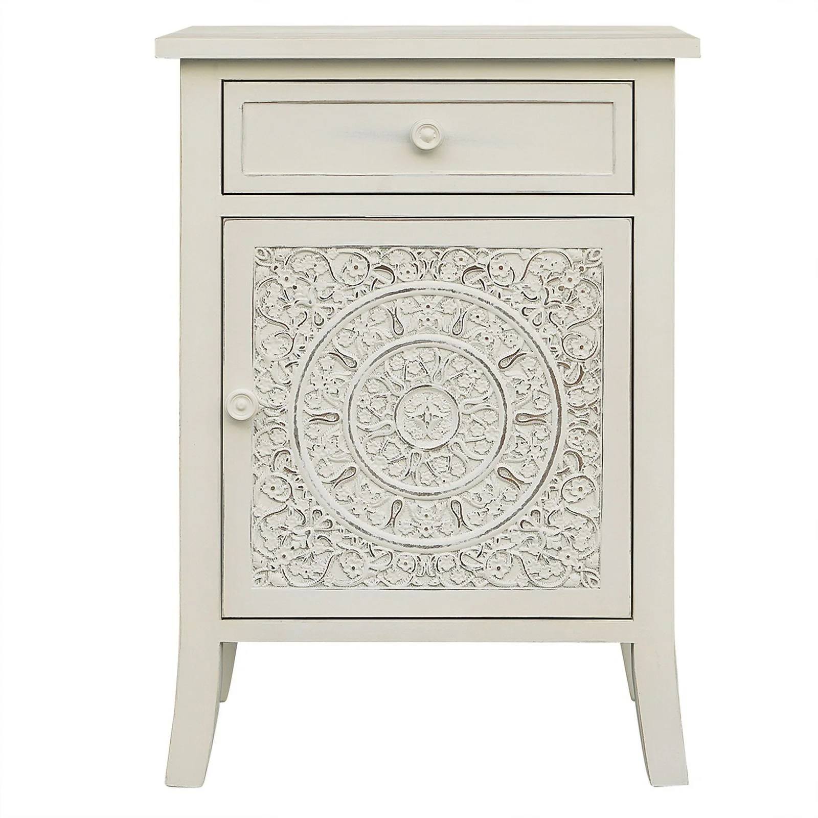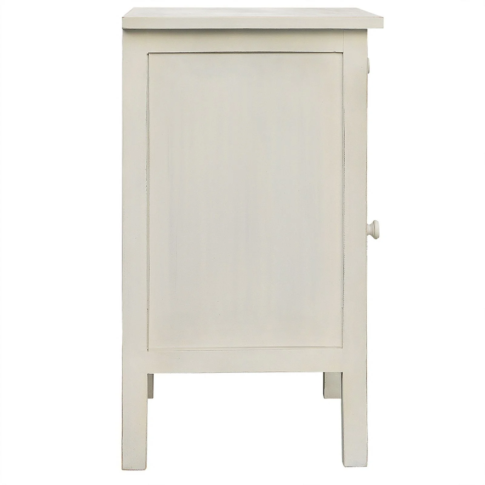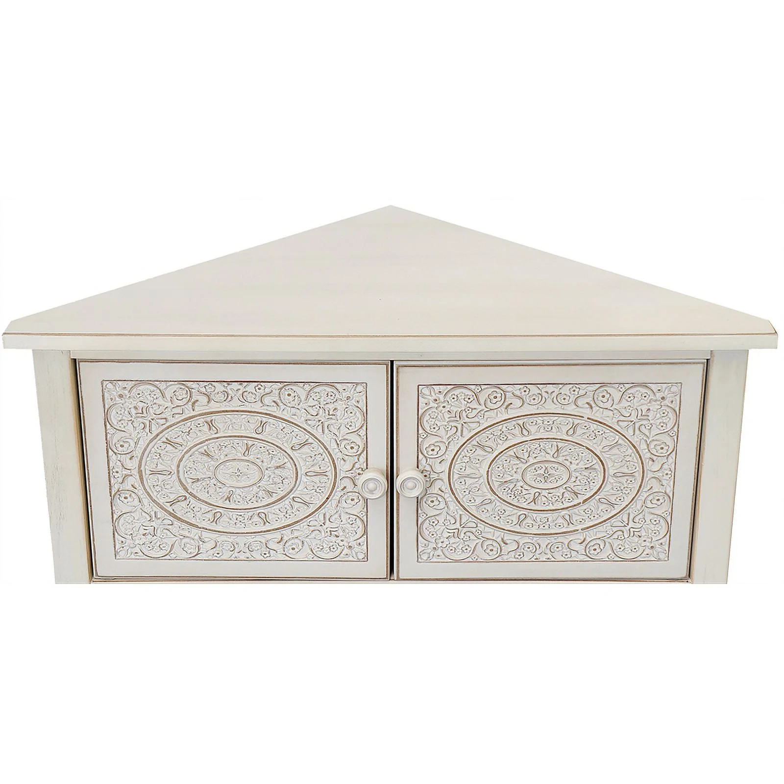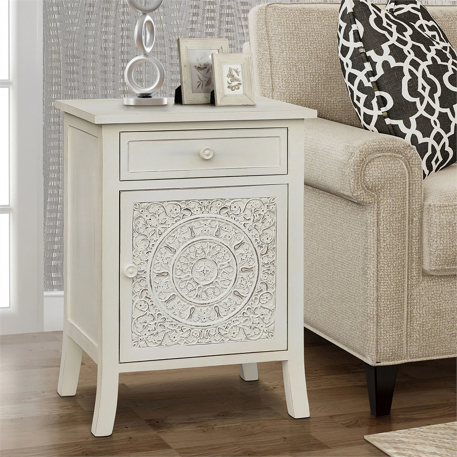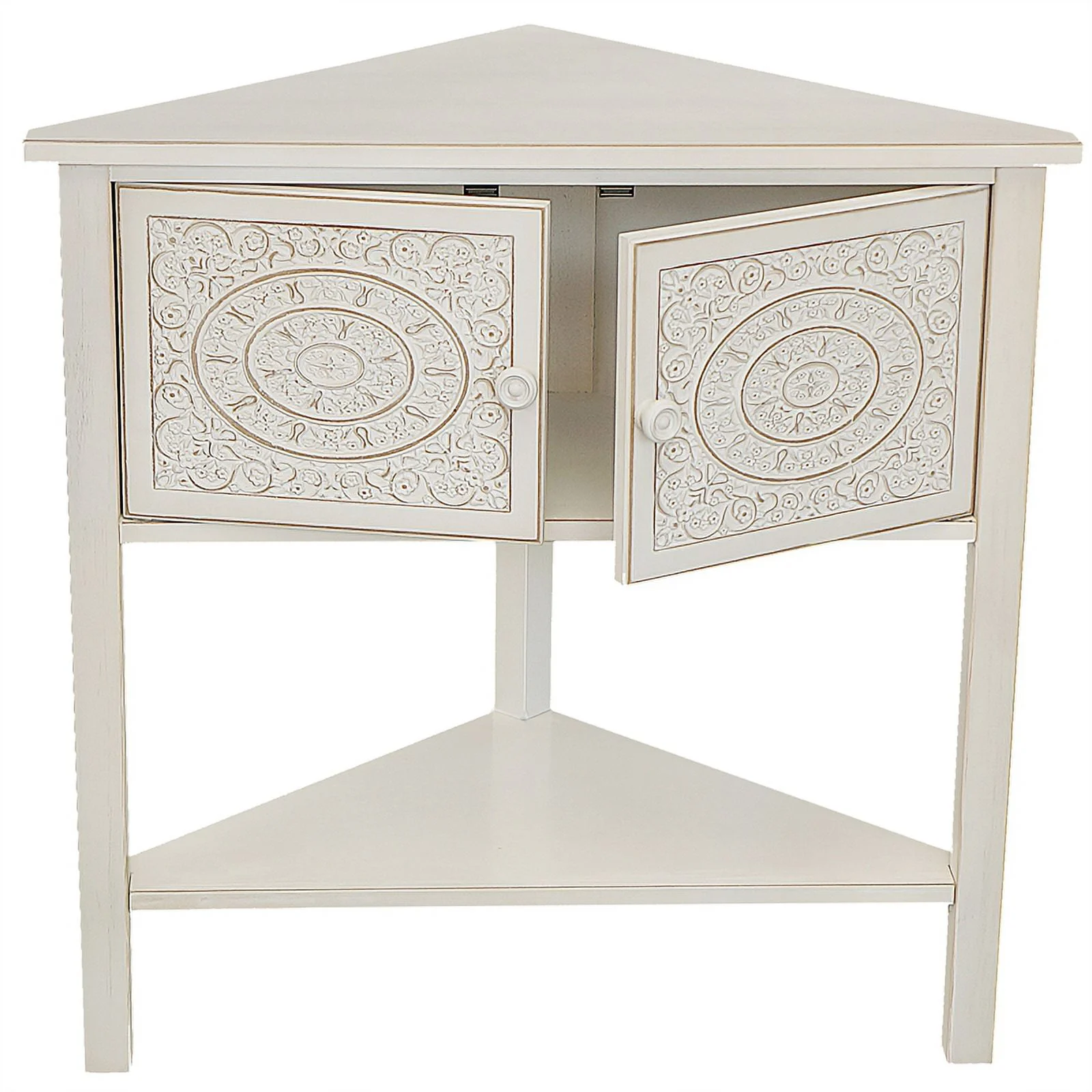 Gallerie Decor Antiqued Carved Transitional Wood Corner Table in White