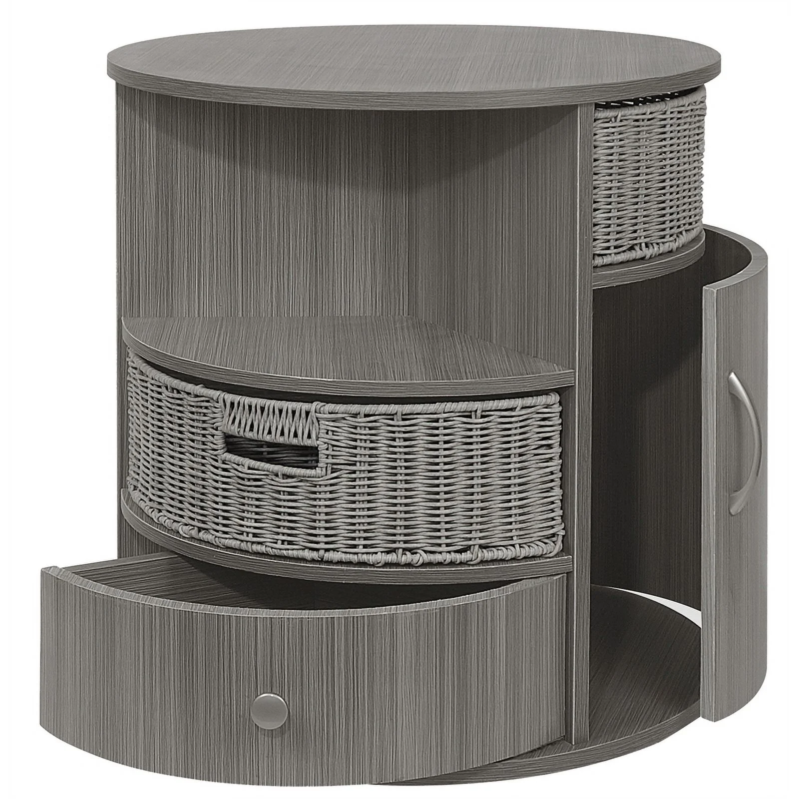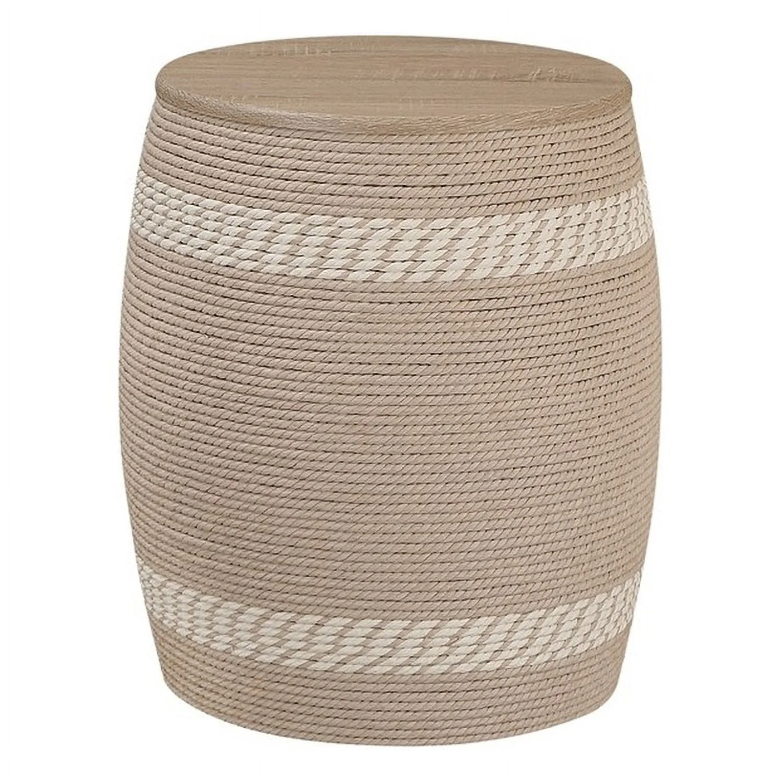 Gallerie Decor Dimensions Transitional Rattan Drum Side Table in Natural