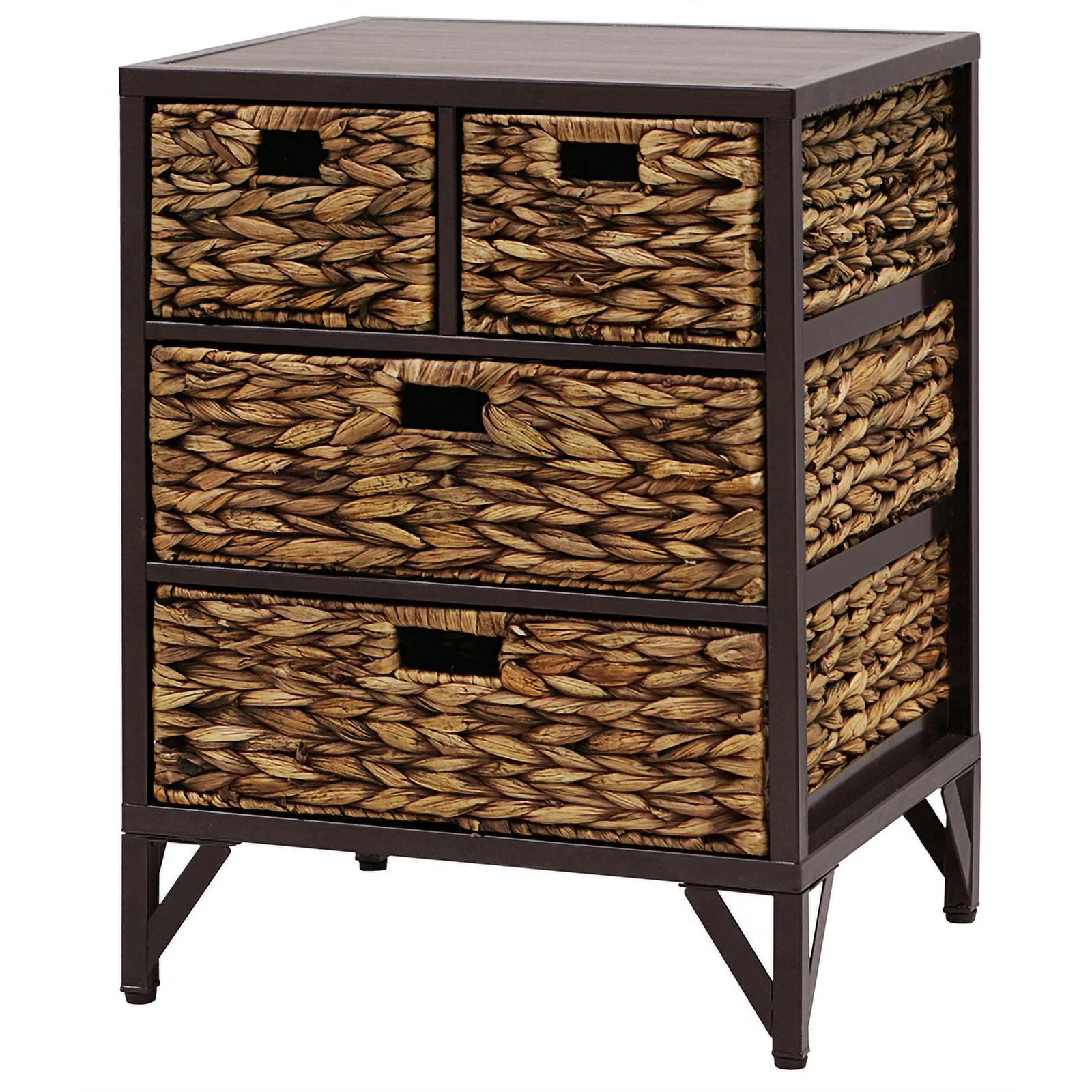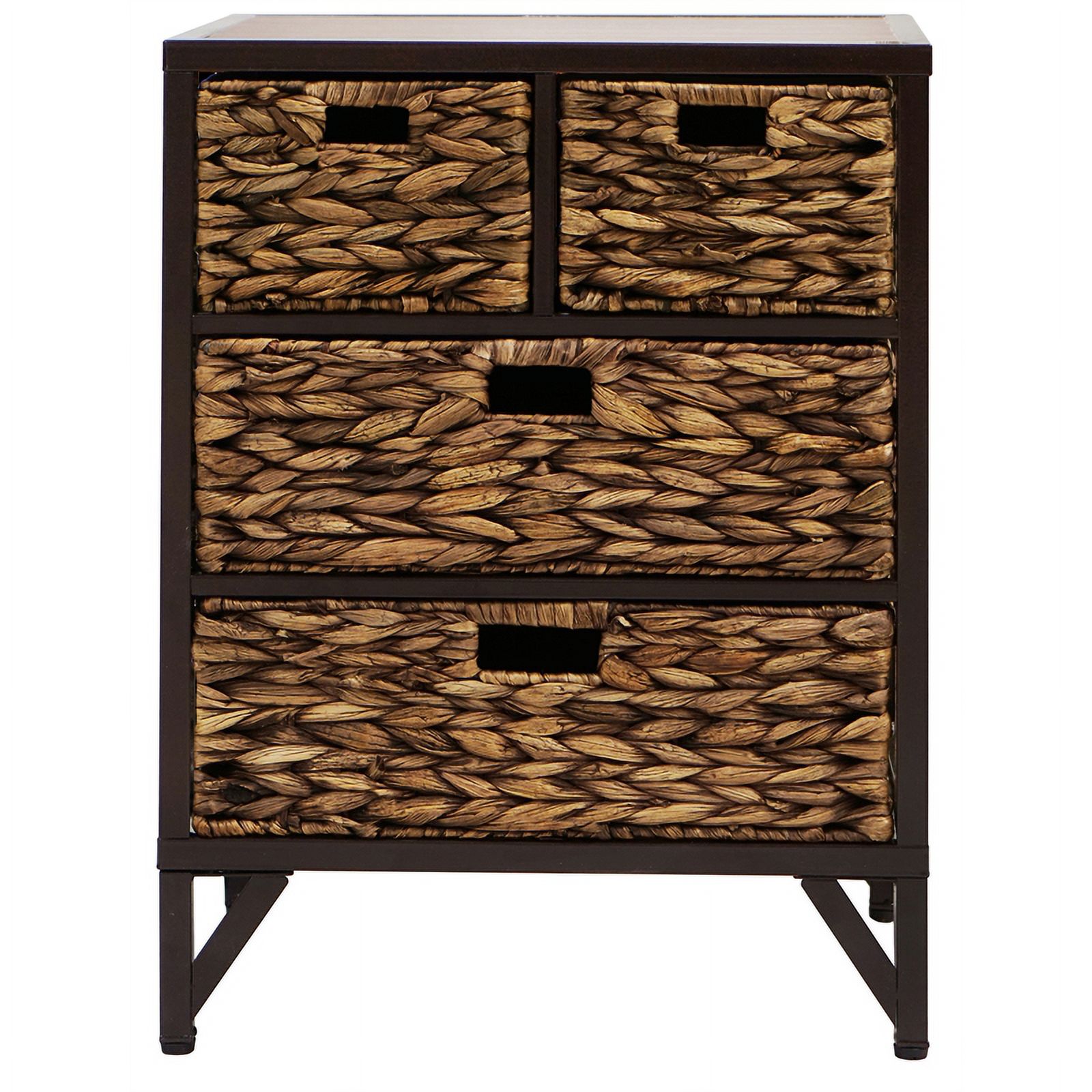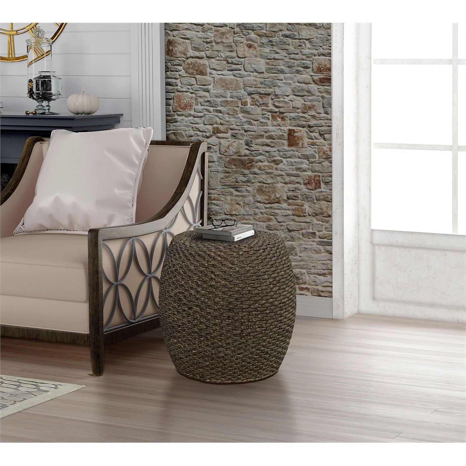 Gallerie Decor Fiji Transitional Hyacinth Wood Drum Side Table in Walnut