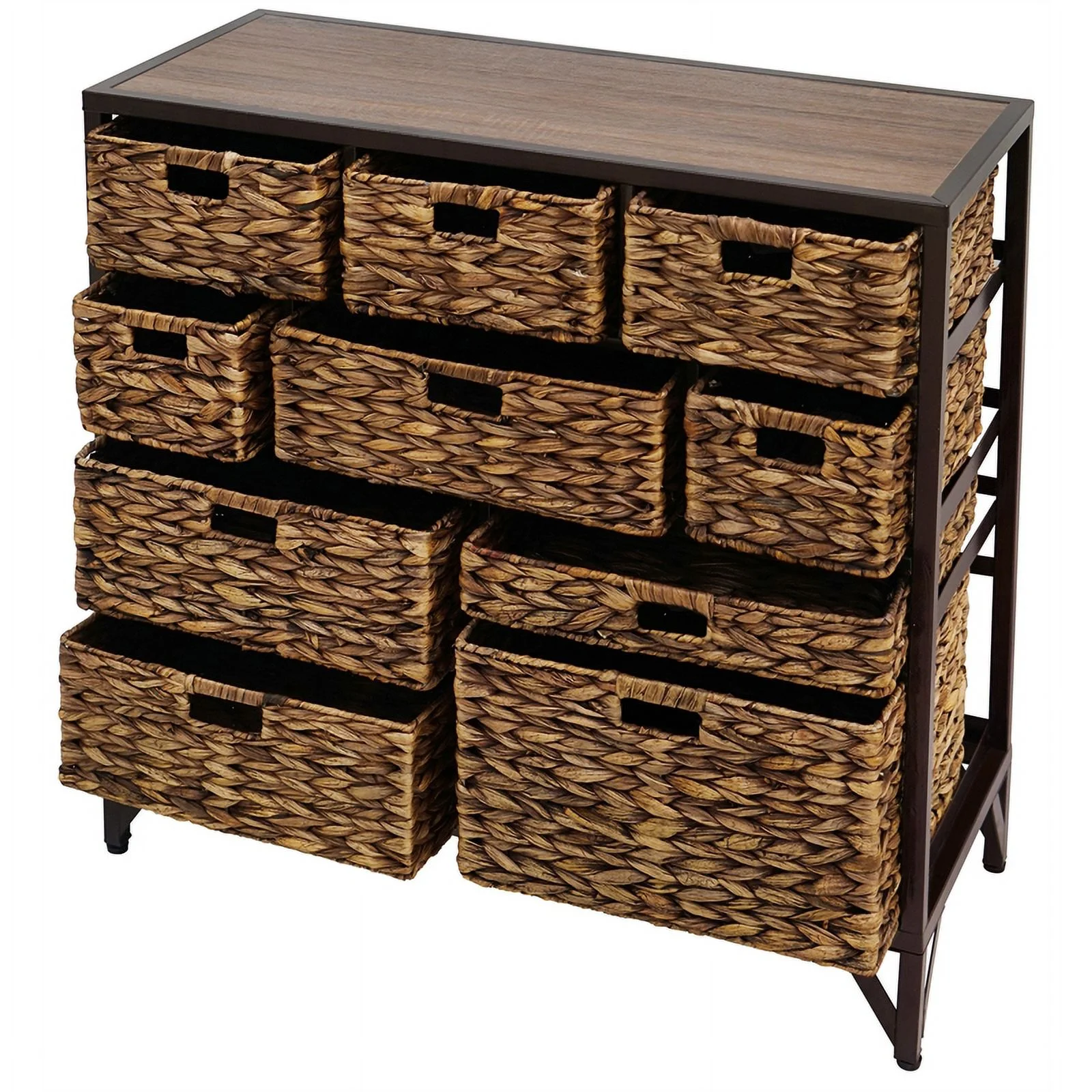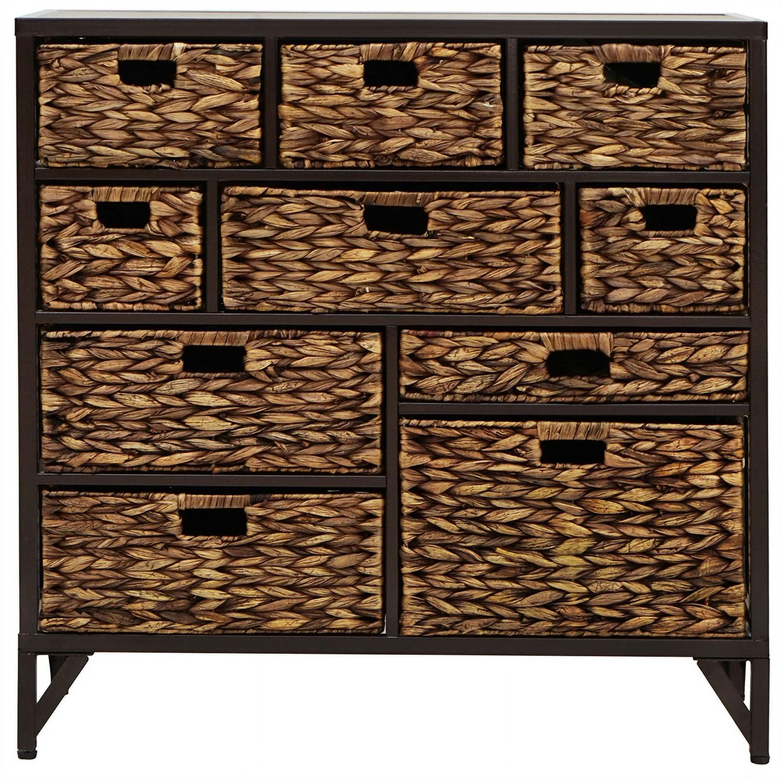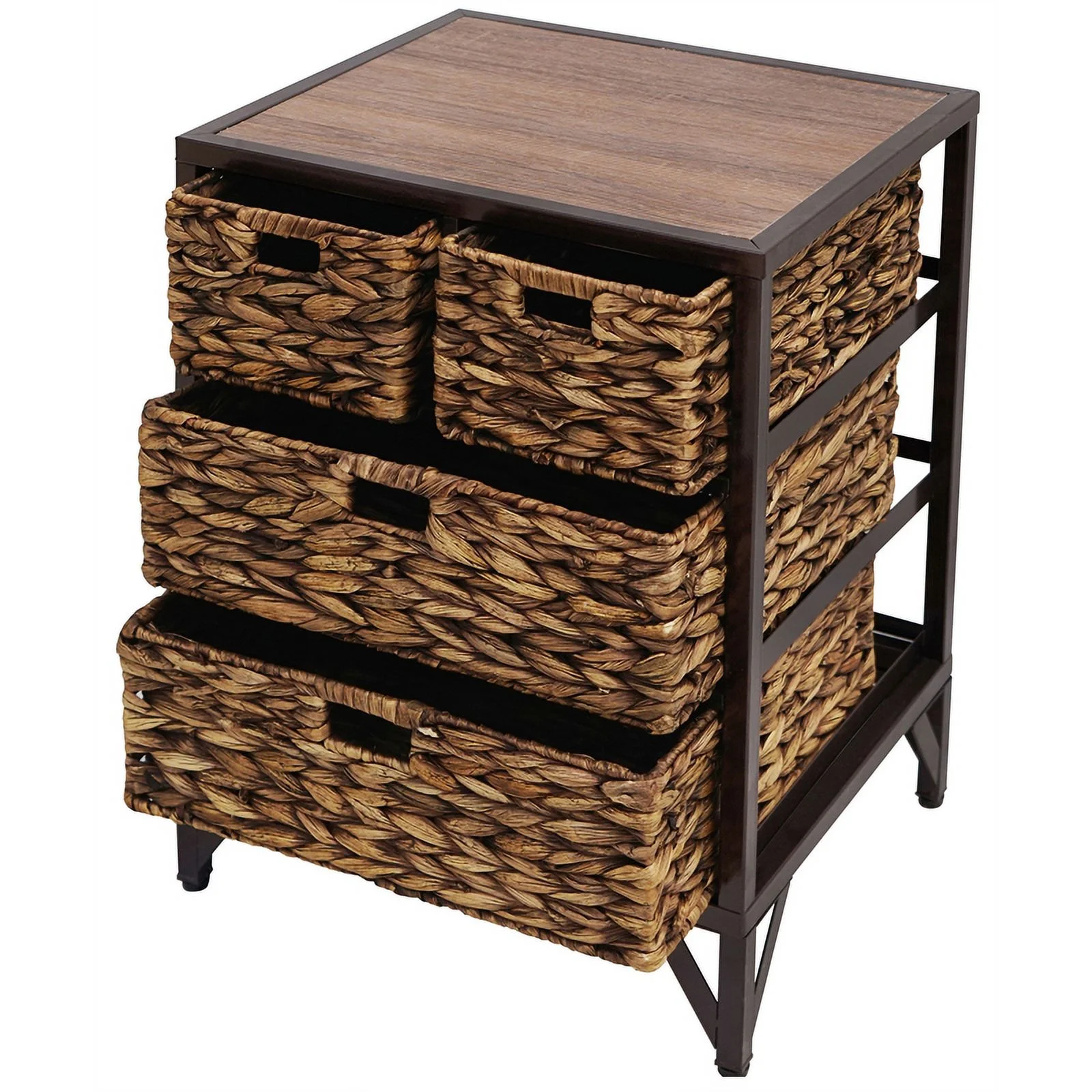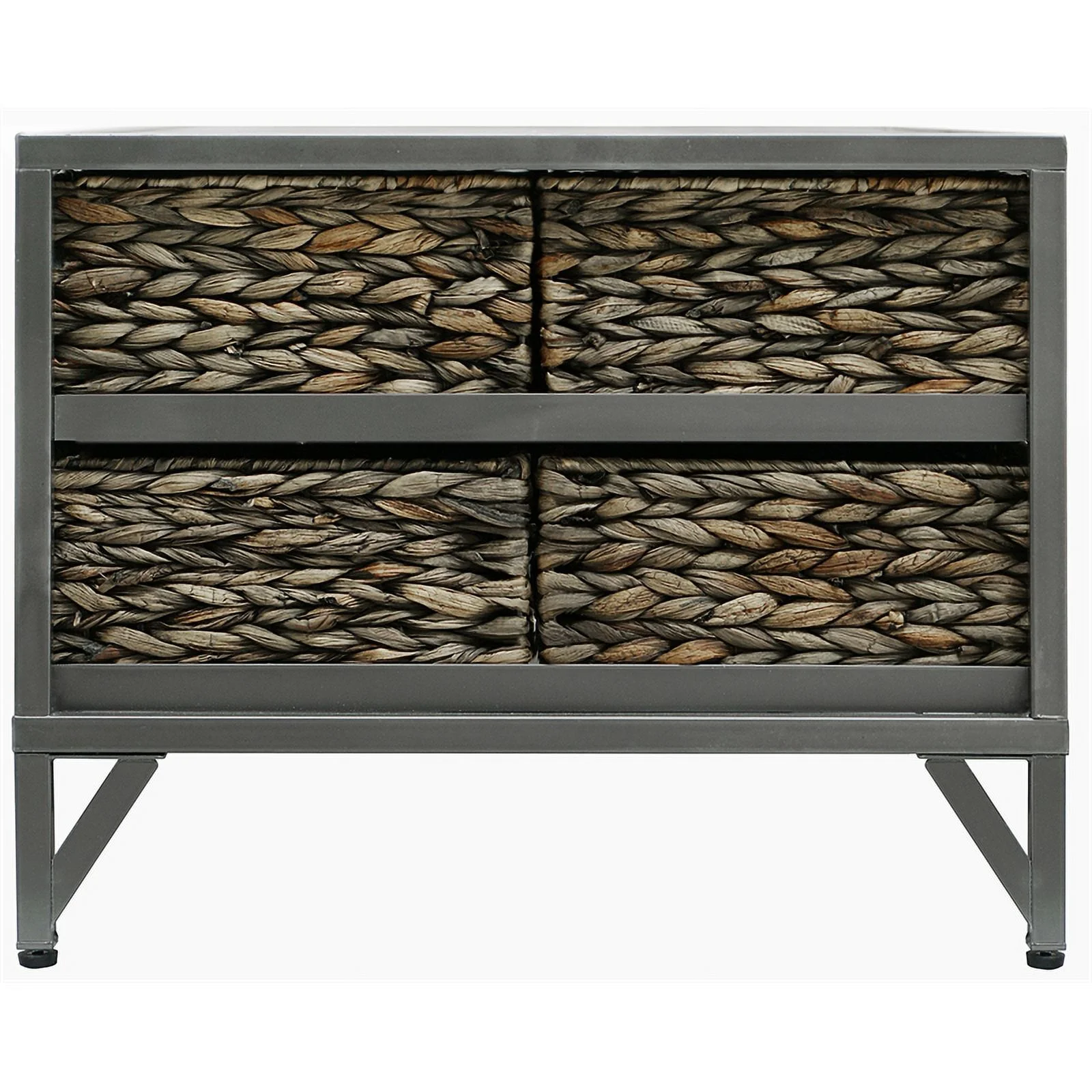 Gallerie Decor Fiji Transitional Hyacinth Wood Drum Side Table in Walnut