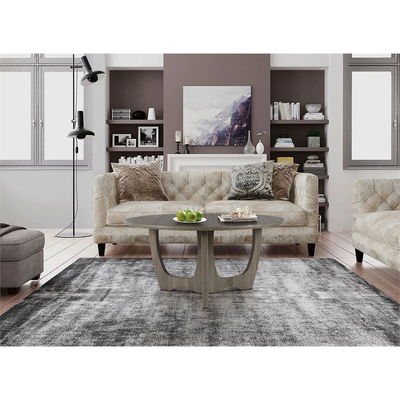 Gallerie Decor Edgewood Contemporary Wood Coffee Table with Carved Leg in Gray