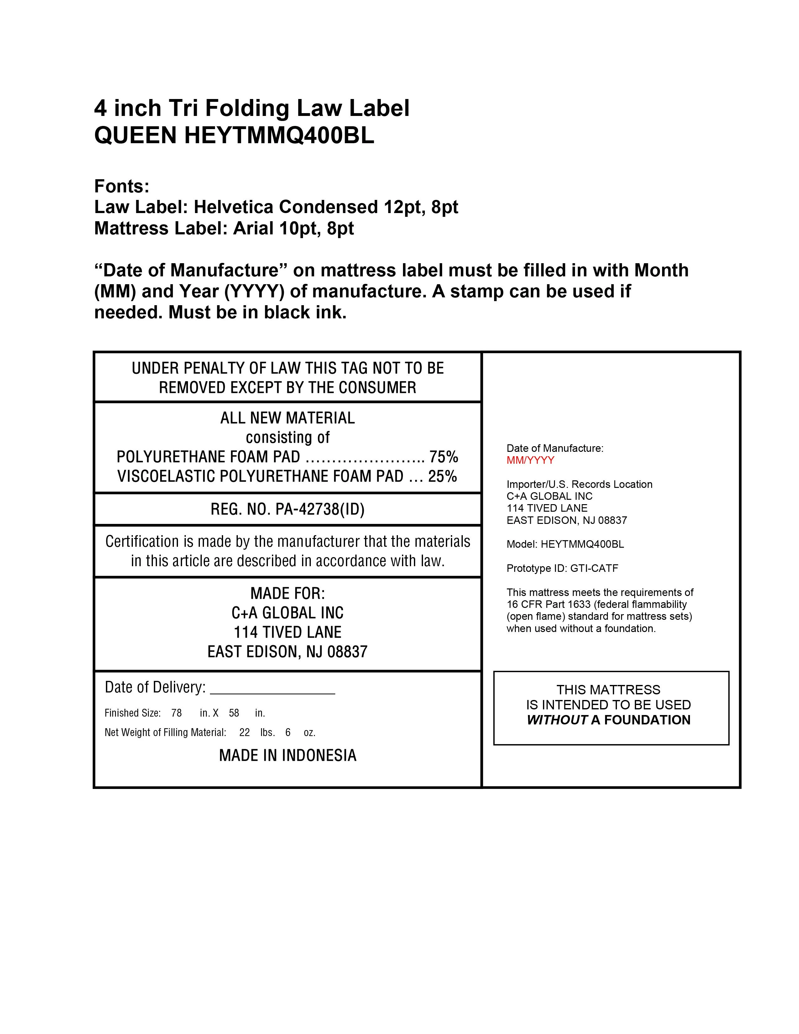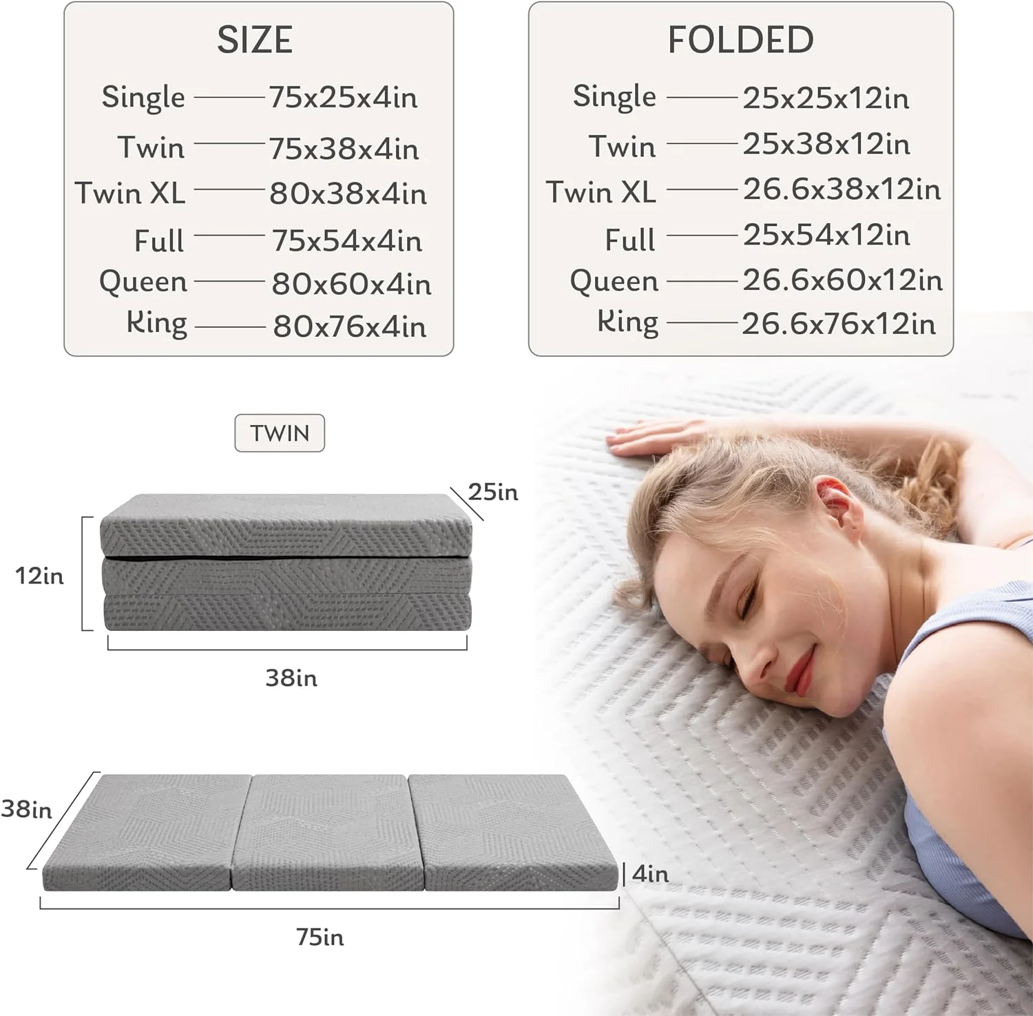 Heyward 4” Trifold Mattress Queen Size, Machine Washable Memory Foam Mattress