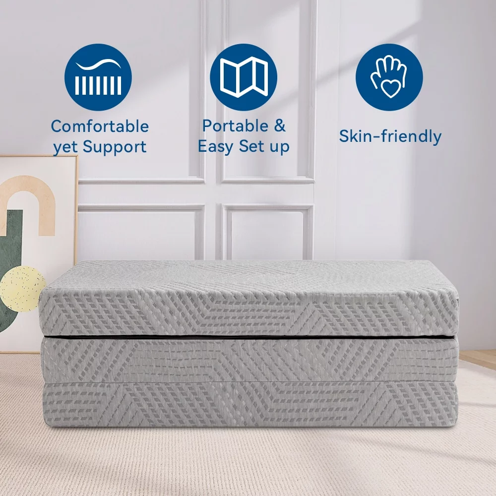 Hcore Folding Mattress, Queen Size Tri-Folding Gel Memory Foam Mattress Topper with Storage Bag
