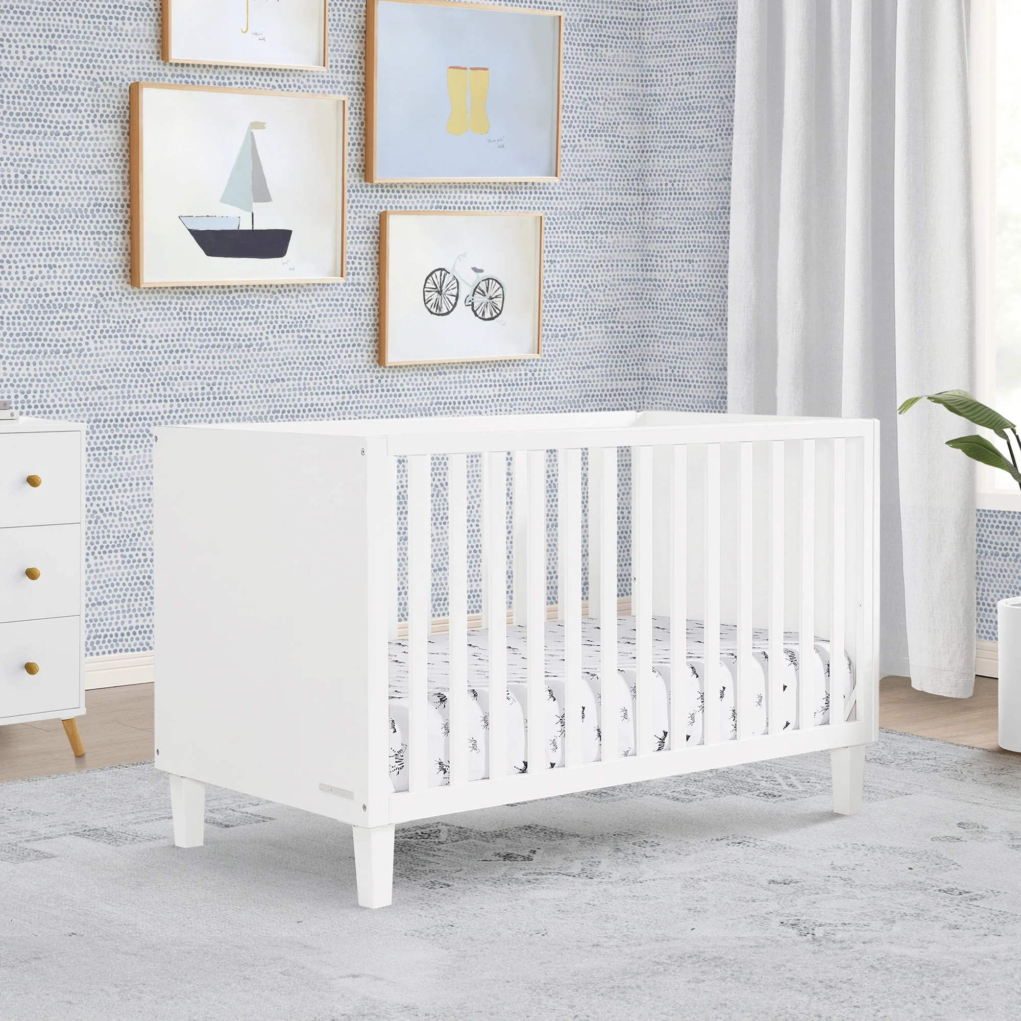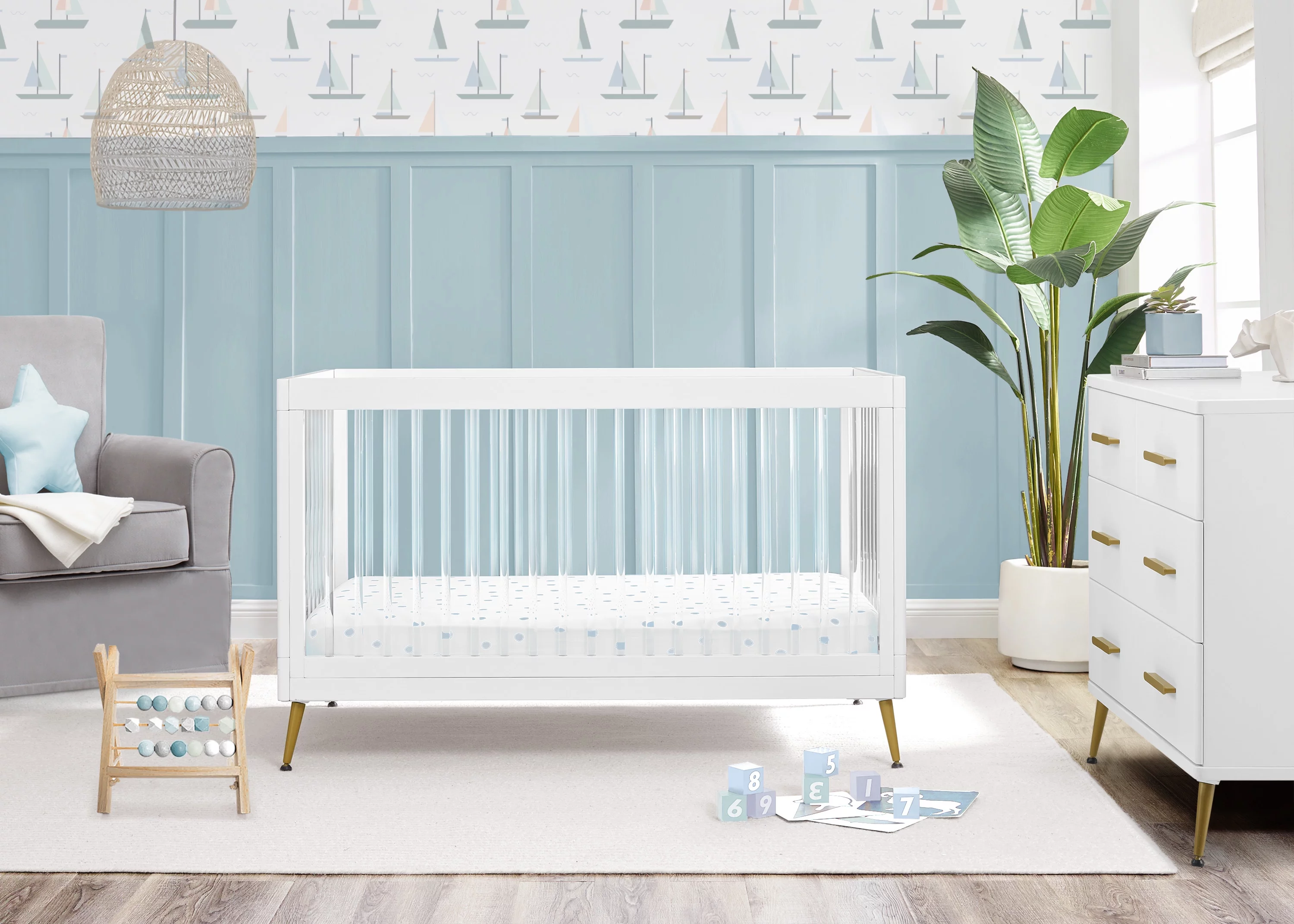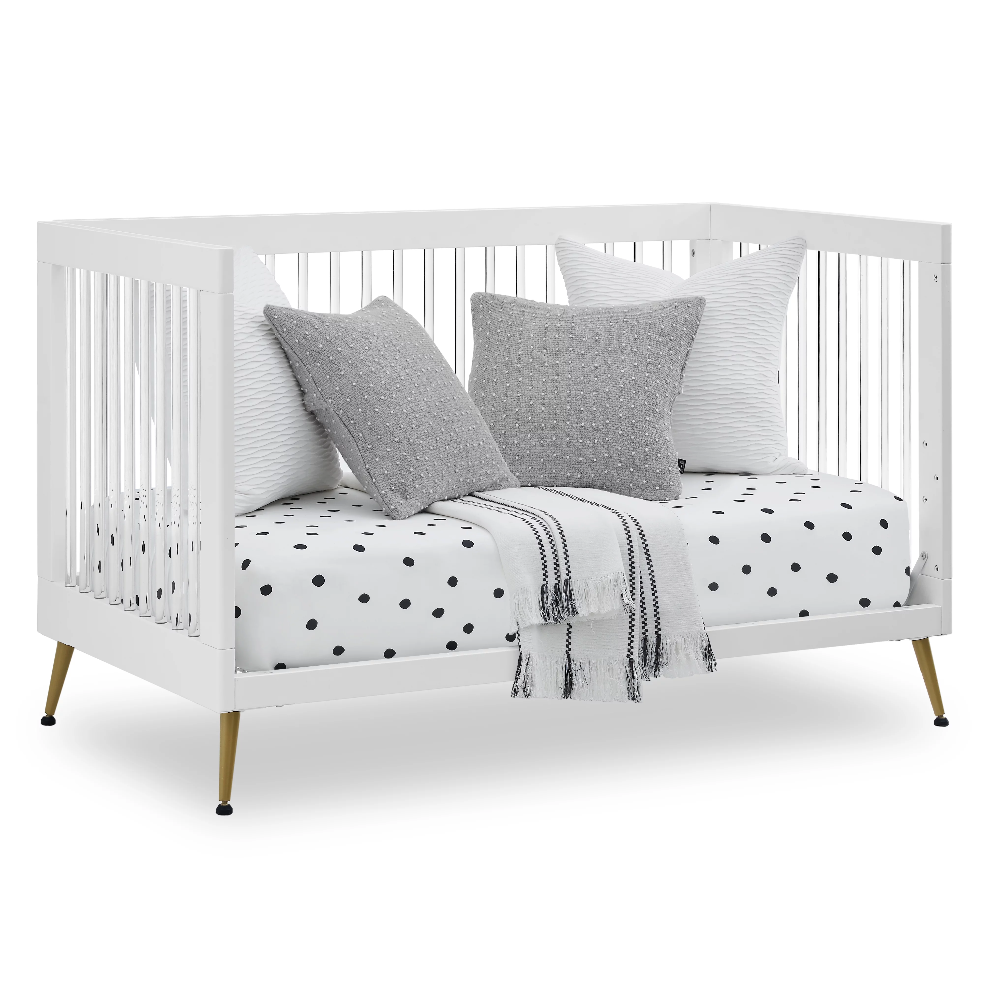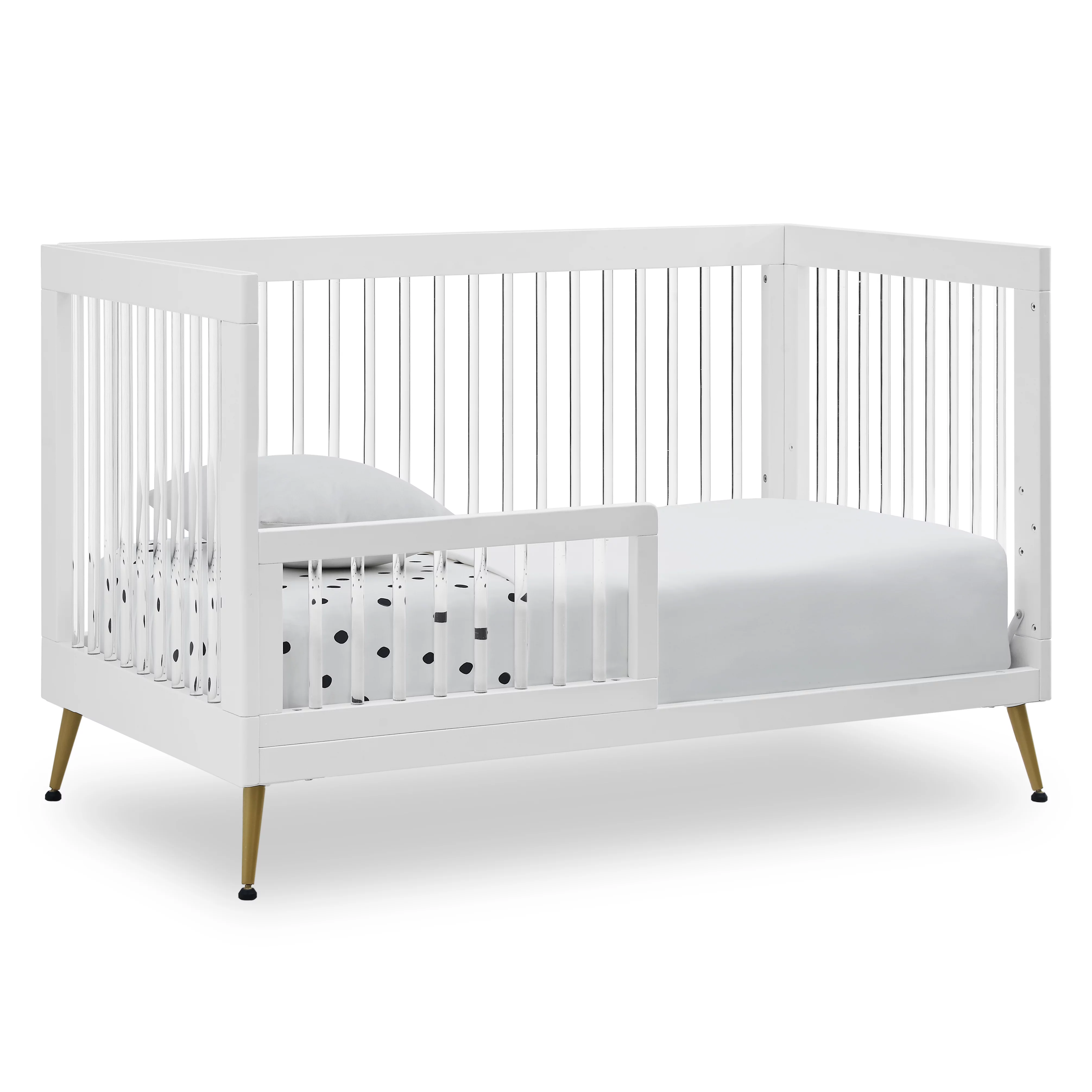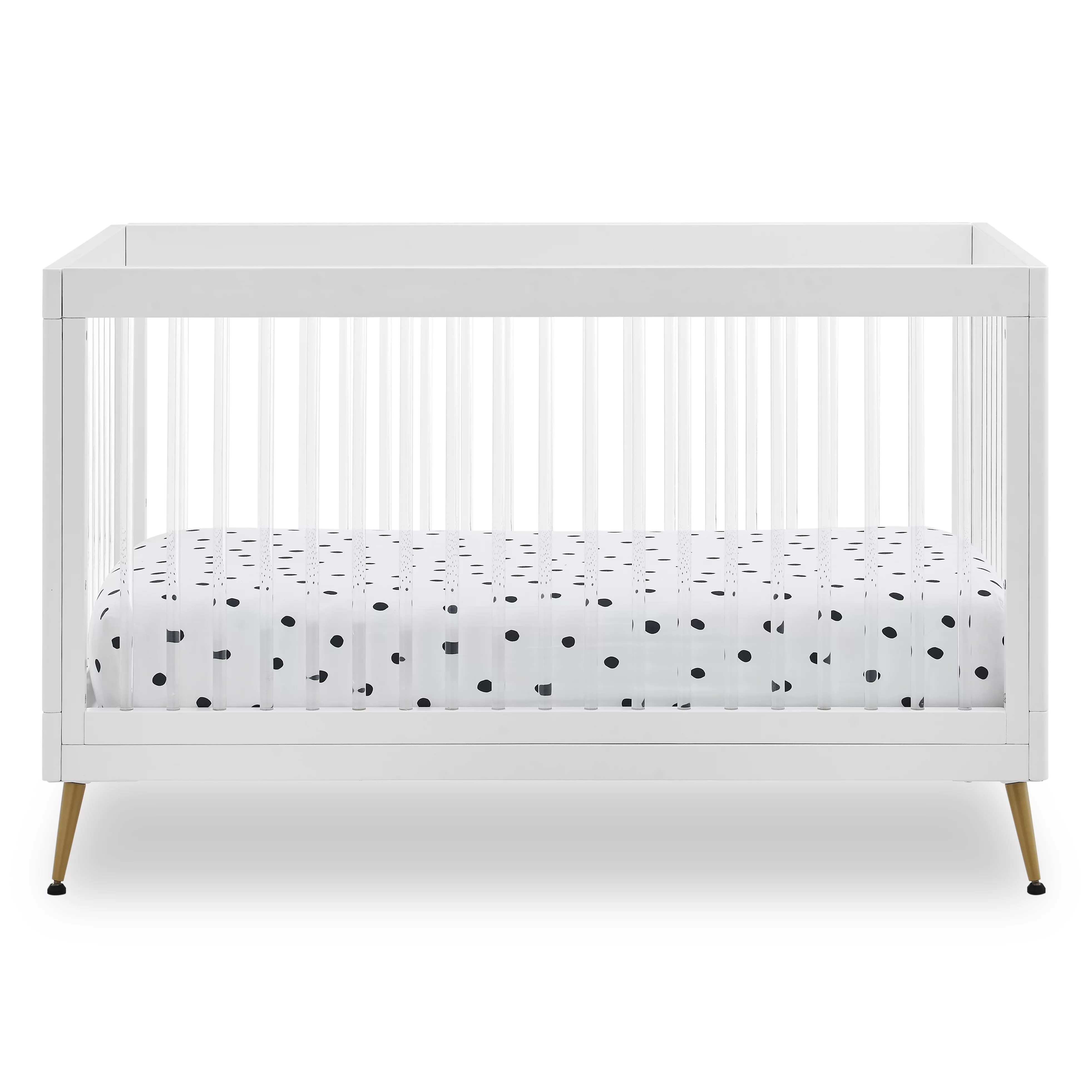 Delta Children Sloane 4-in-1 Acrylic Convertible Crib - Includes Conversion Rails, Bianca White withMelted Bronze