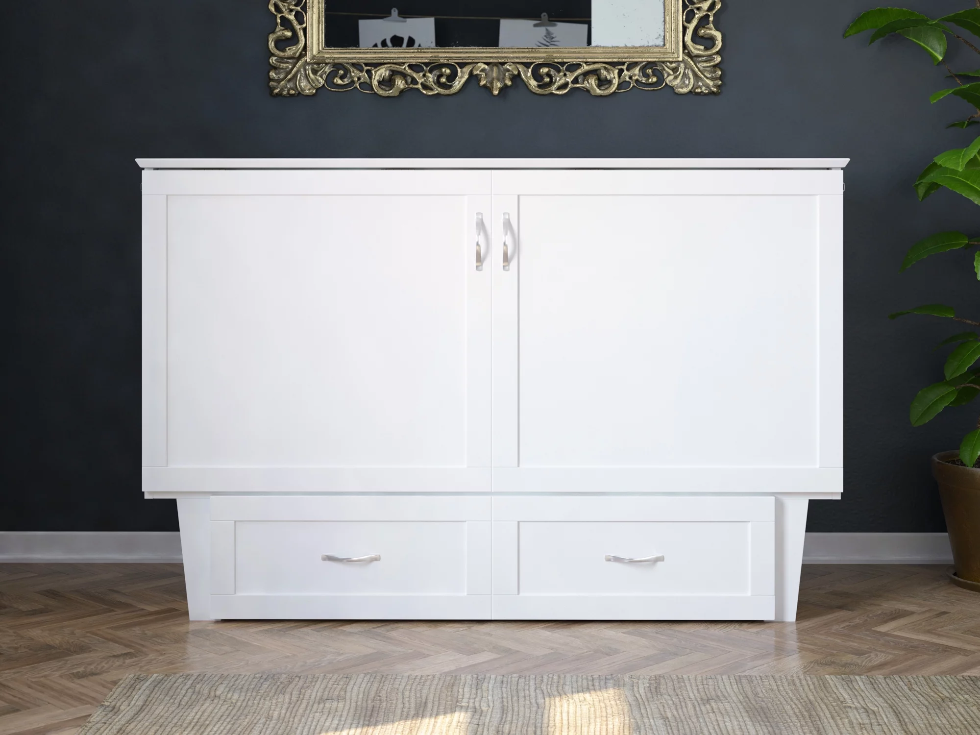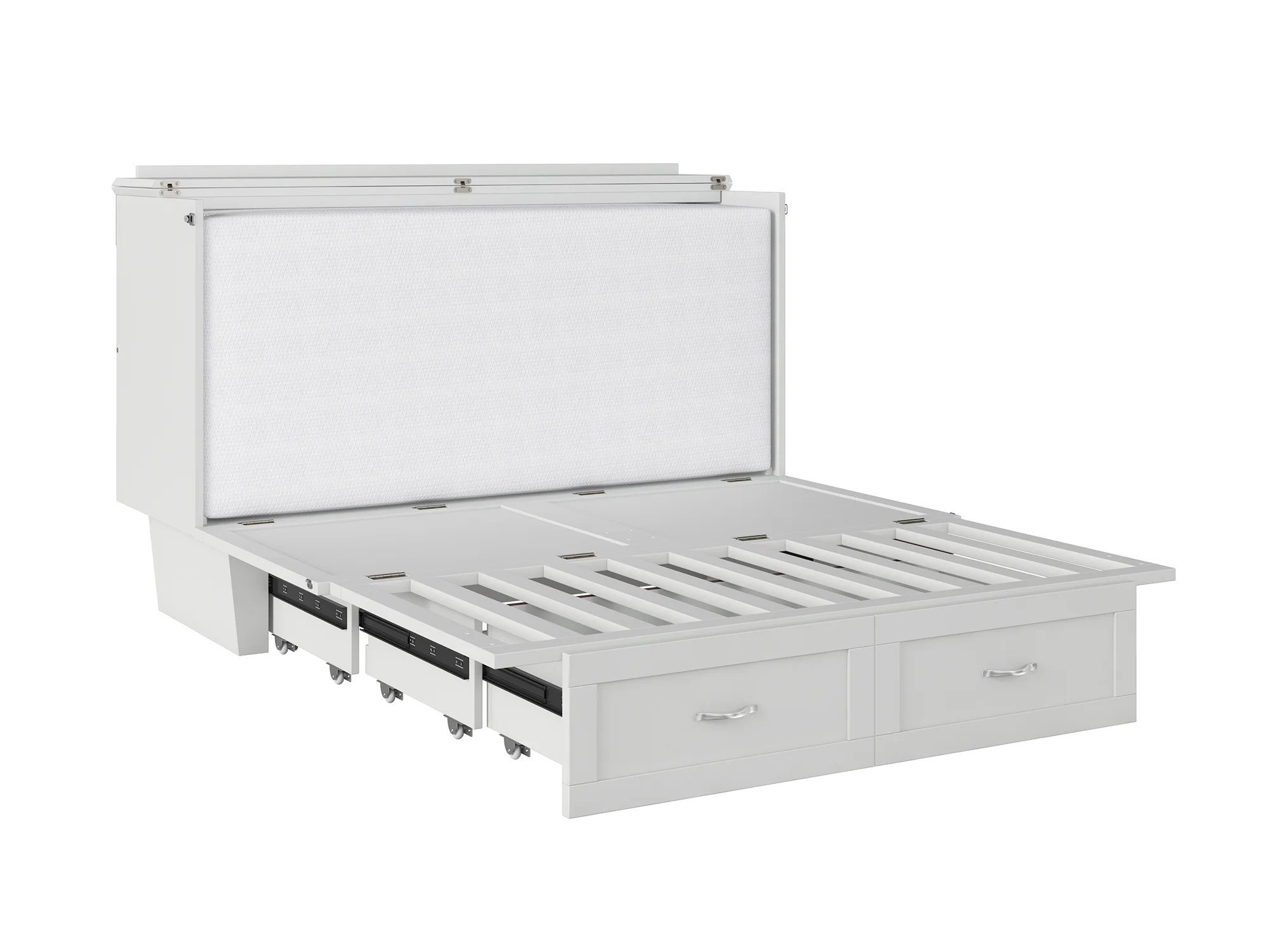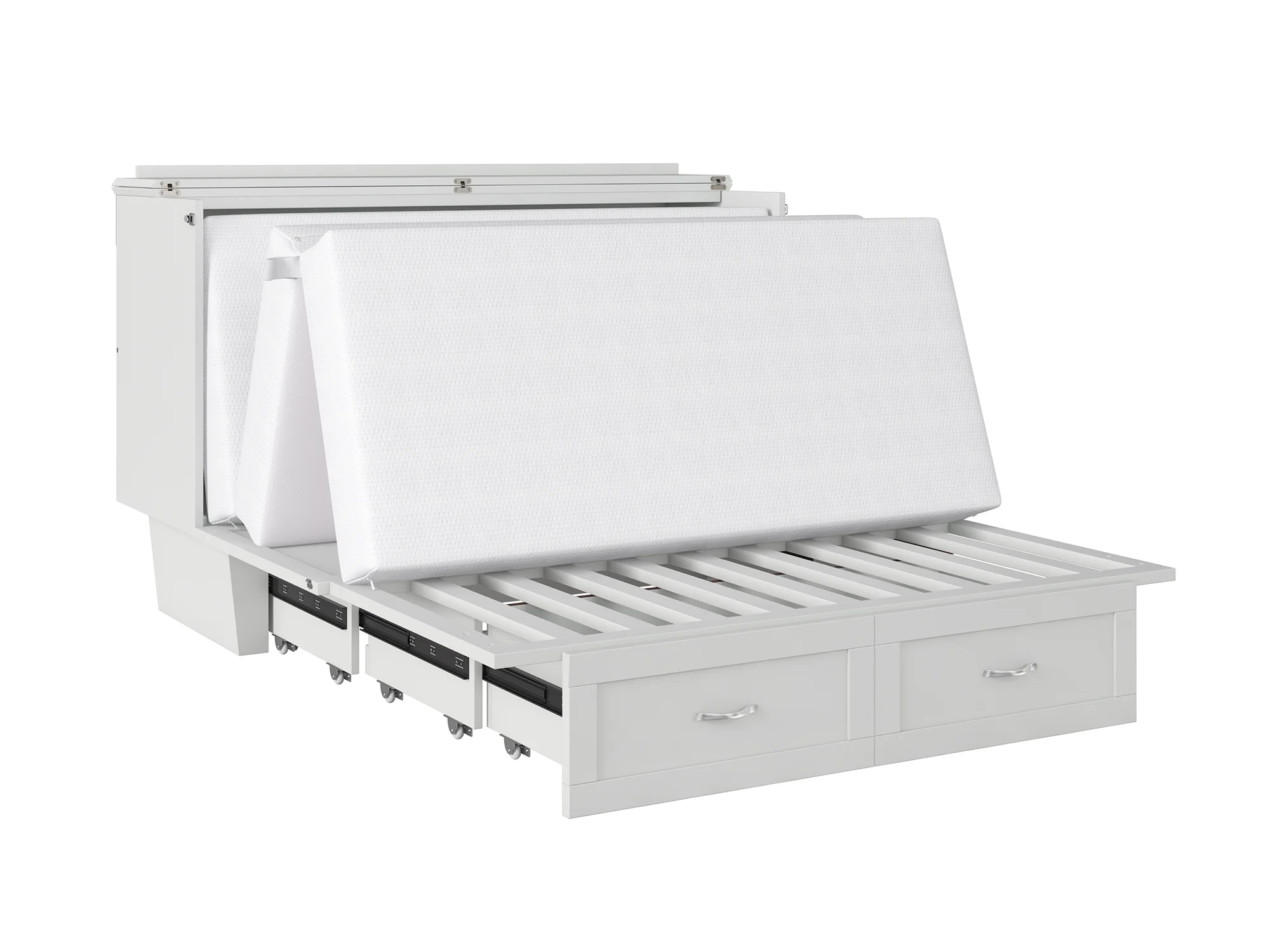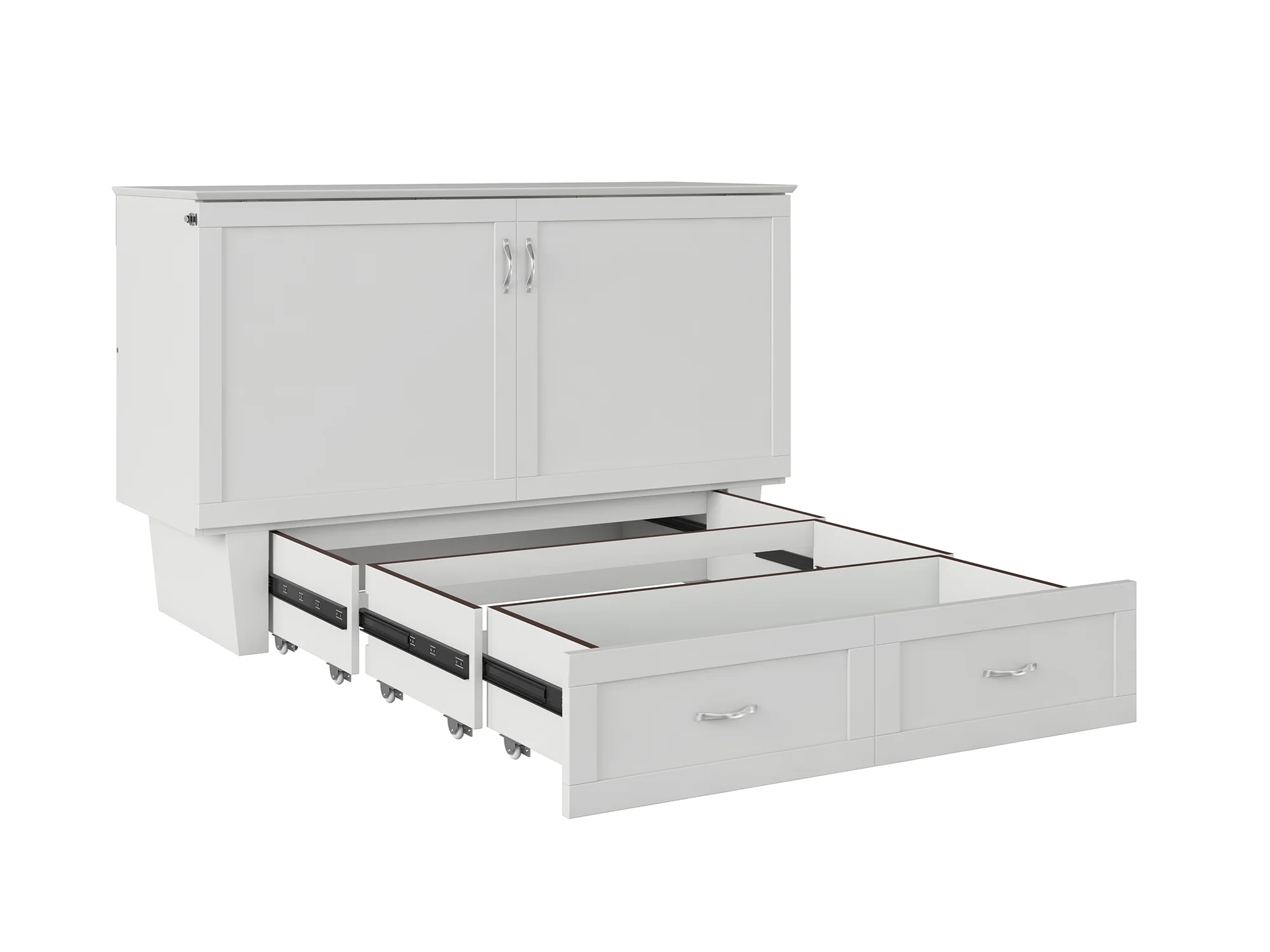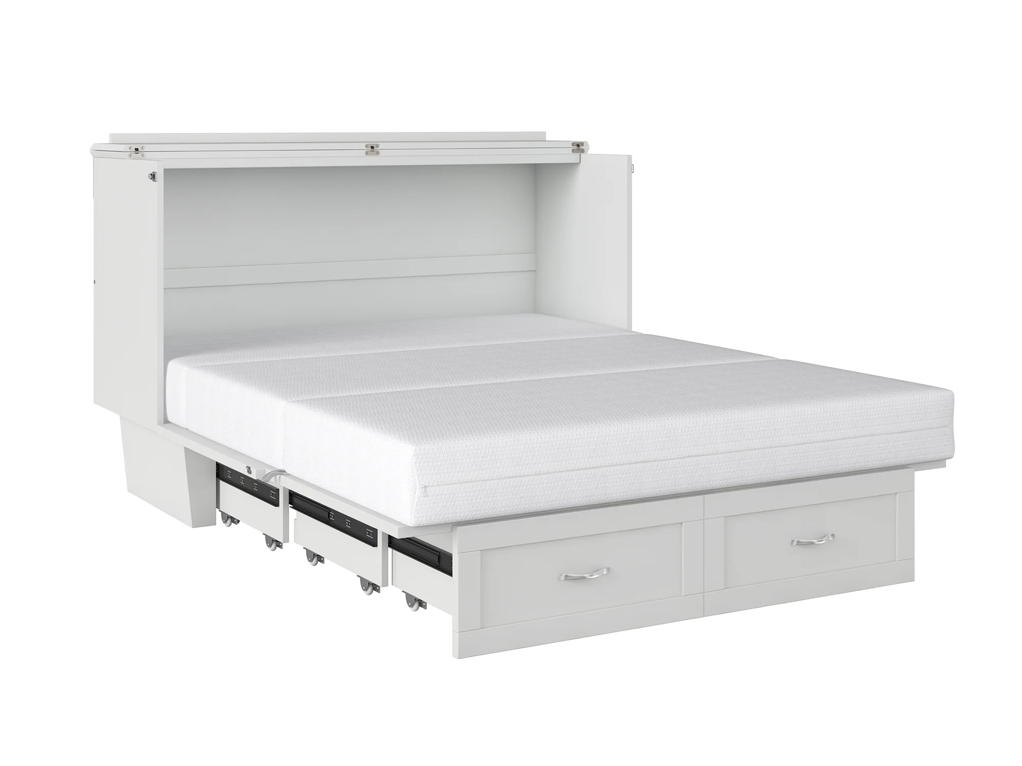 AFI Monroe Queen Solid Wood Murphy Bed Chest with Mattress, Drawer and Charger in White