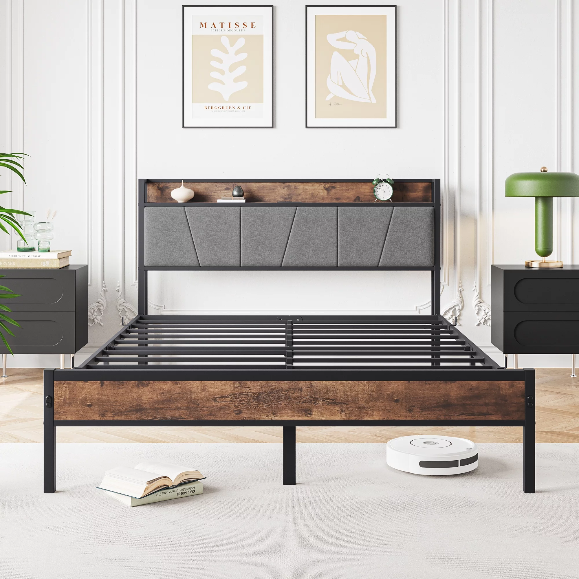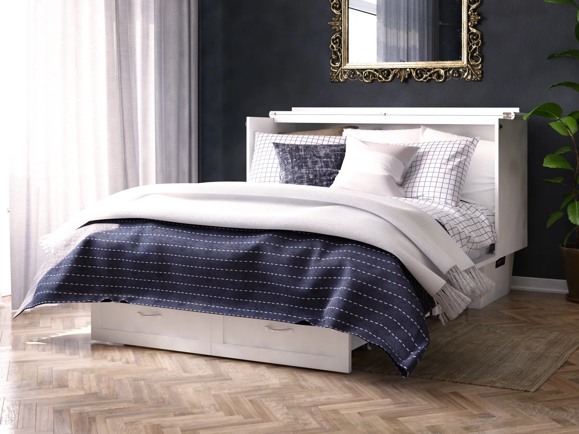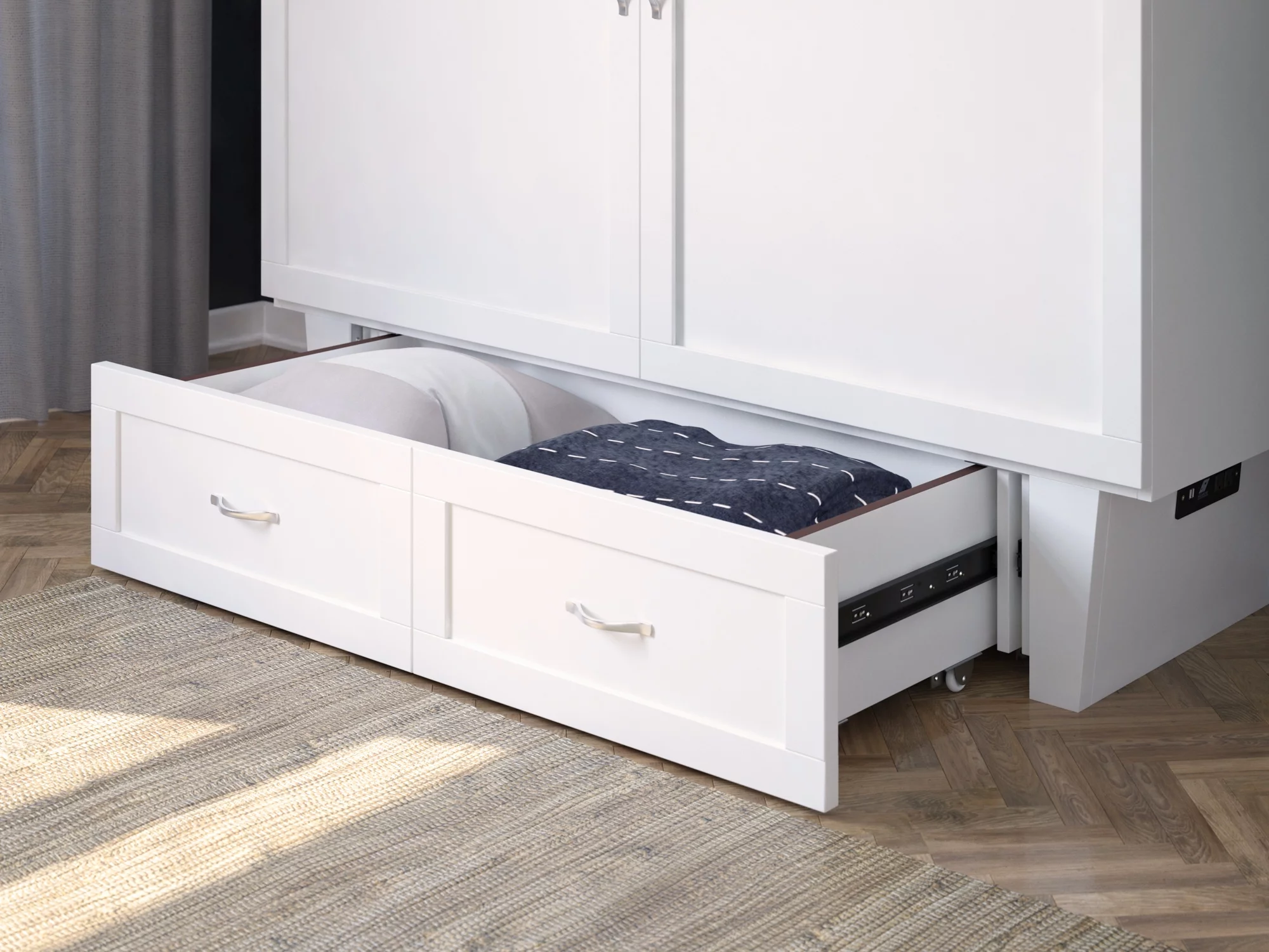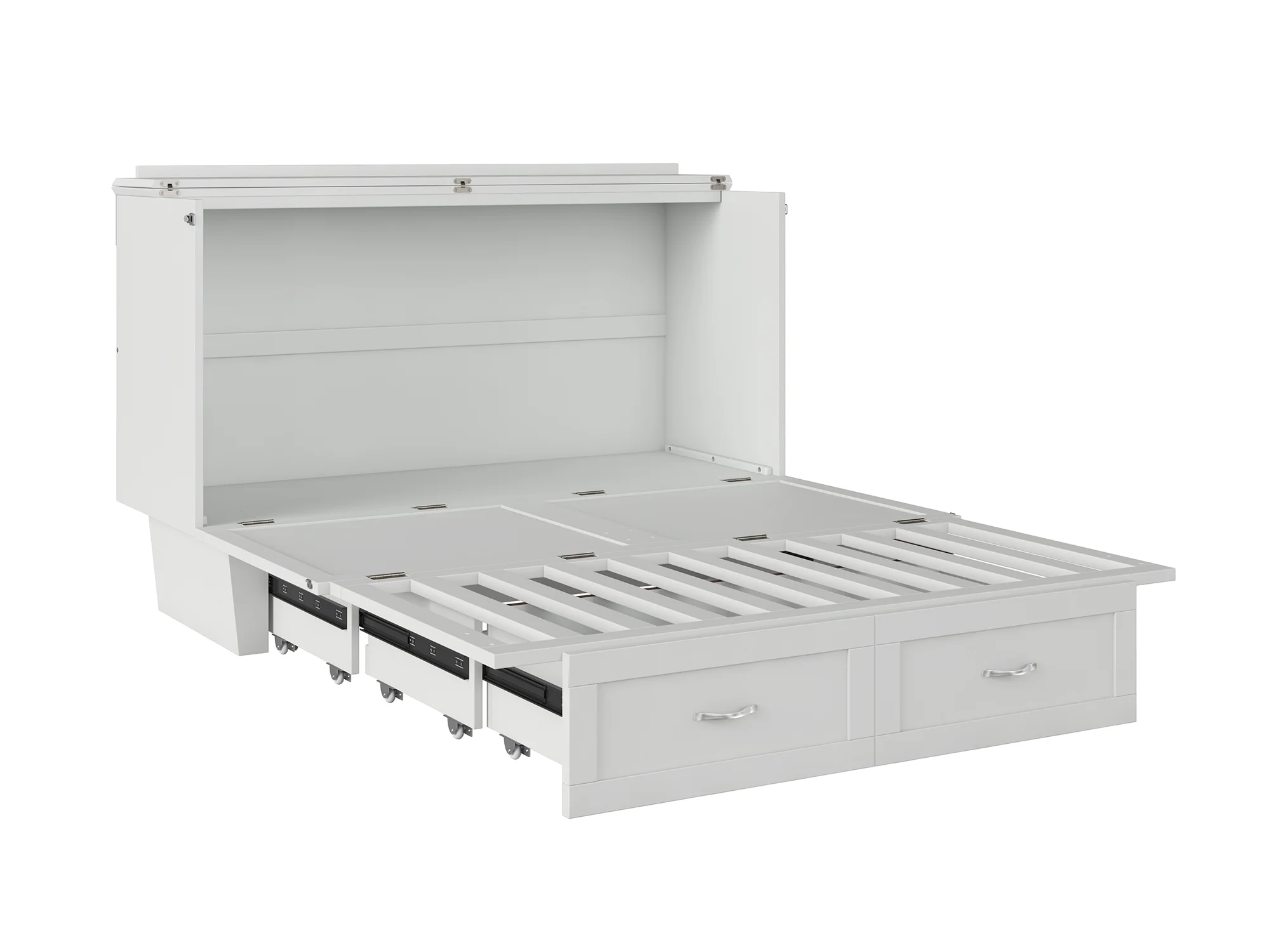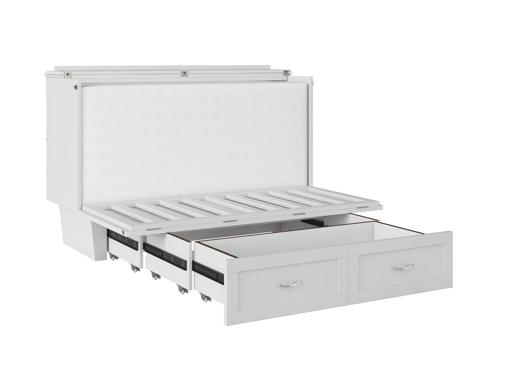 AFI Monroe Queen Solid Wood Murphy Bed Chest with Mattress, Drawer and Charger in White