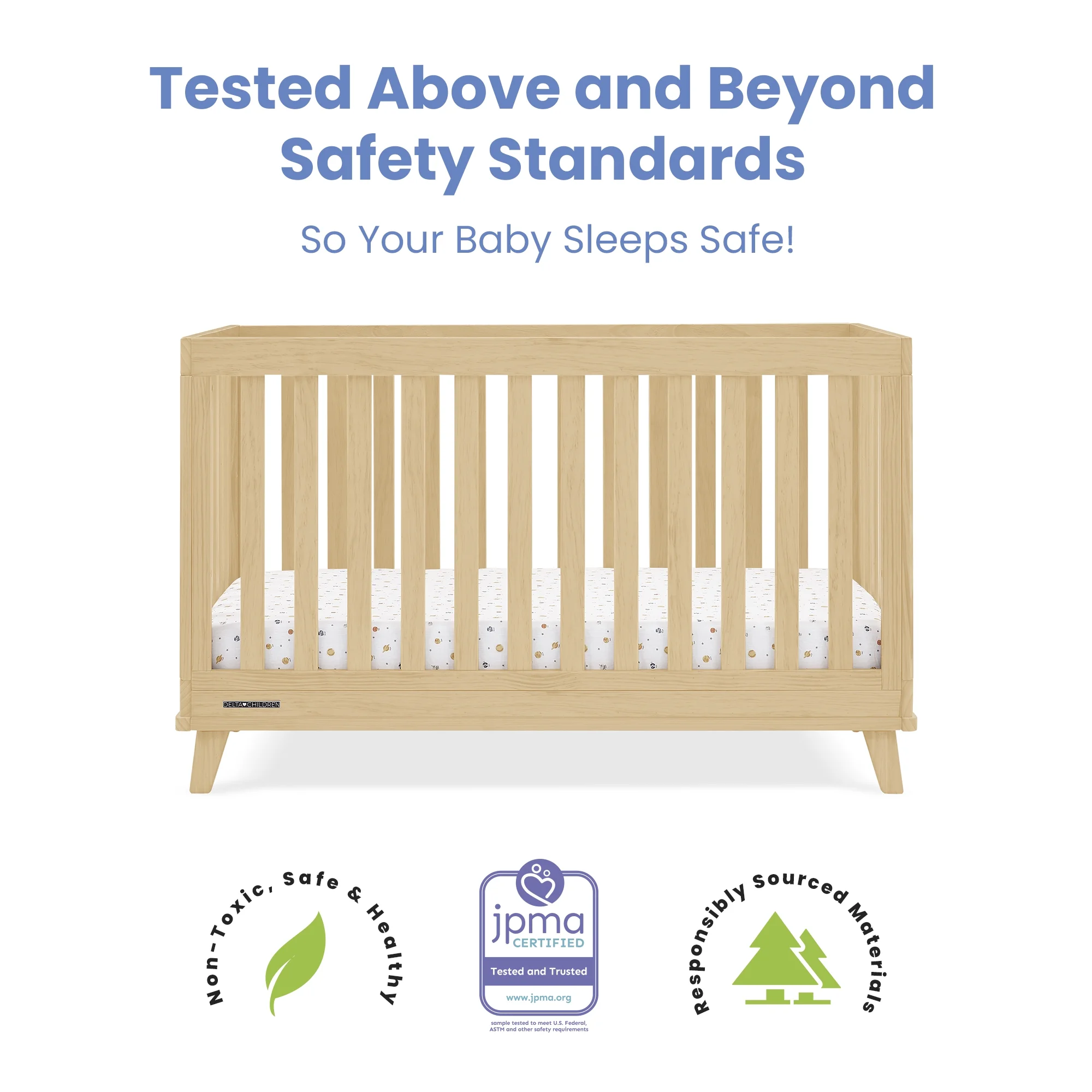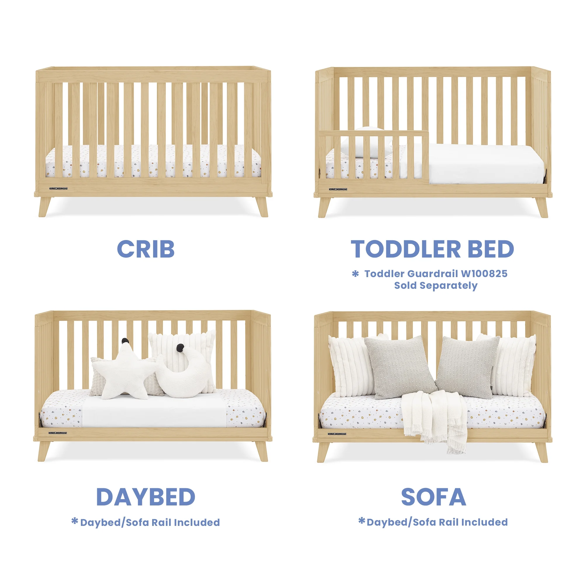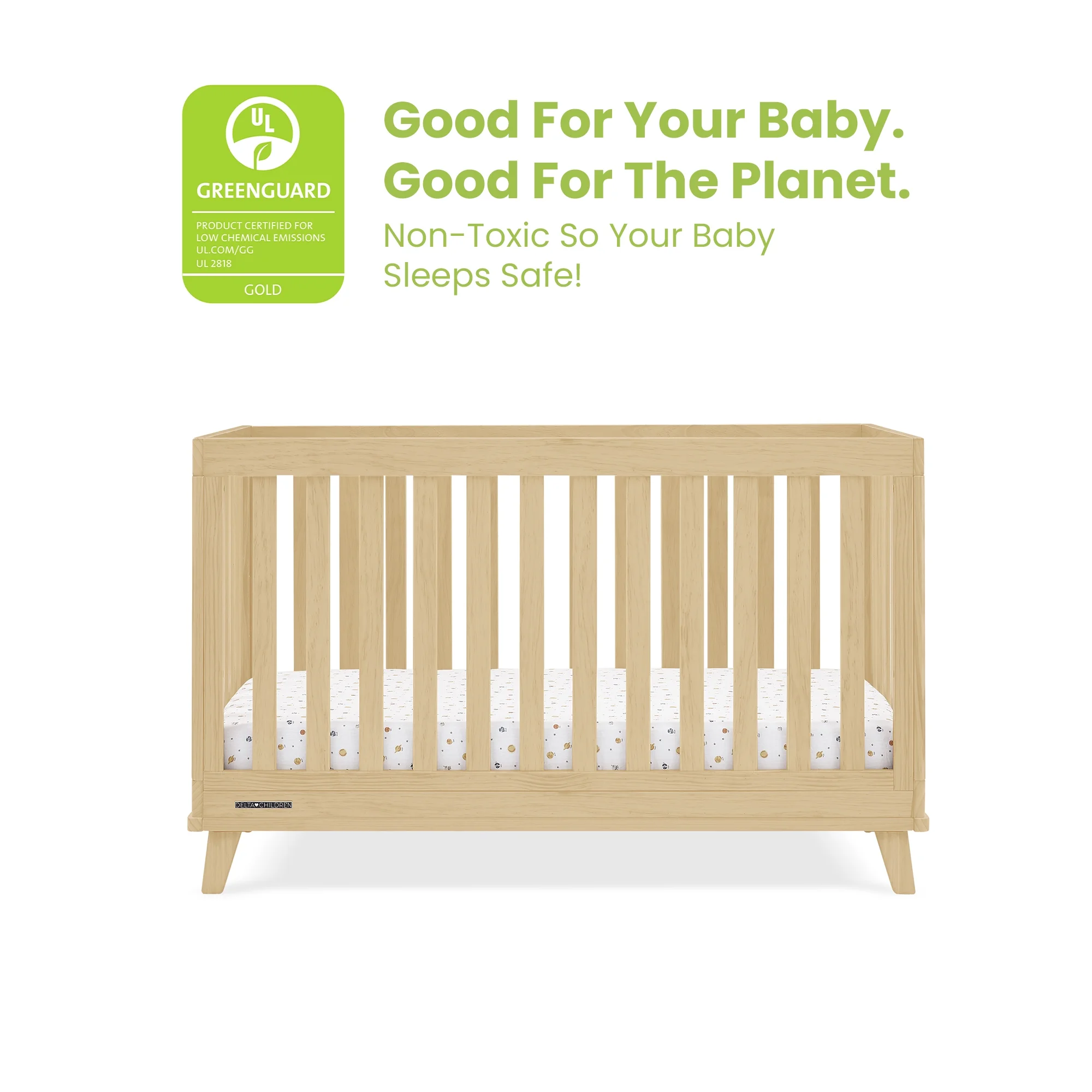 Delta Children Frankie 4-in-1 Convertible Crib - Greenguard Gold Certified, Natural Pine