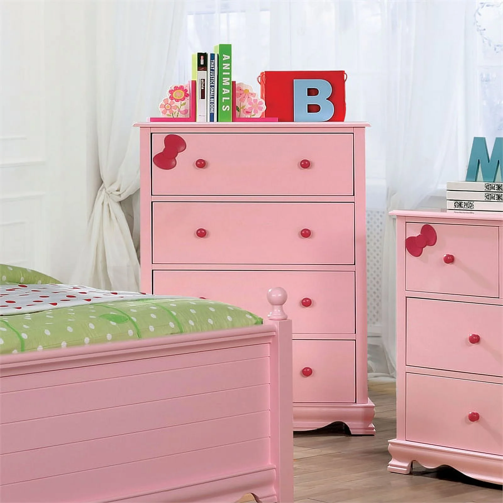 Furniture of America Poppy Transitional Solid Wood 4-Drawer Chest in Pink