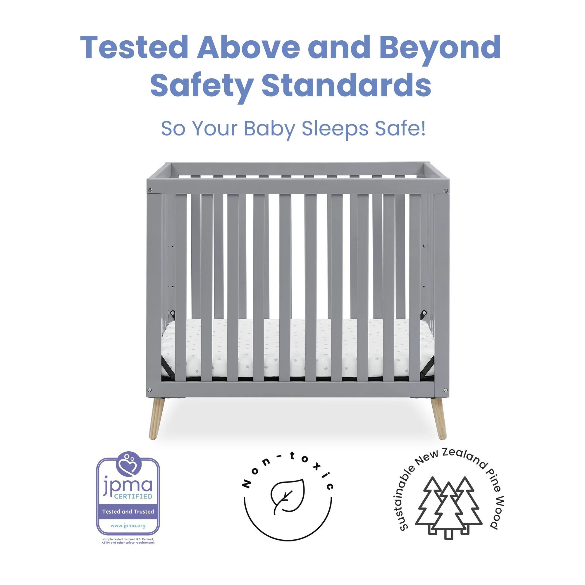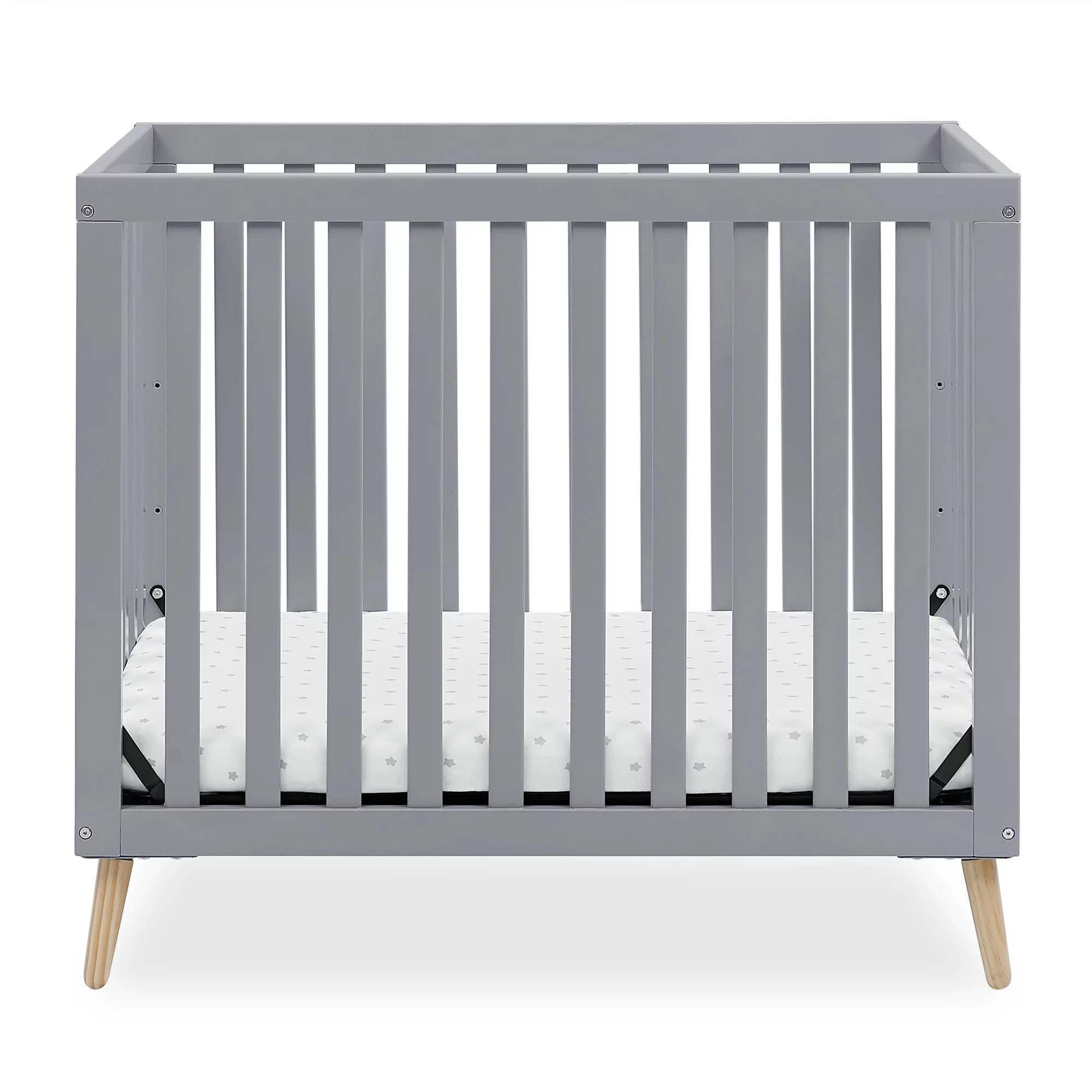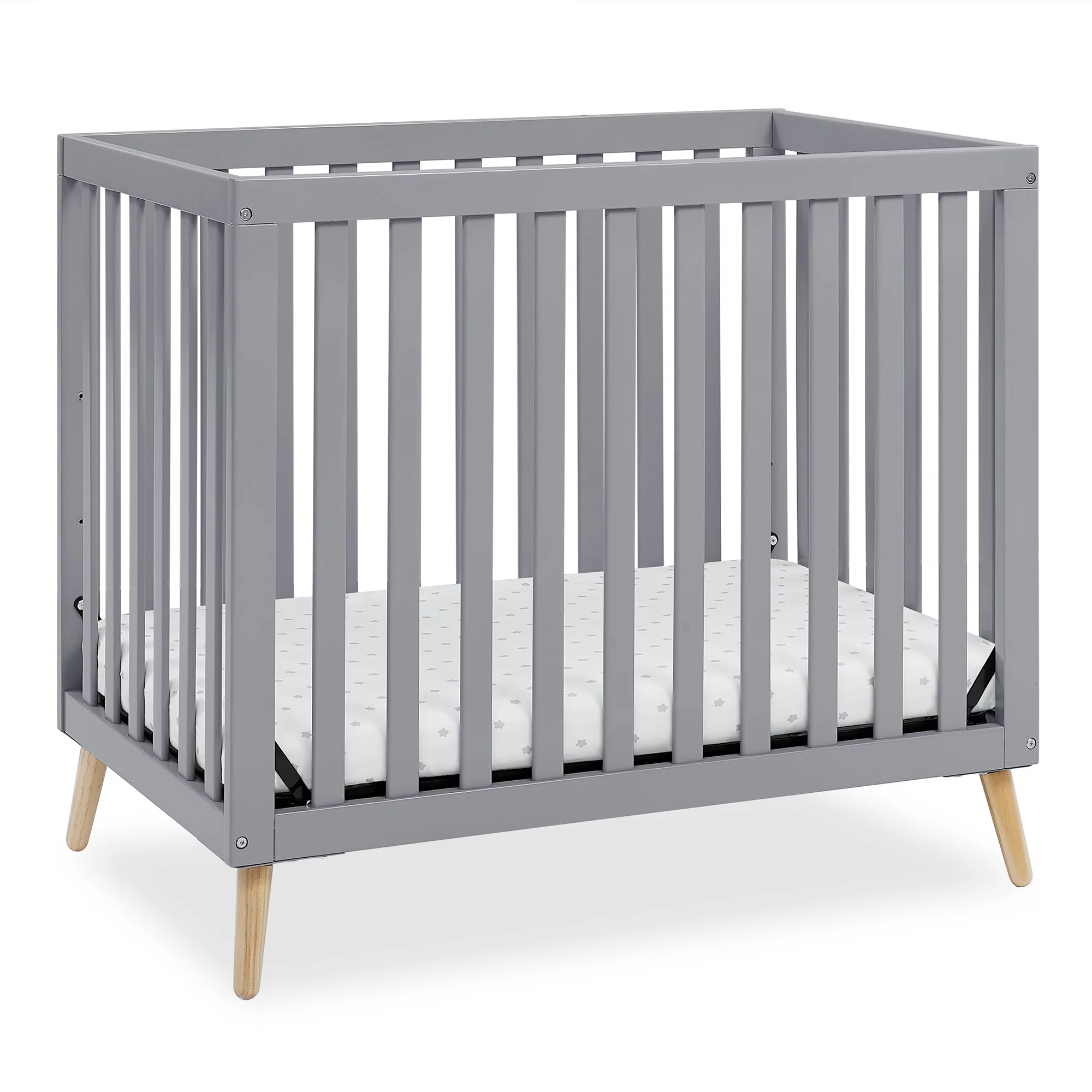 Delta Children Essex Convertible Mini Baby Crib with 2.75-Inch Mattress, Grey w/Natural