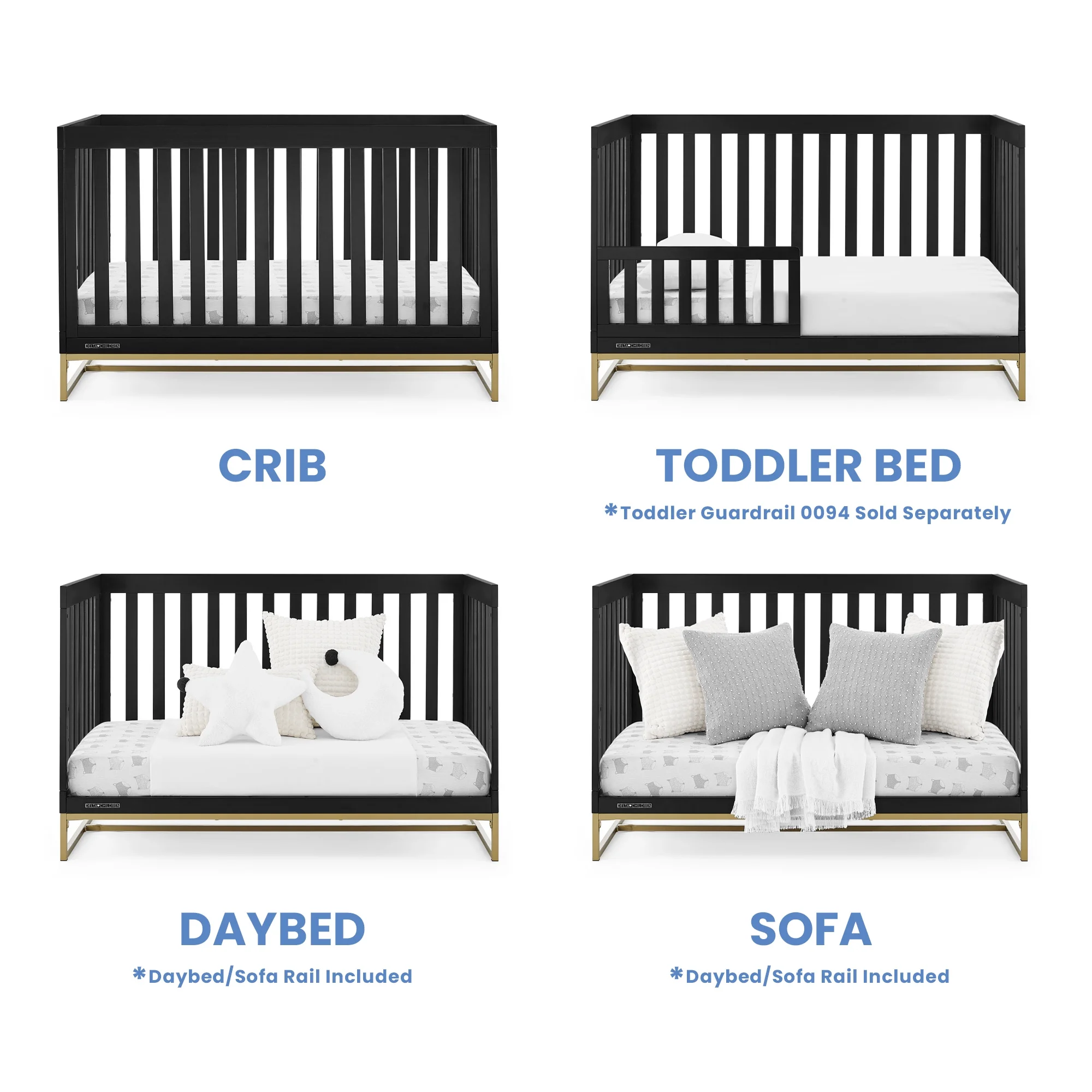 Delta Children Jade 4-in-1 Convertible Baby Crib - Greenguard Gold Certified, Ebony/Bronze