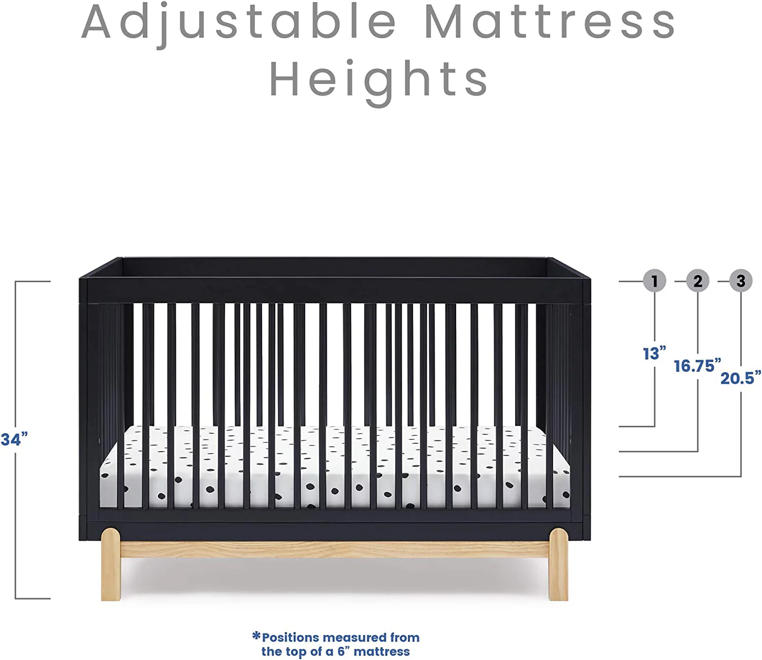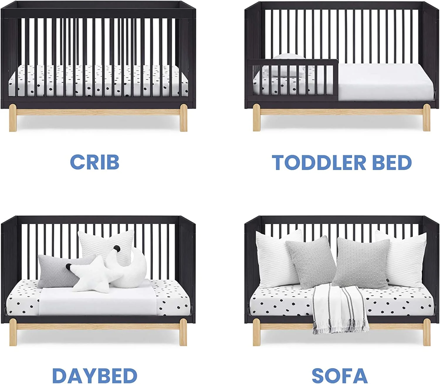 Poppy 4-in-1 Convertible Crib, Greenguard Gold Certified, Midnight Grey/Natural