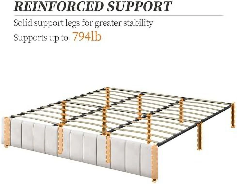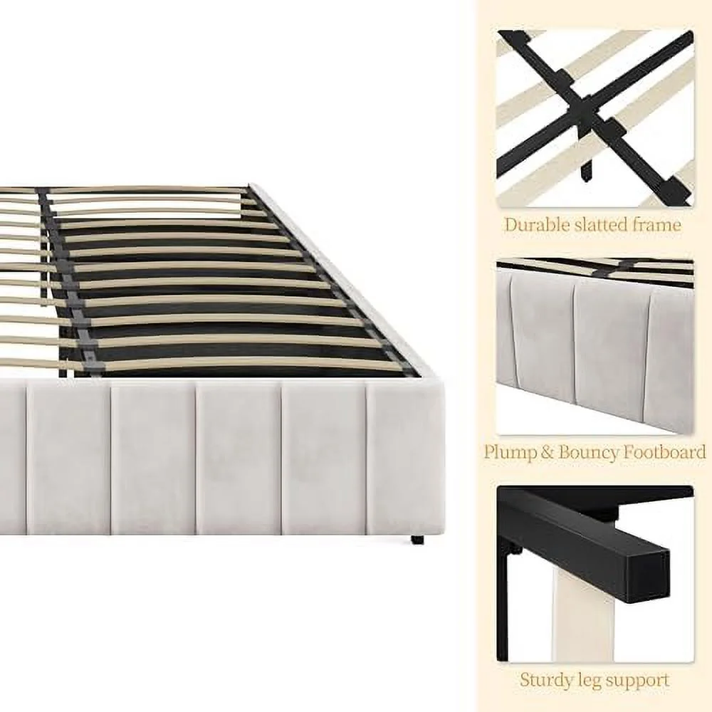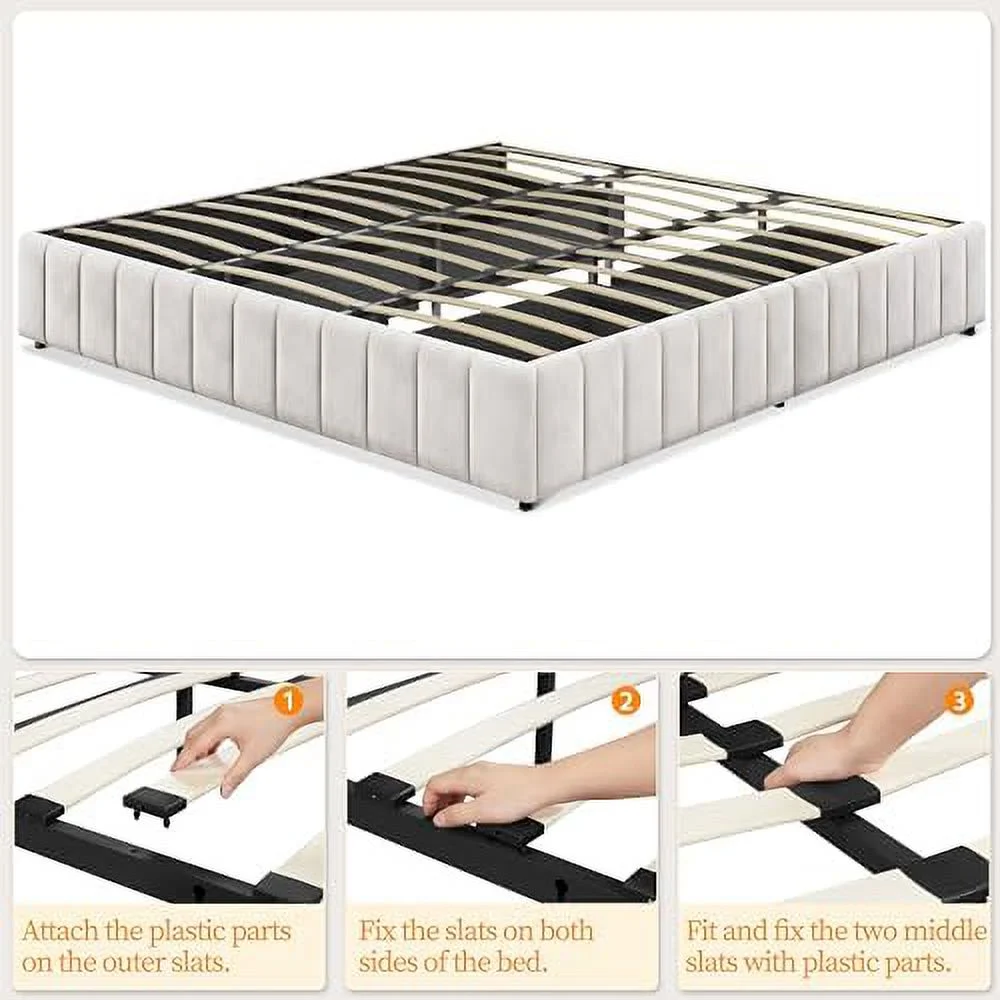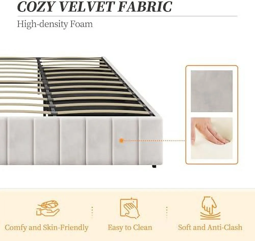Platform Bed Frame with 4 Large Storage Drawers, King Size Bed Frame with Adjustable Tufted Headboard Beige - Queen