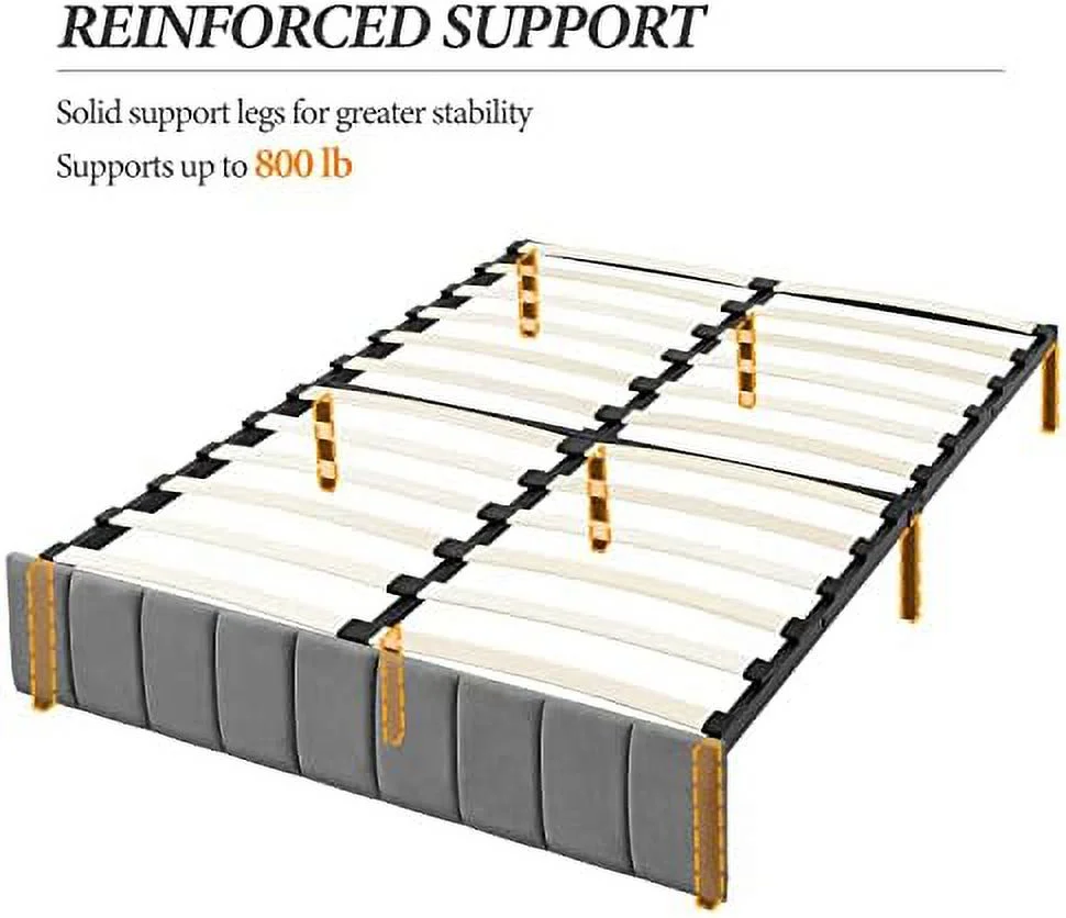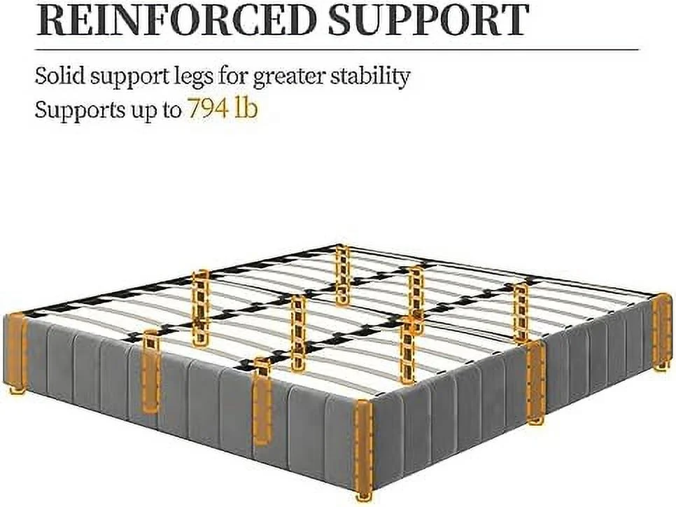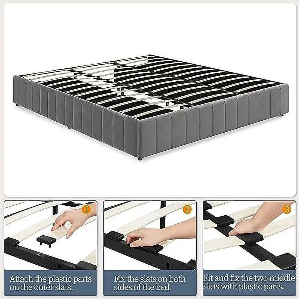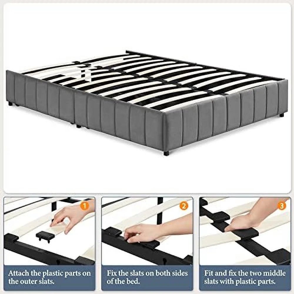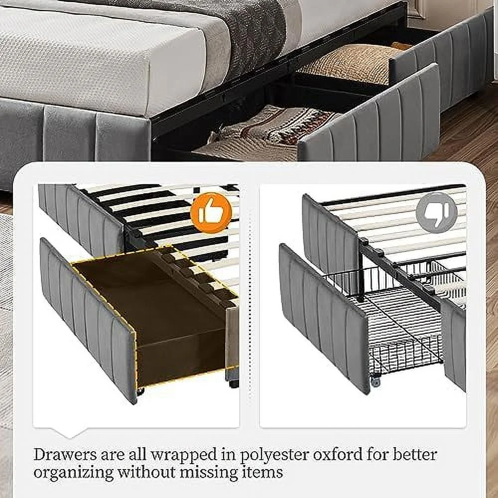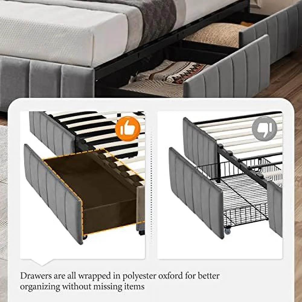 Platform Bed Frame with 4 Large Storage Drawers, King Size Bed Frame with Adjustable Tufted Headboard Dark Grey - Queen