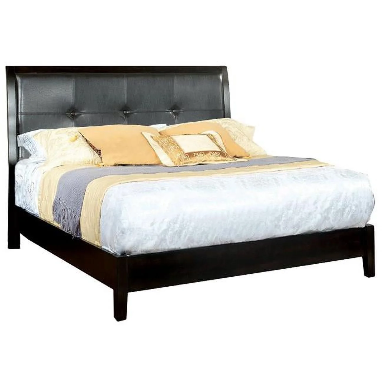 Benjara Chery King Bed with Button Tufted Headboard Beige Upholstery, Black - King Size