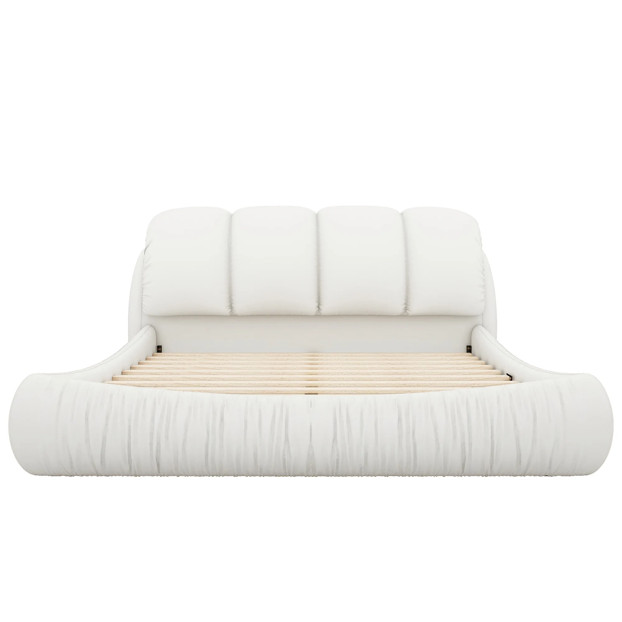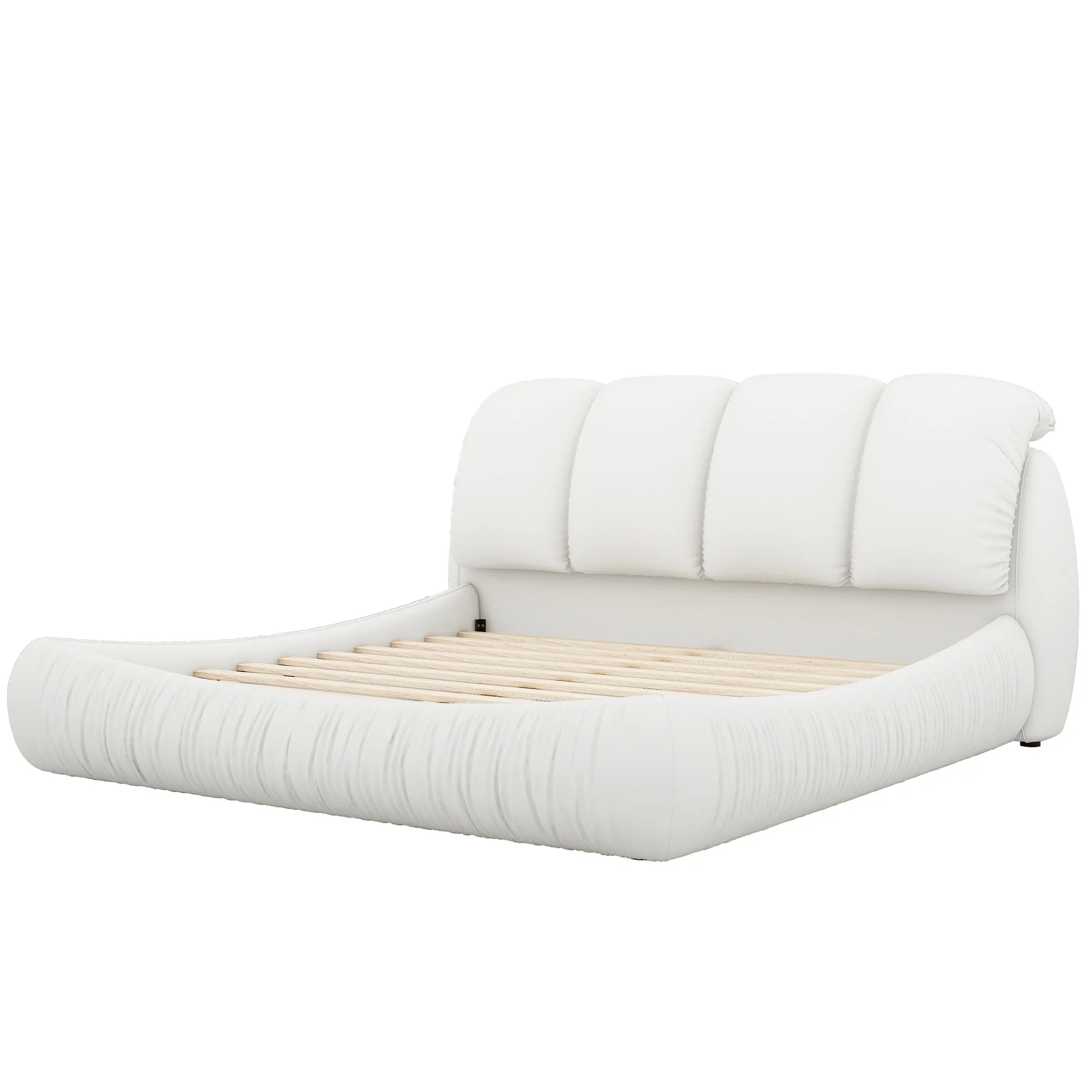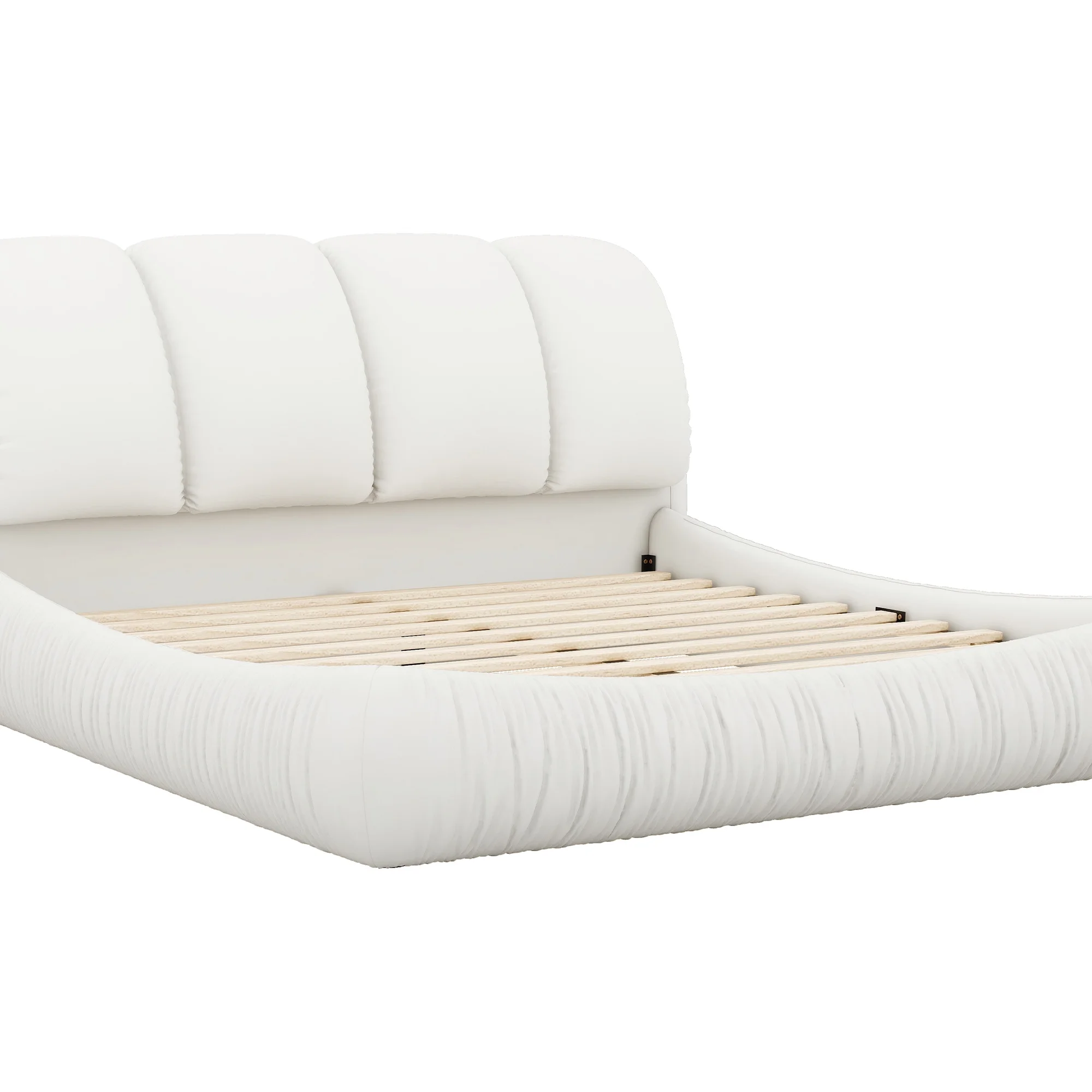 White Leather King-Size Bed with Luxe Upholstered Thick Headboard & Padded Backrest