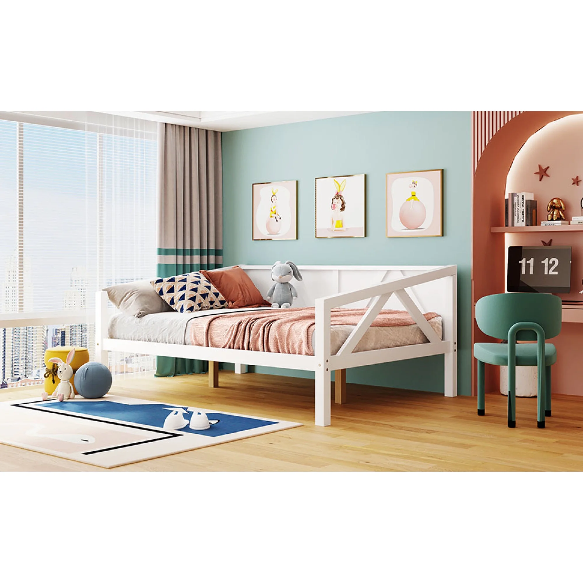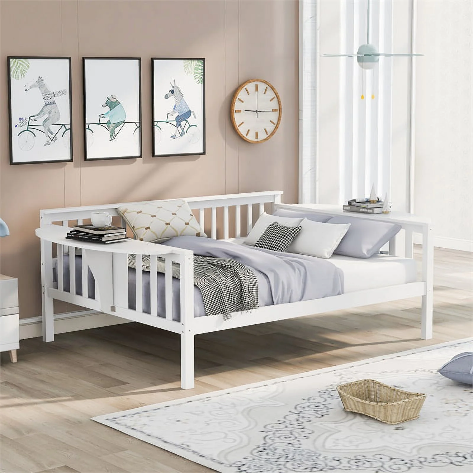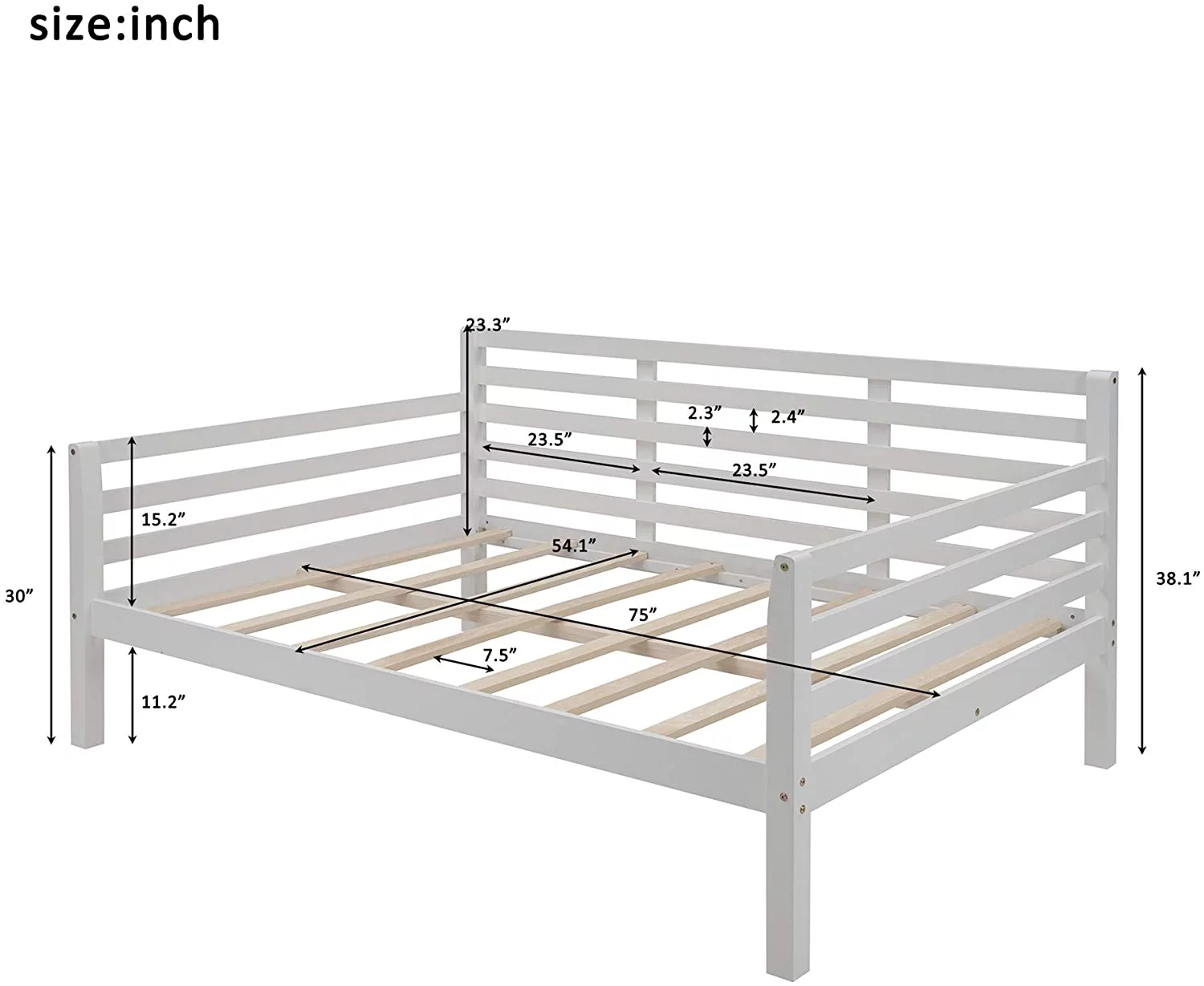 CRO Decor Full size Daybed with Two Drawers Wood Slat Support (White)