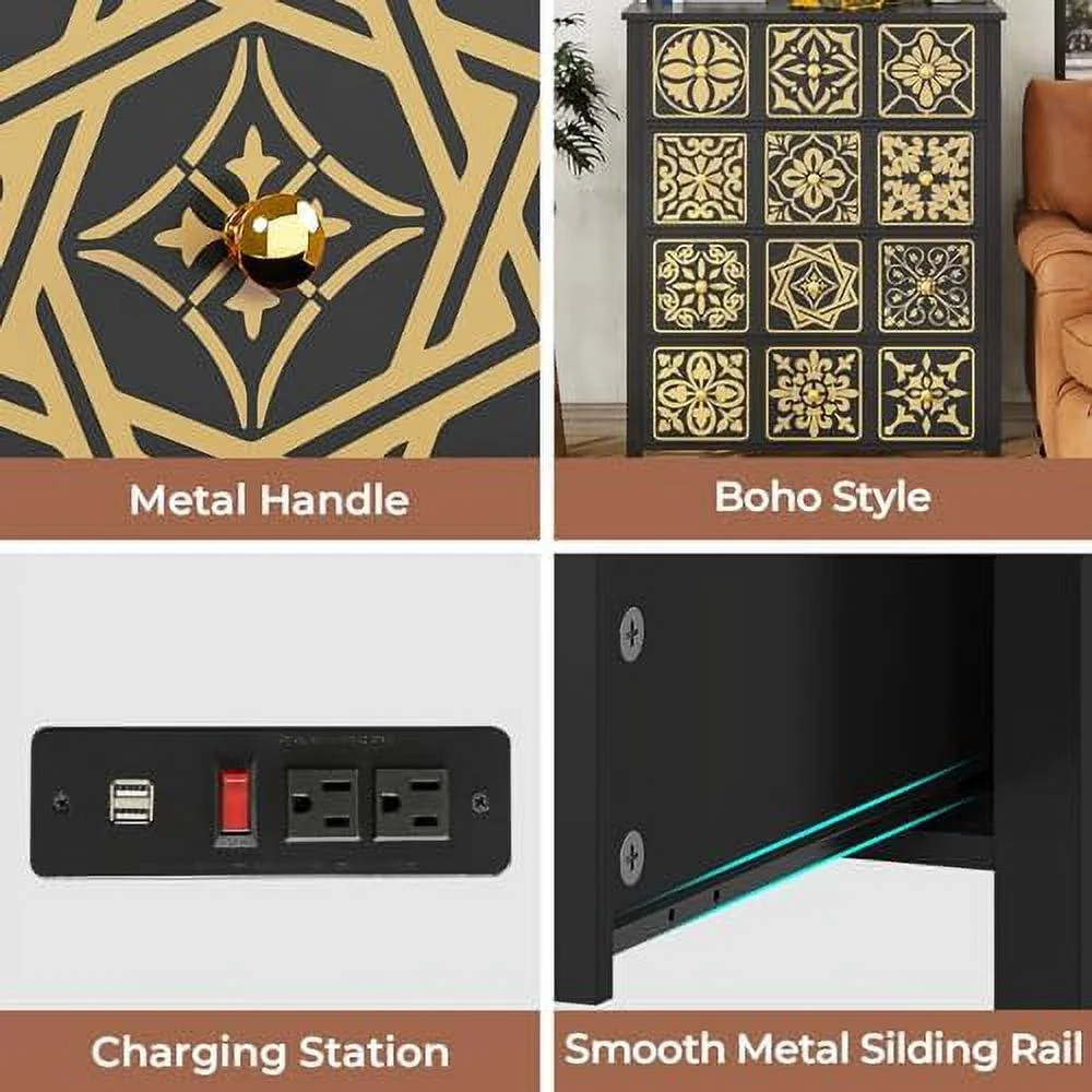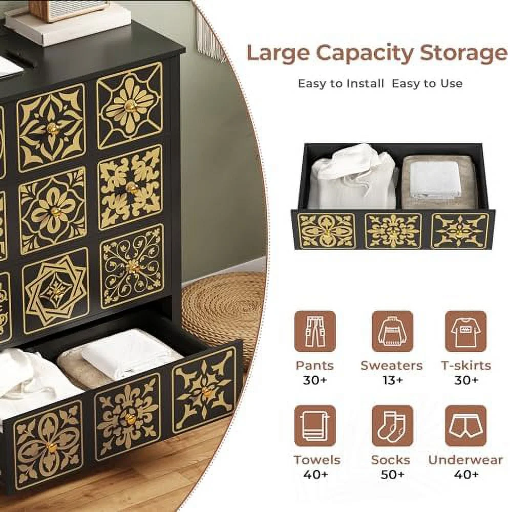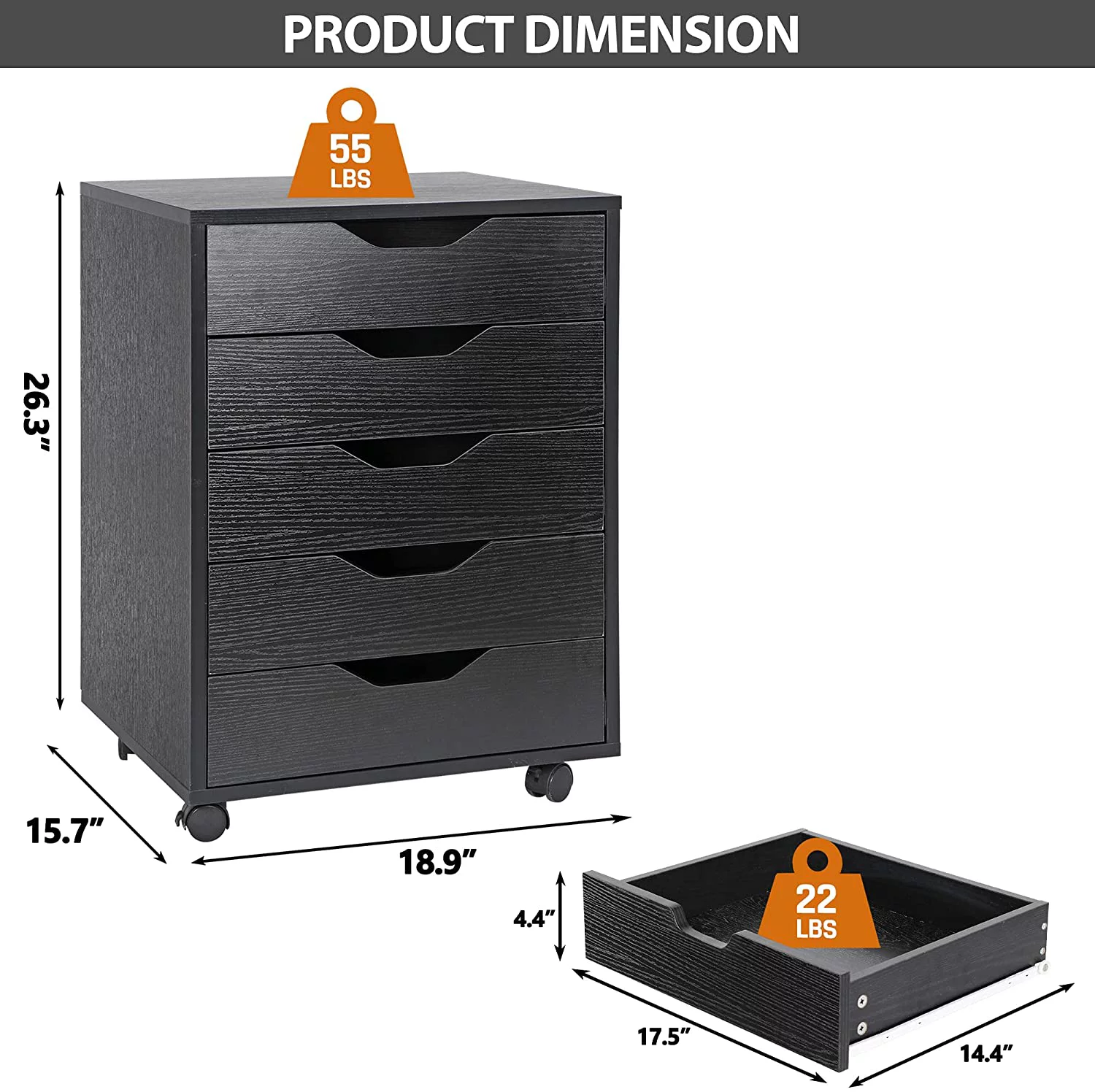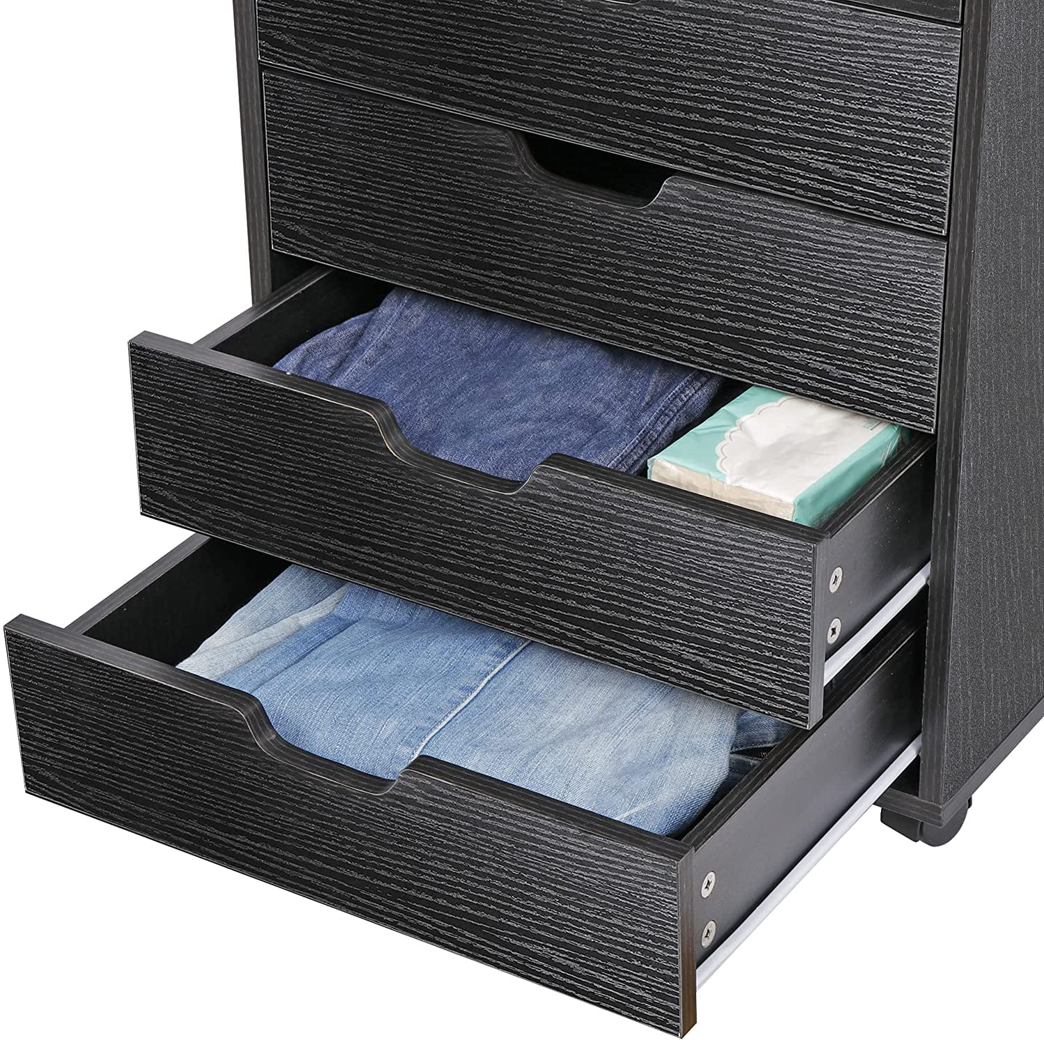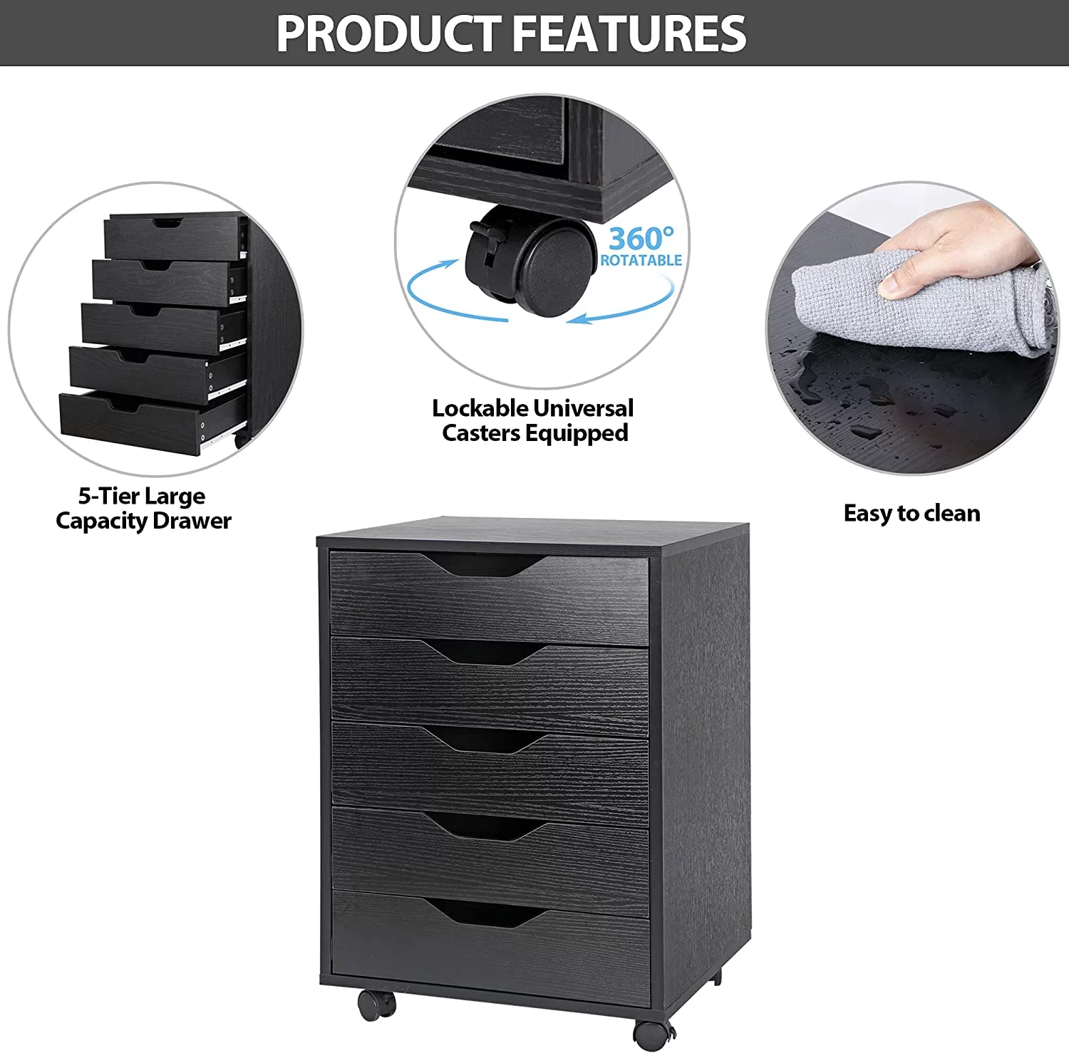 5 Drawers Cabinet Home Office Storage Organization Cabinet with Wheel,Mobile Dresser for Living Room,Black