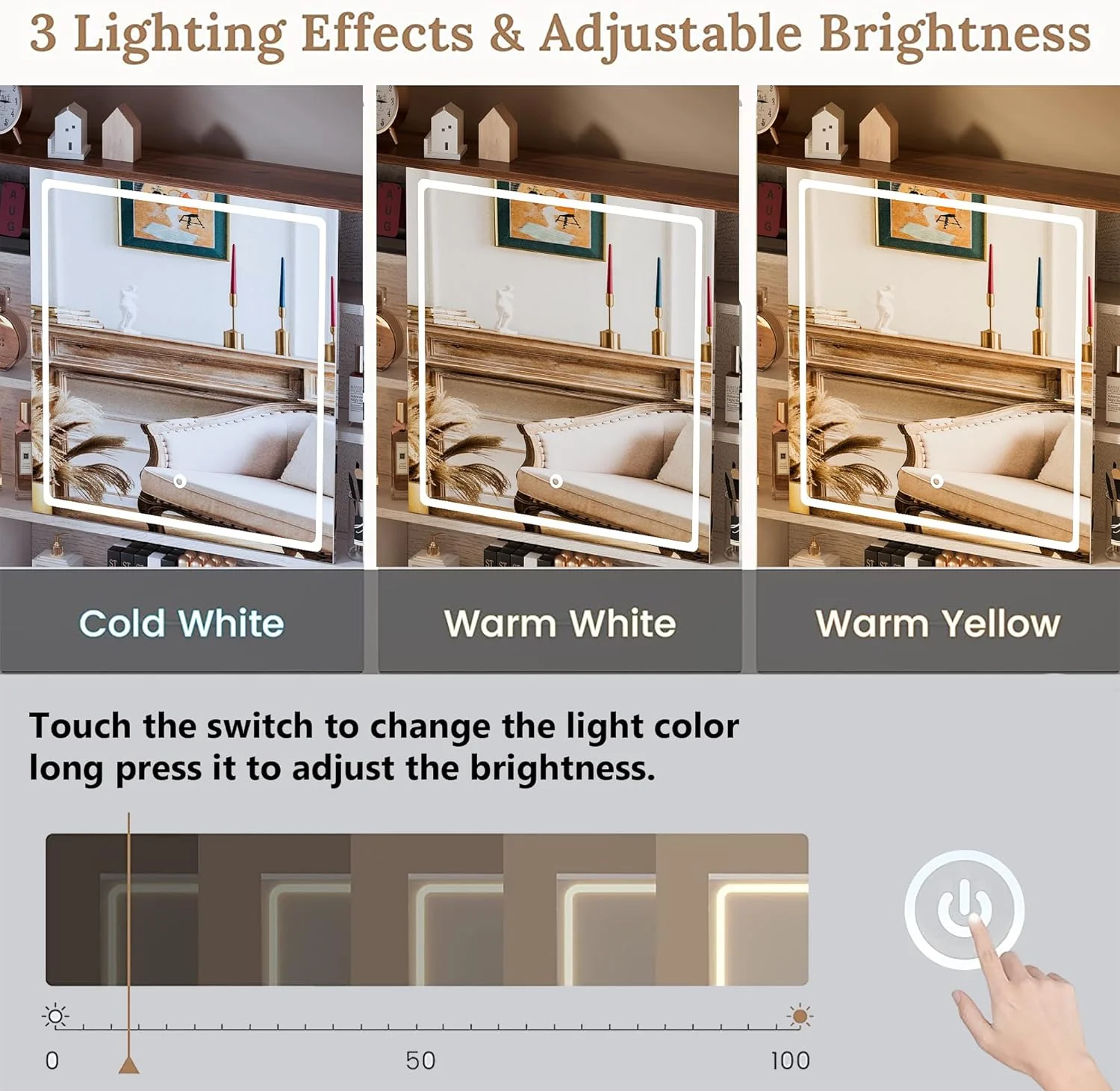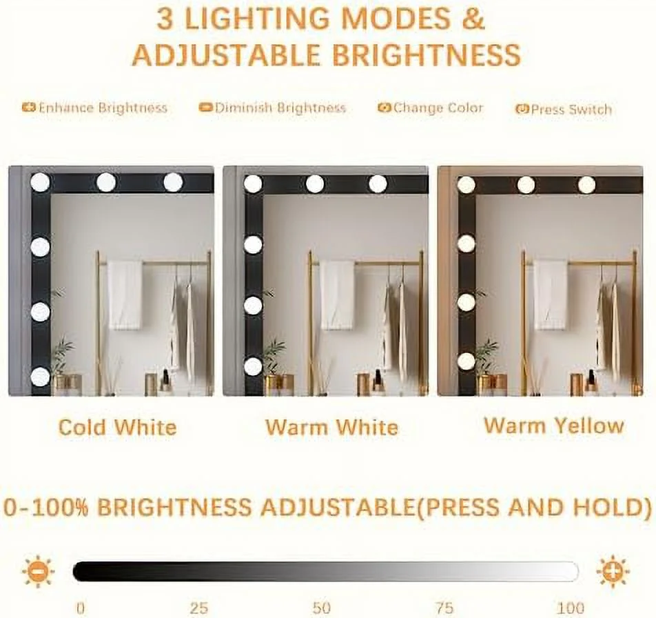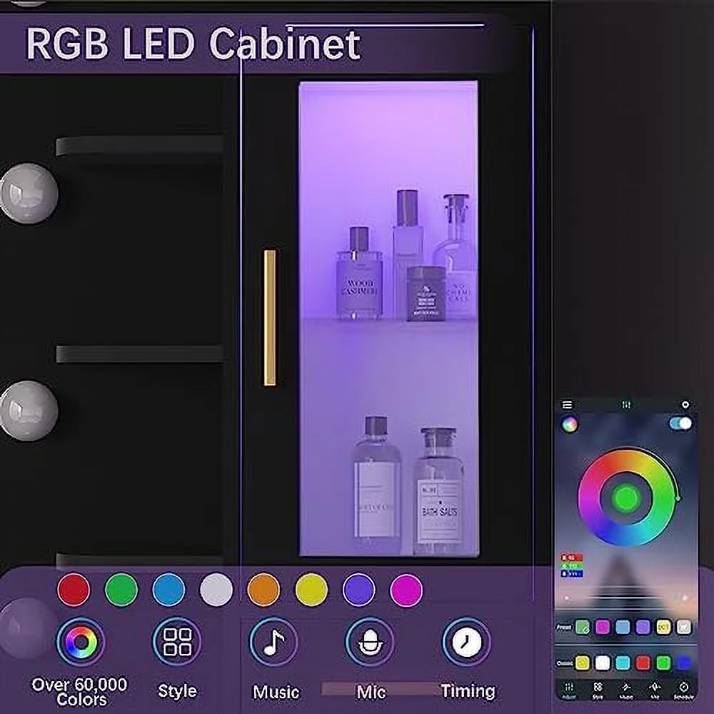 Glavbiku Modern Makeup Vanity Table Set with Sliding Mirror,LED Dressing Desk with 6 Drawer,White