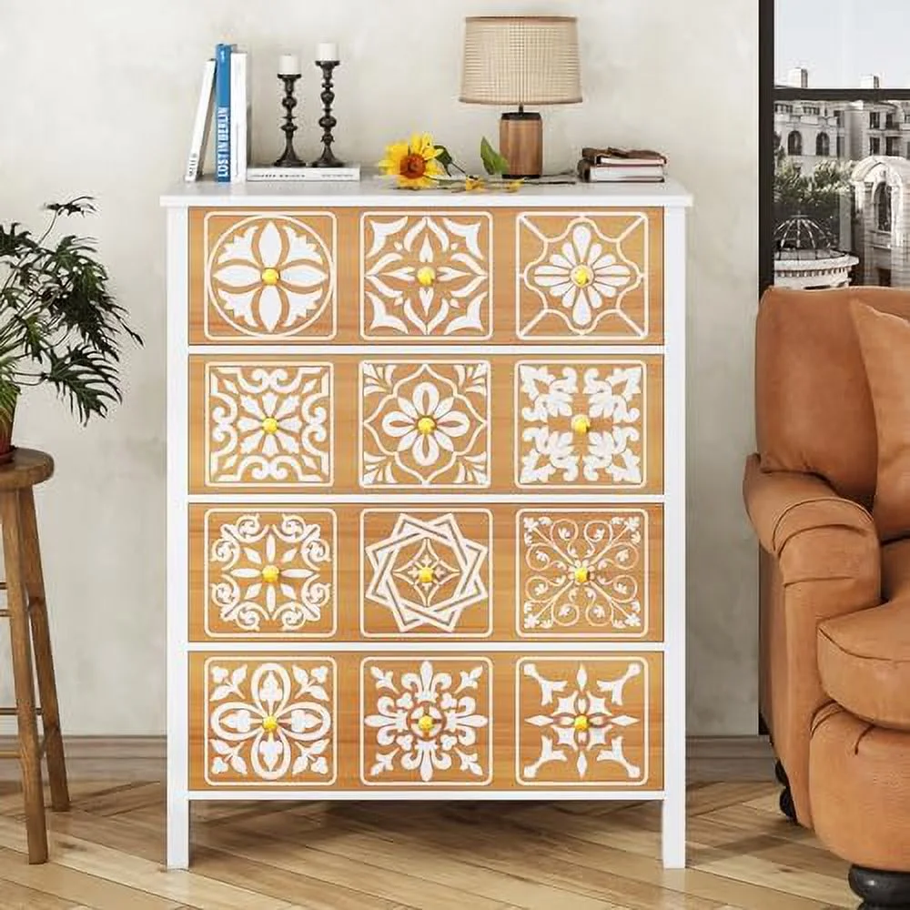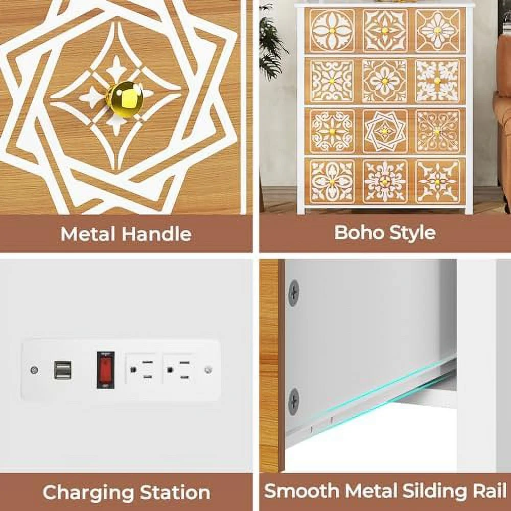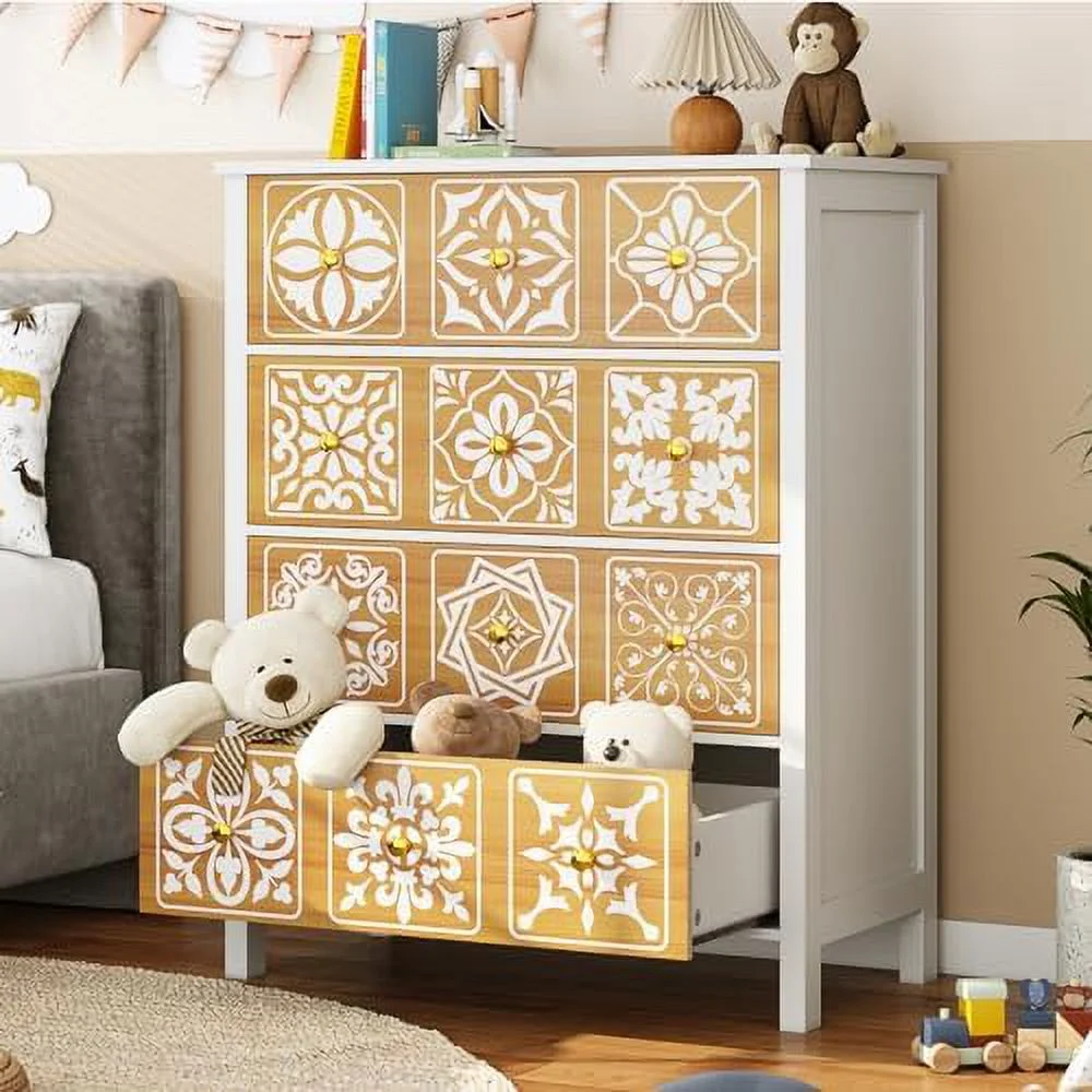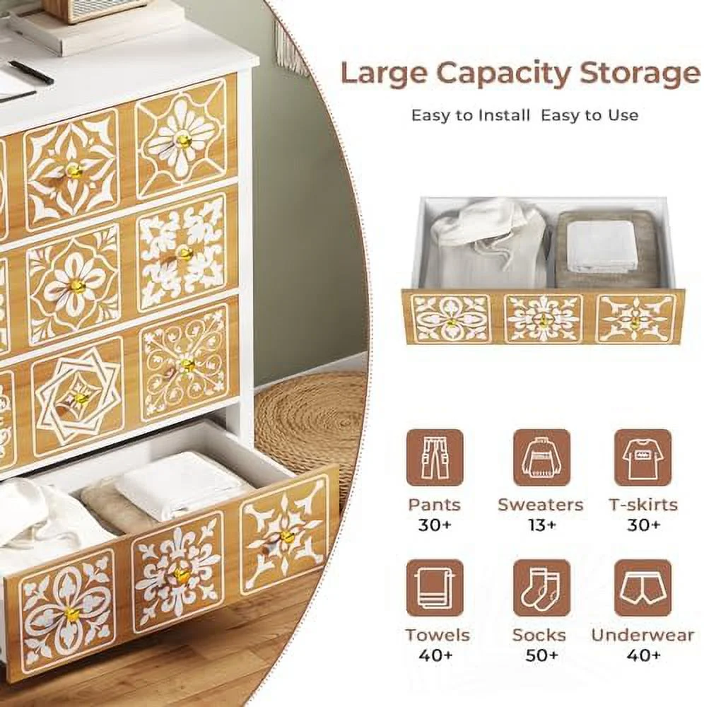 Large dresser with drawers, dresser set with removable 3-drawer cabinet, modern dresser (white)