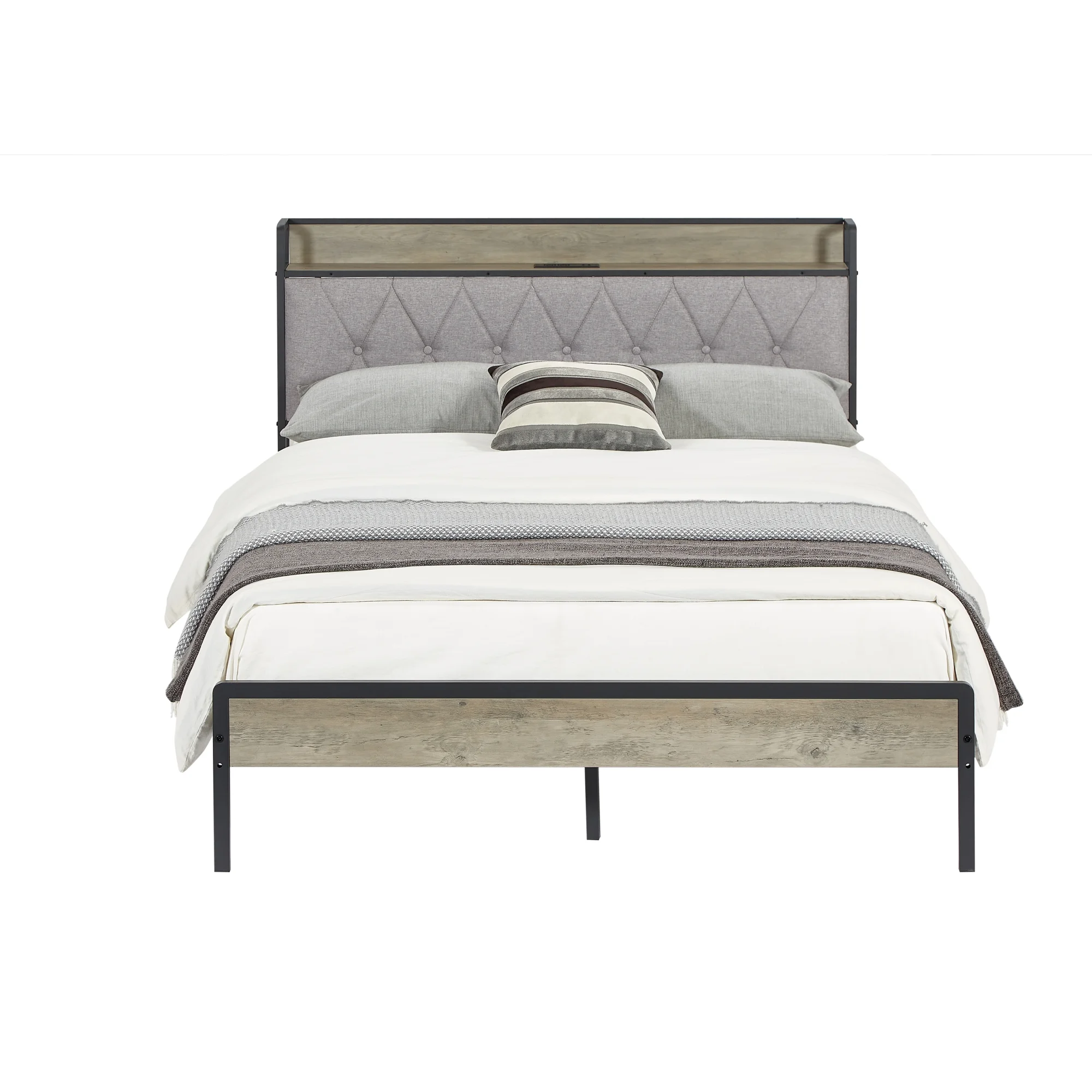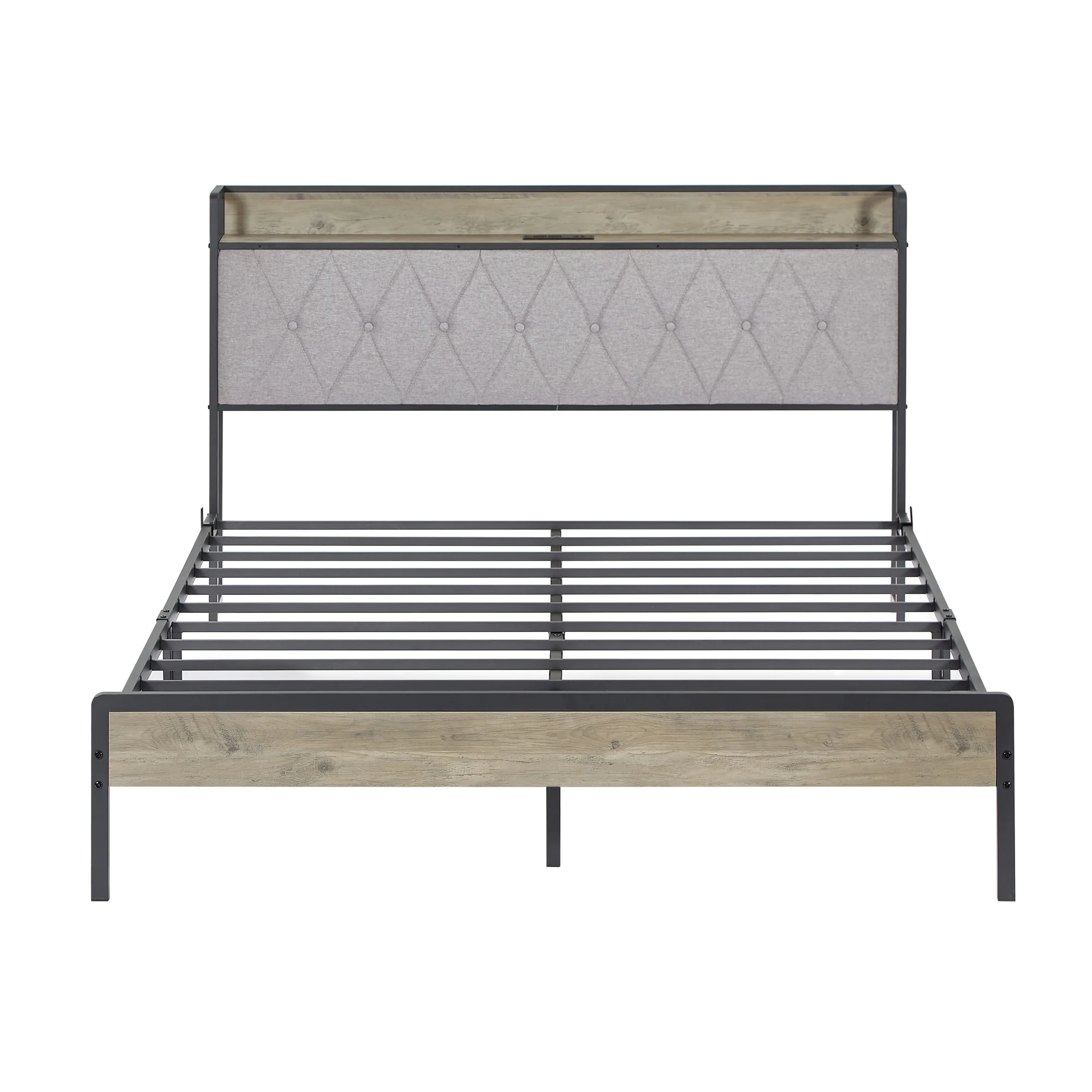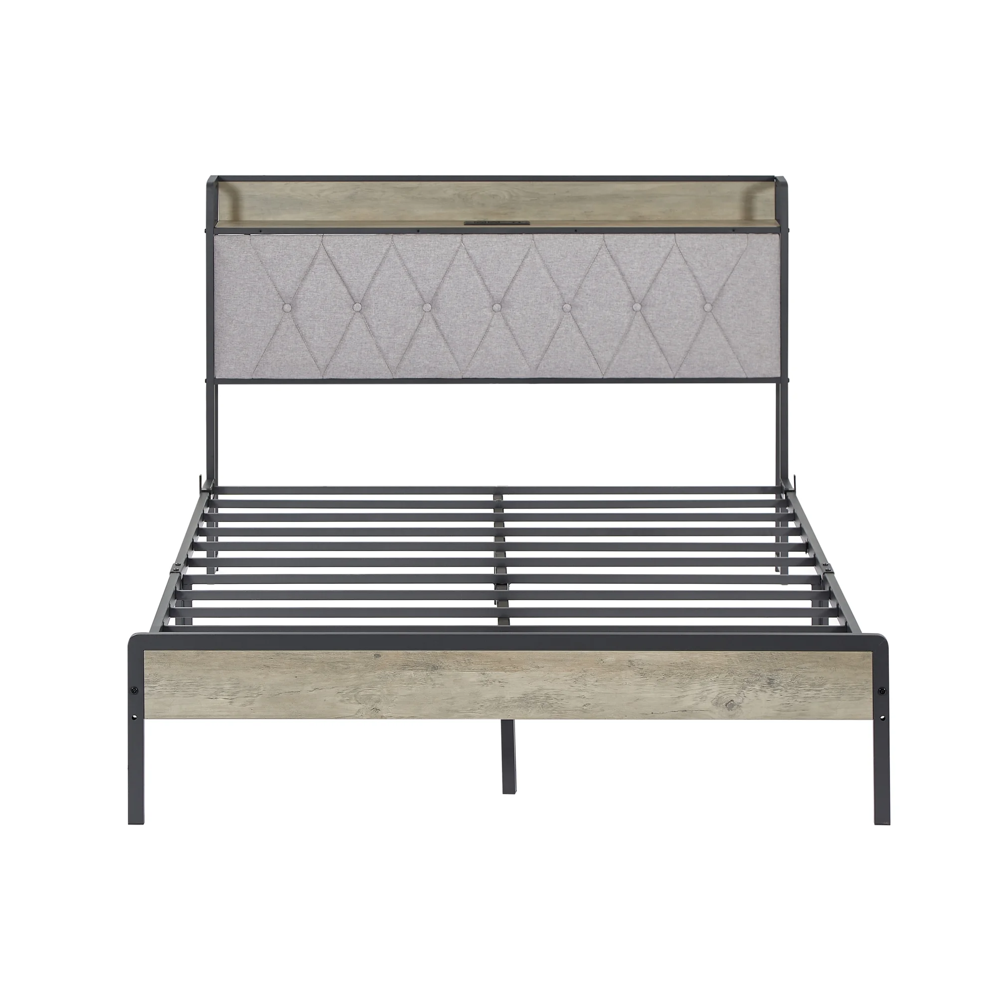 Full Size Grey Bed Frame with Charging Station - 83.1'' L x 56.1'' W x 39.2'' H