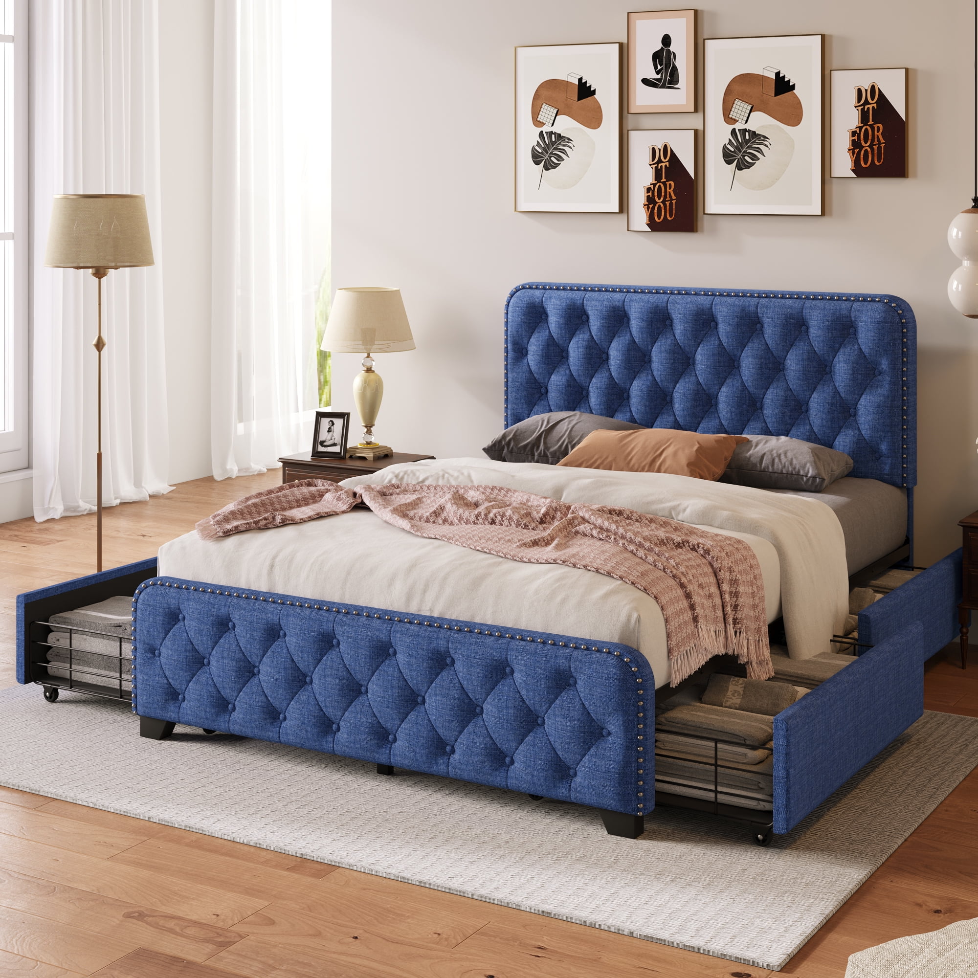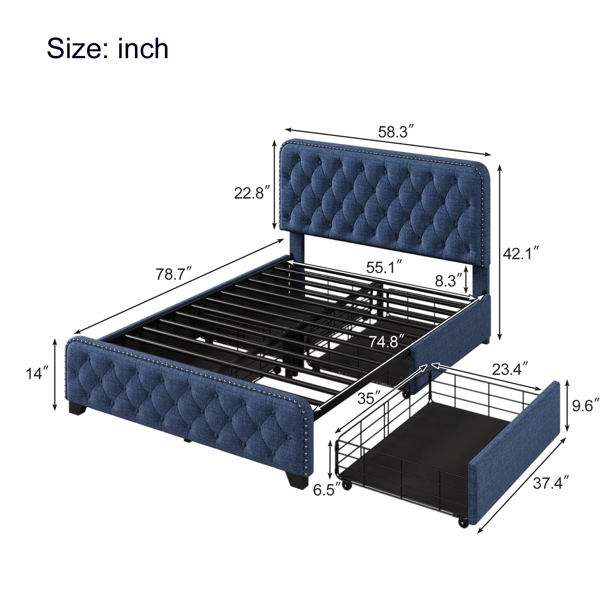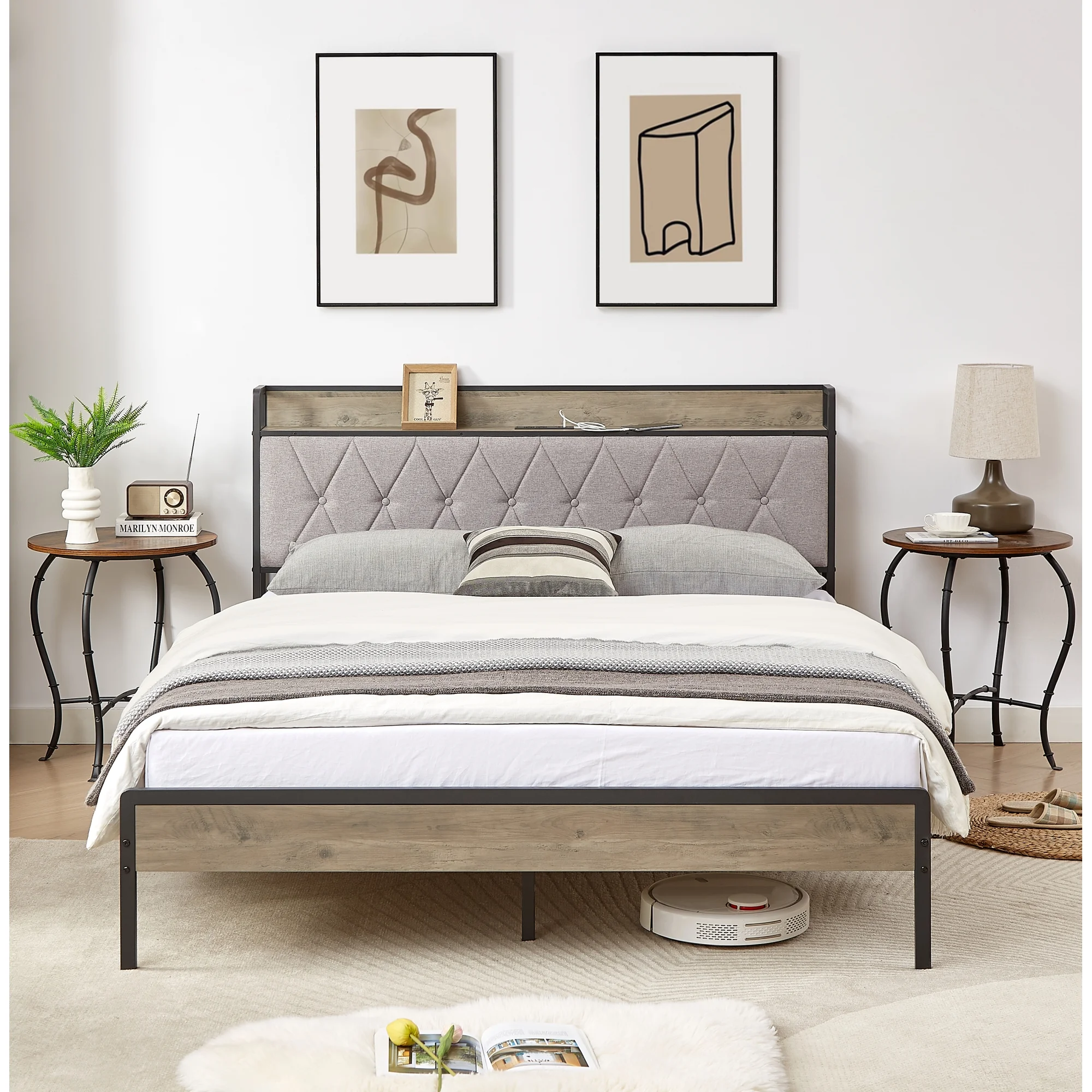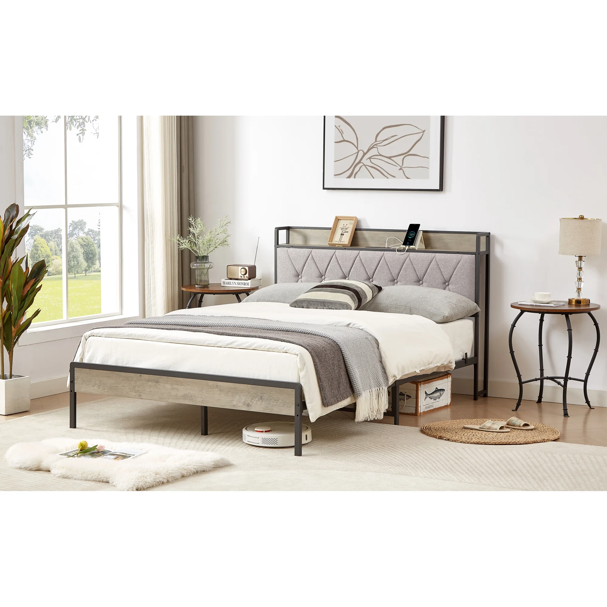 Full Size Grey Bed Frame with Charging Station - 83.1'' L x 56.1'' W x 39.2'' H