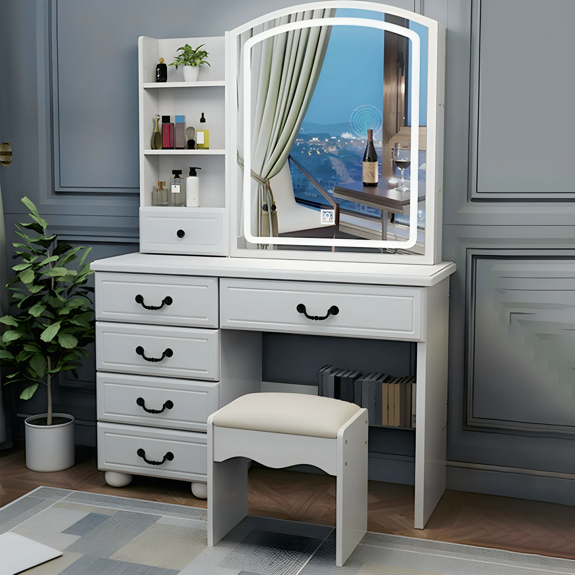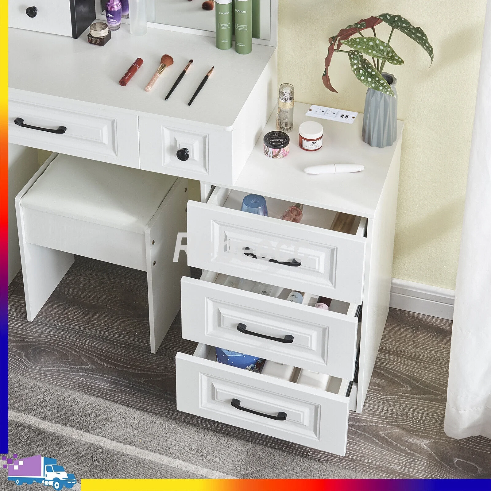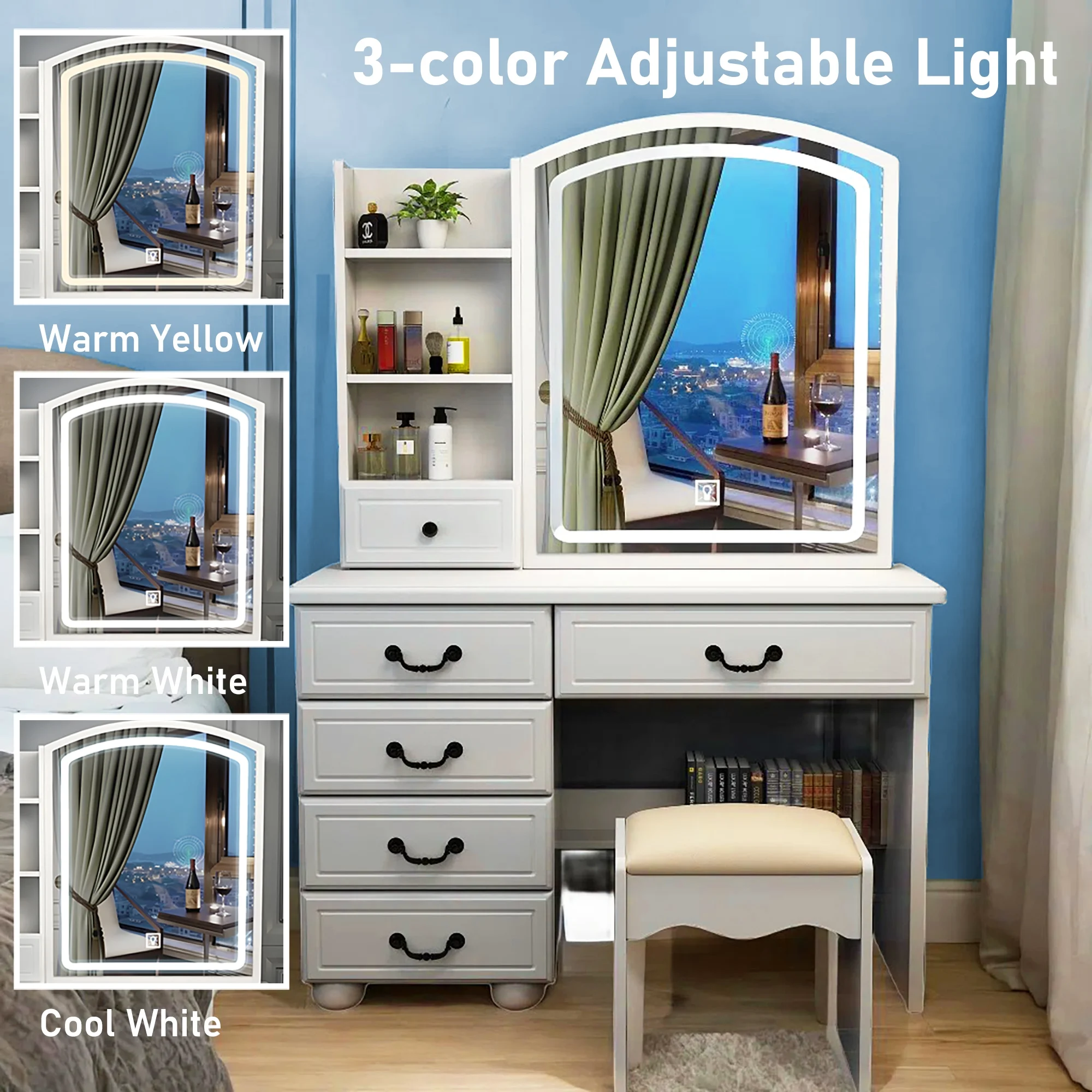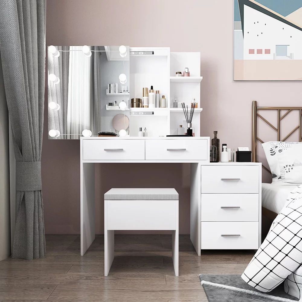 New Modern White Dressing Table Bedroom Set Makeup Desk with Mirror & Drawers US