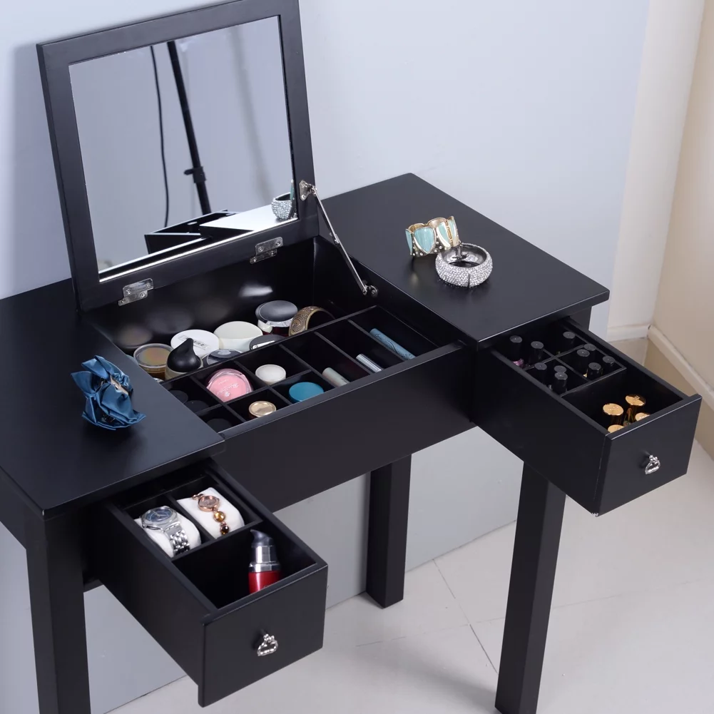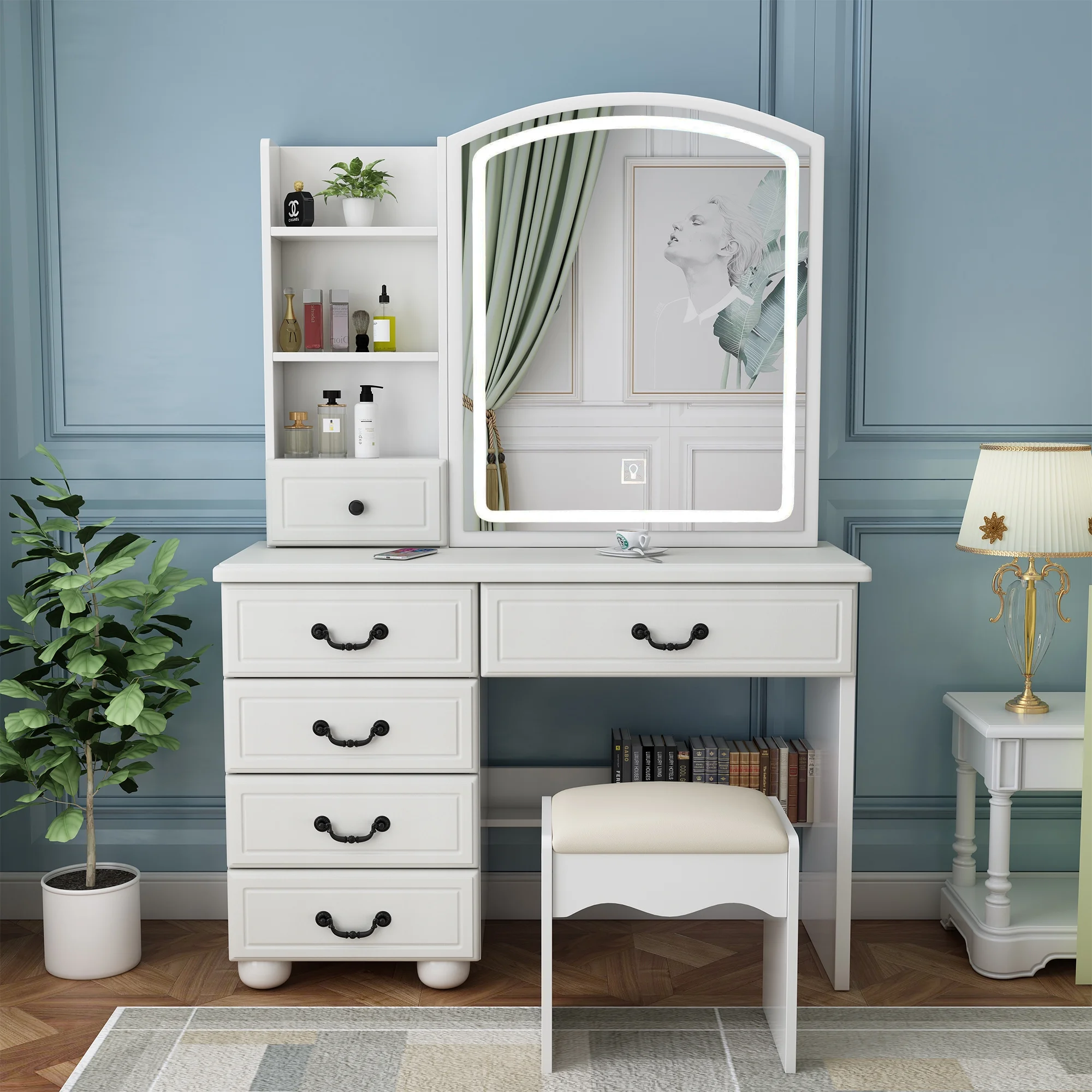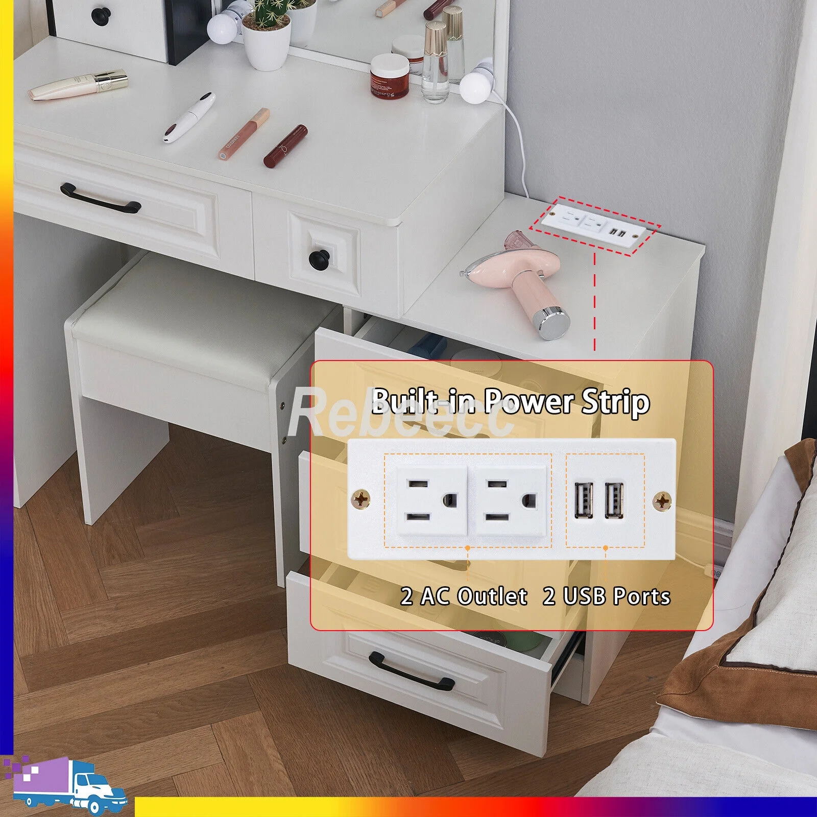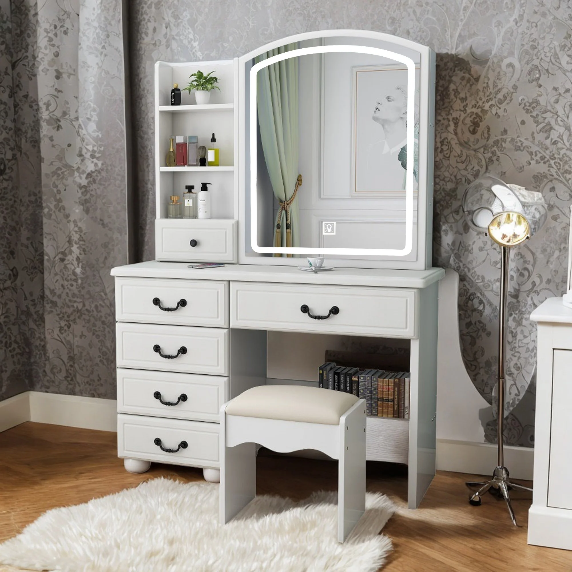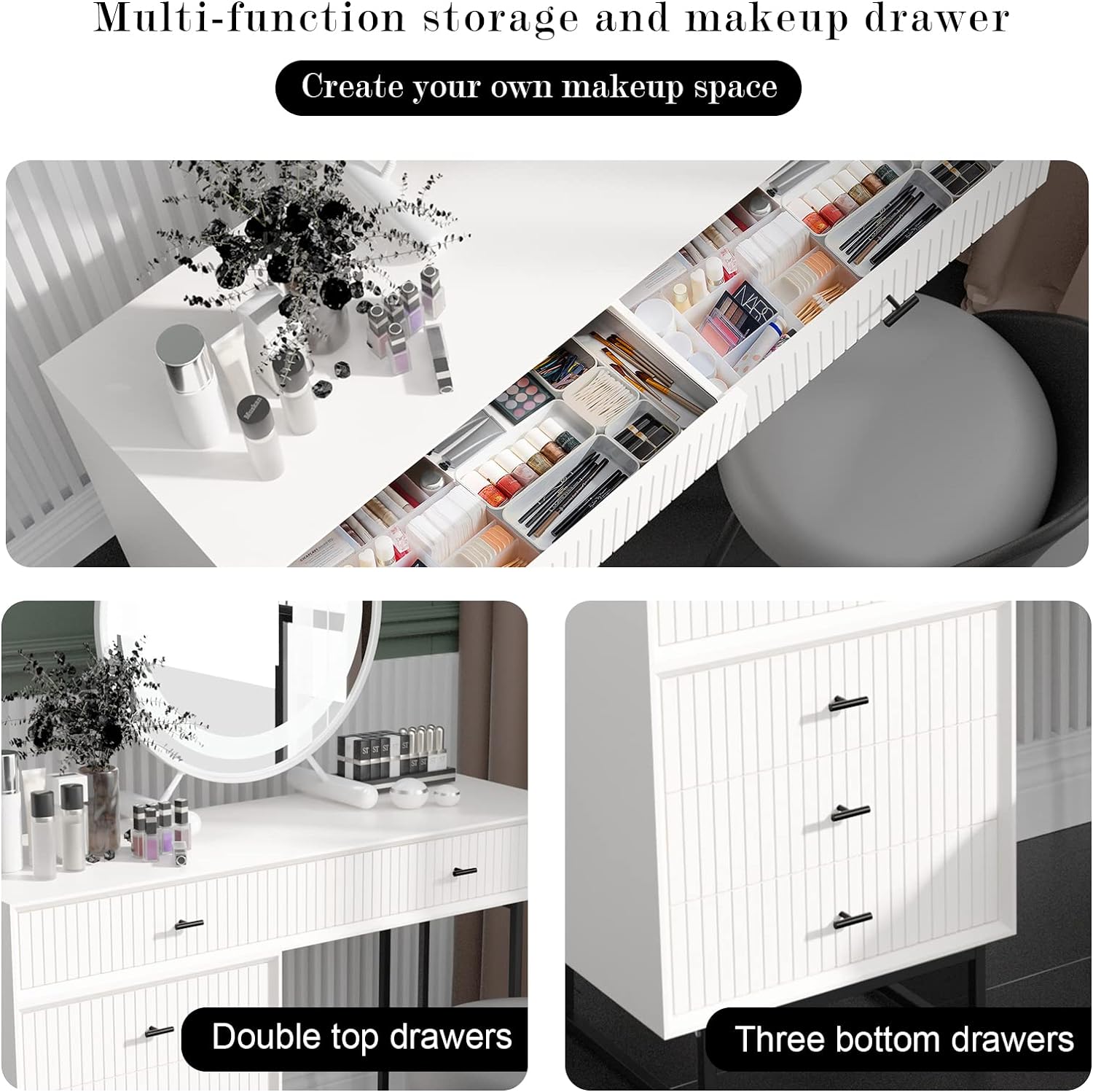 New Modern White Dressing Table Bedroom Set Makeup Desk with Mirror & Drawers US