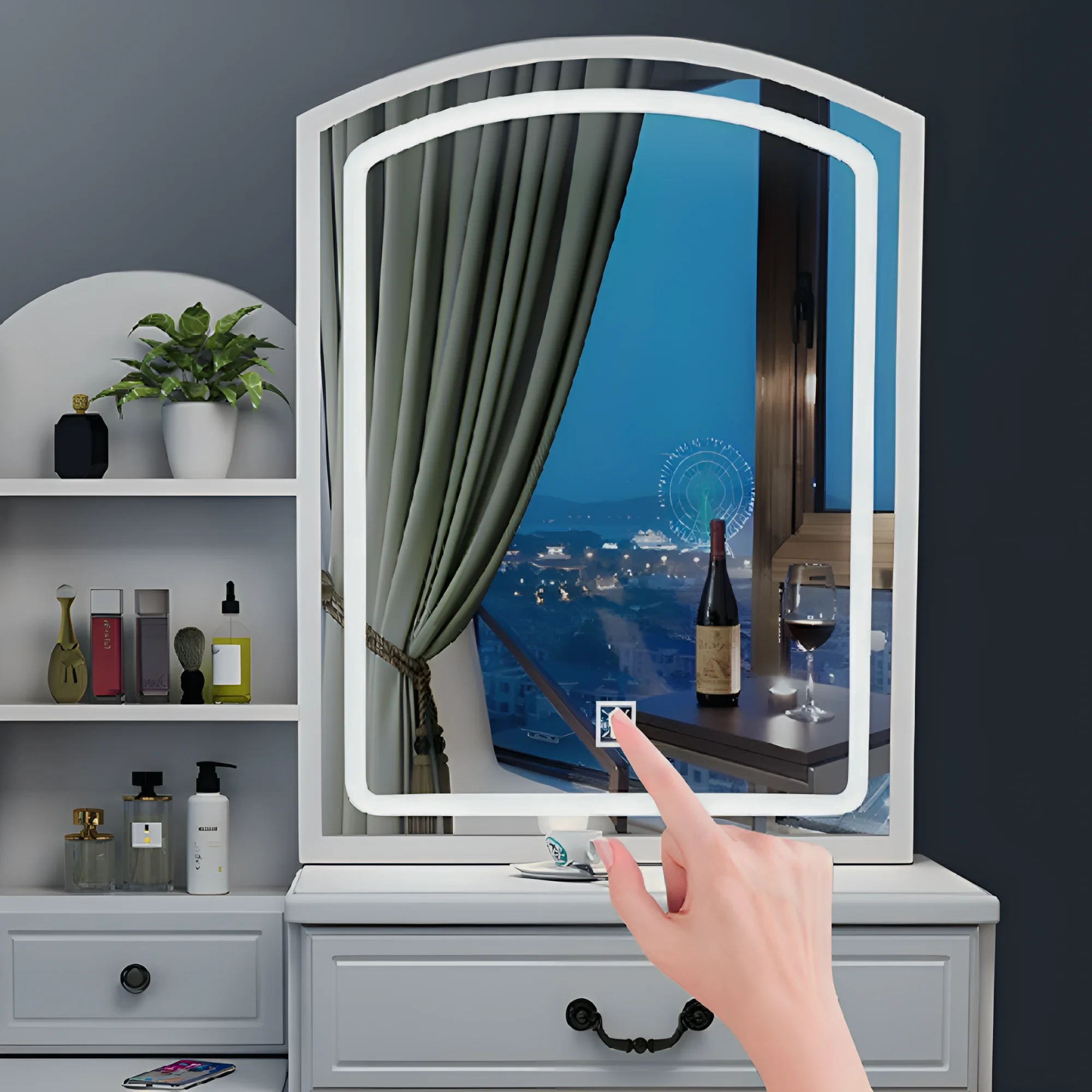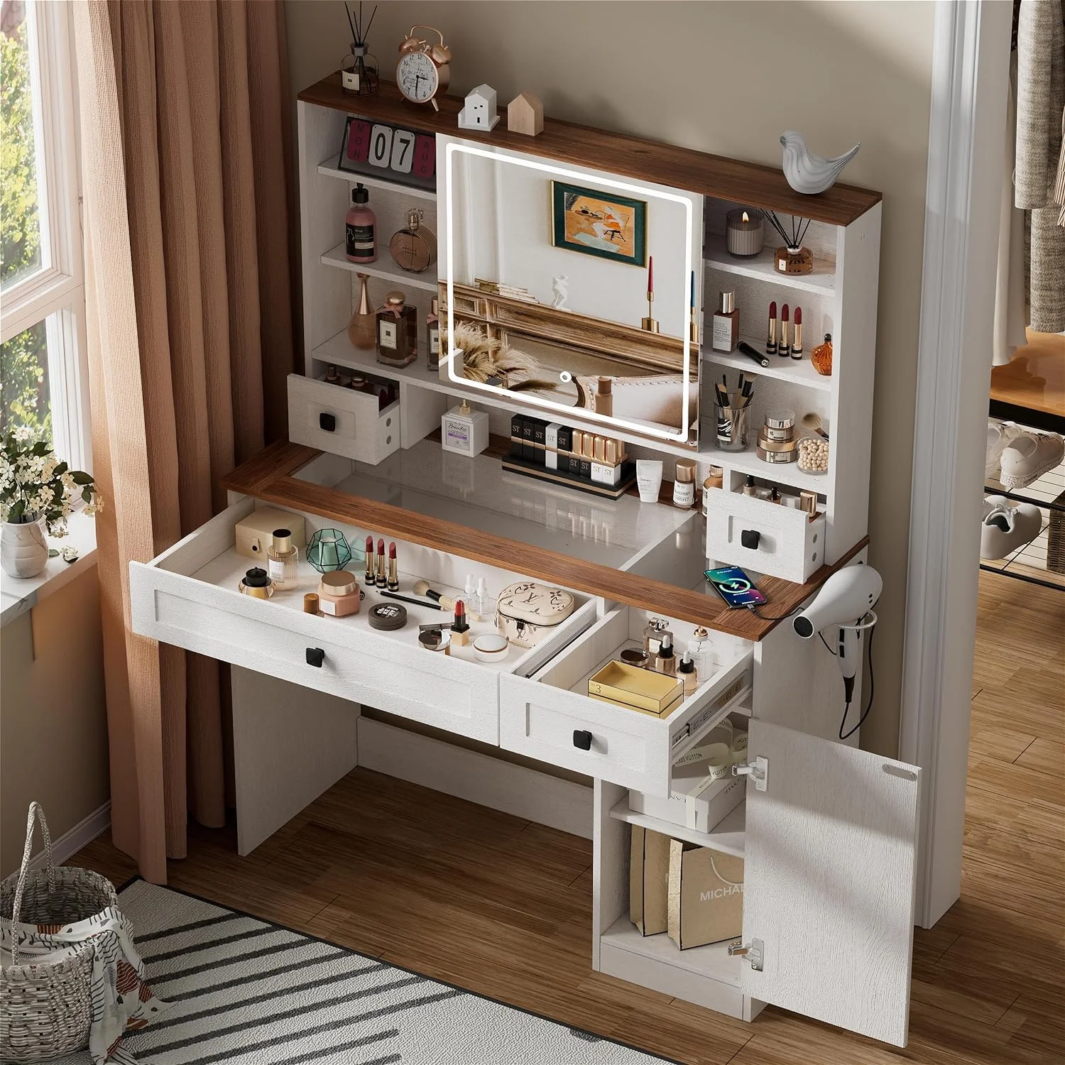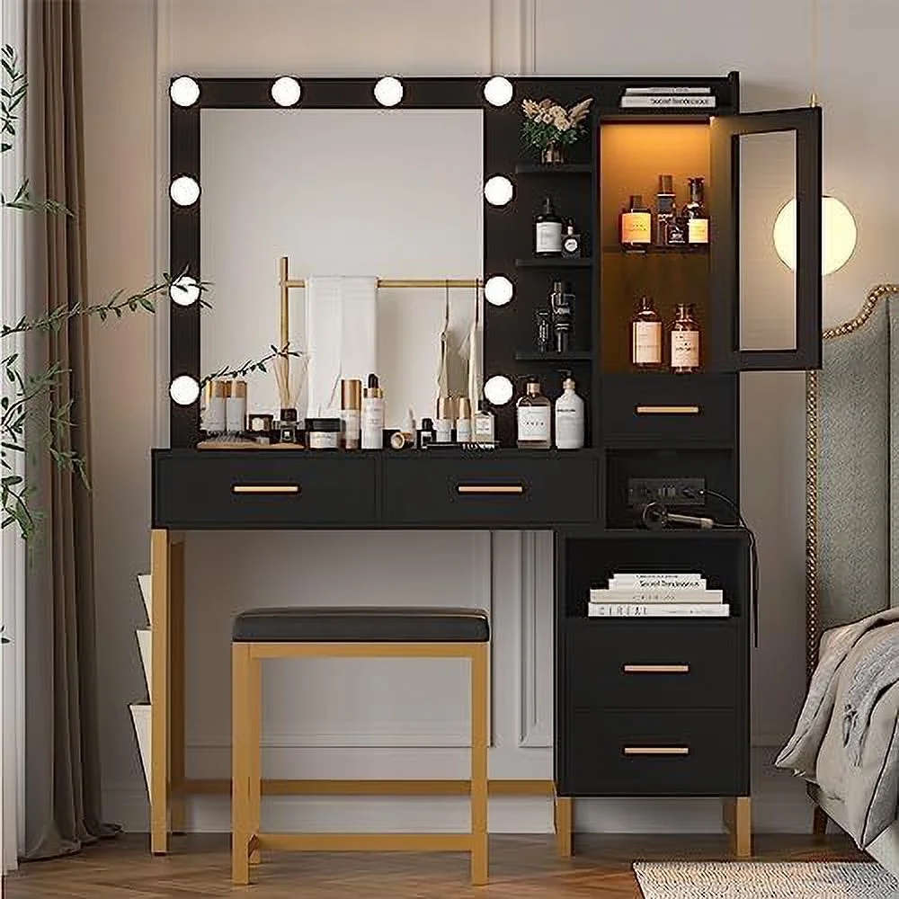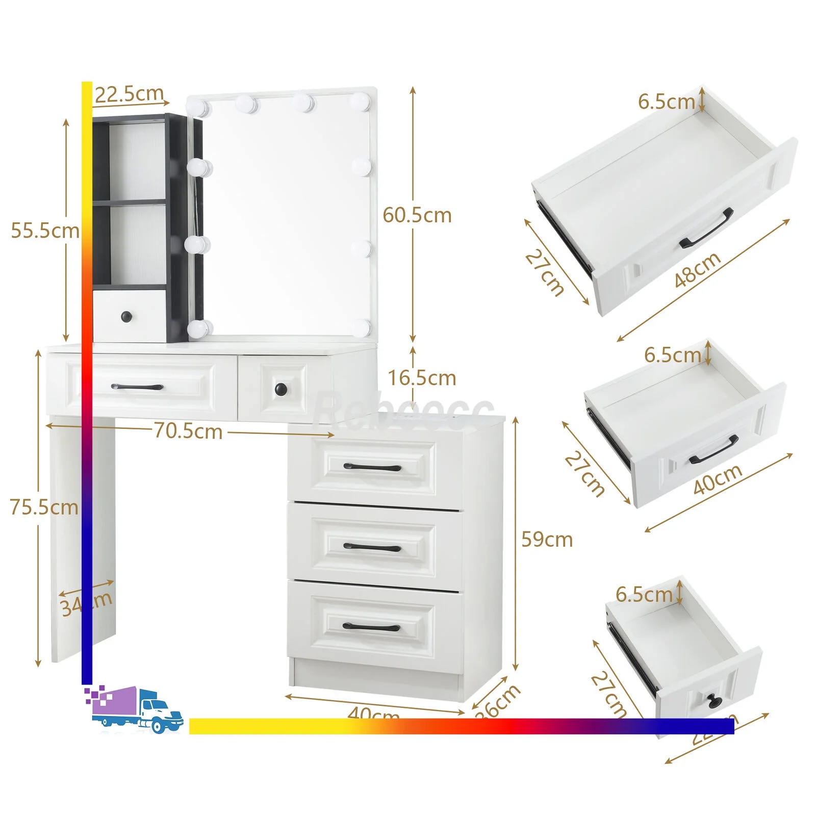New Modern White Dressing Table Bedroom Set Makeup Desk with Mirror & Drawers US