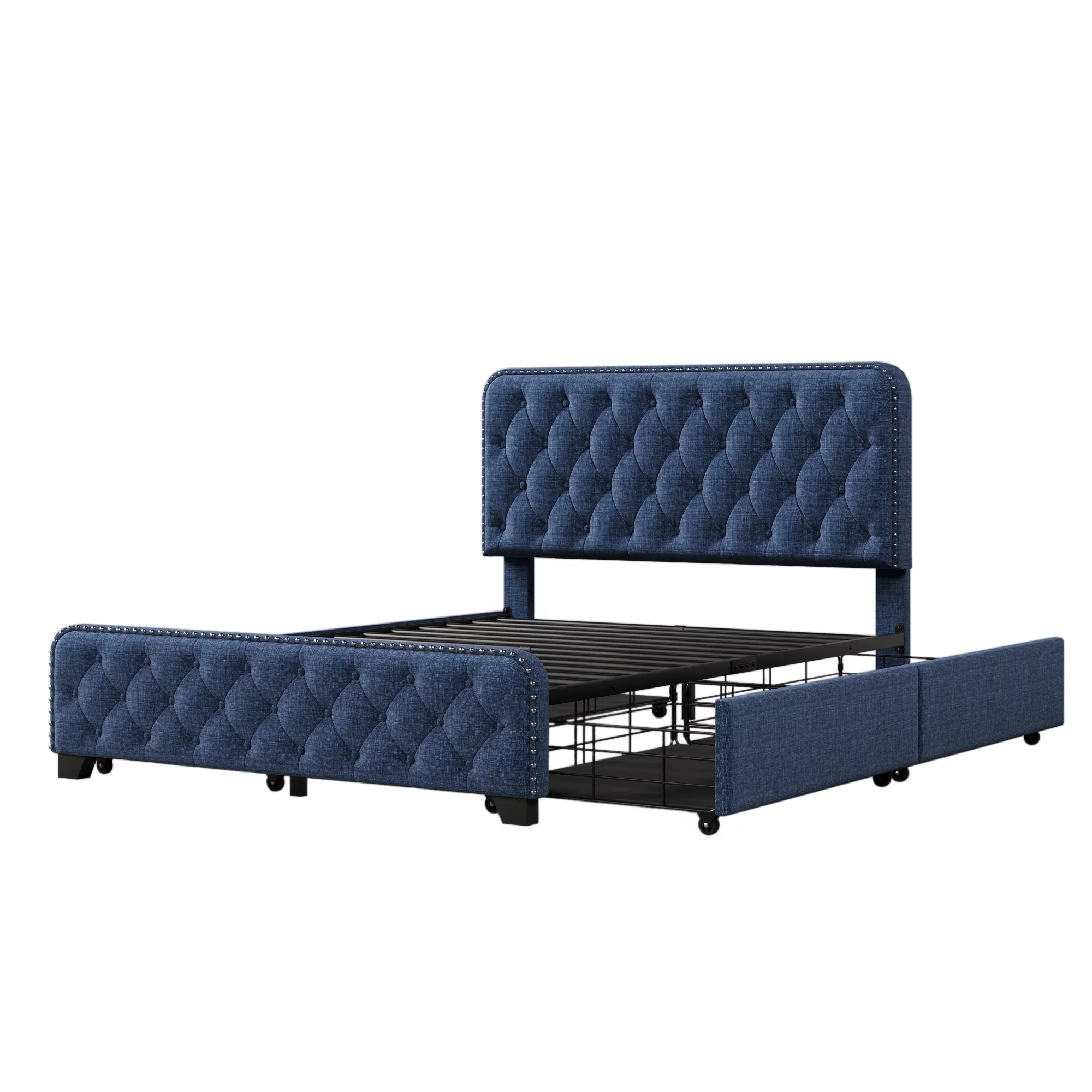 Metallic Full Size Bed with Double Arched Headboard & Footboard, Dark Bronze