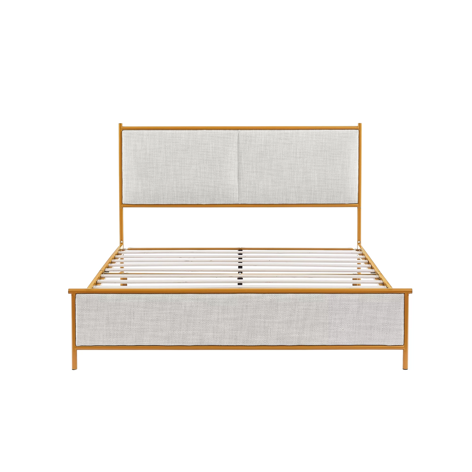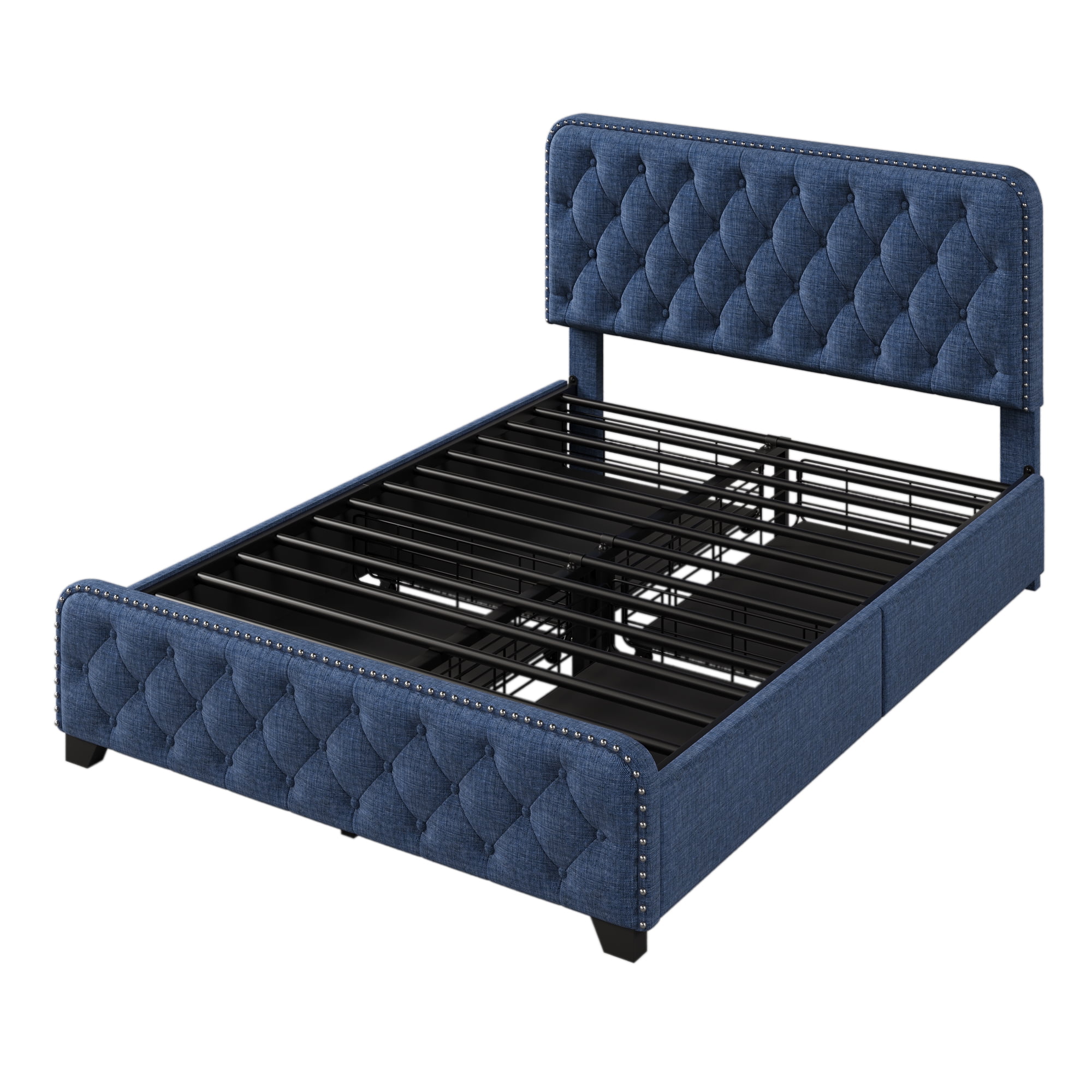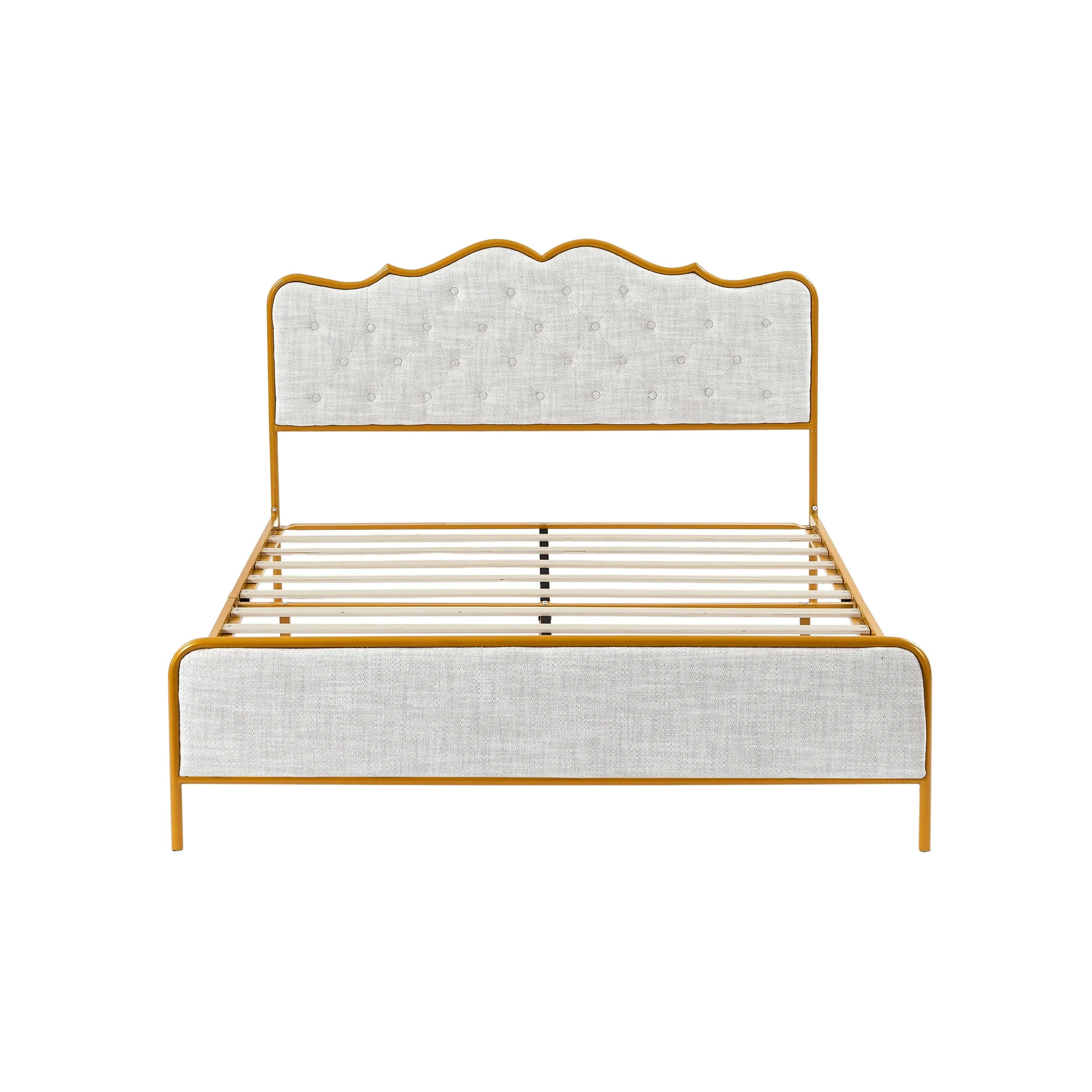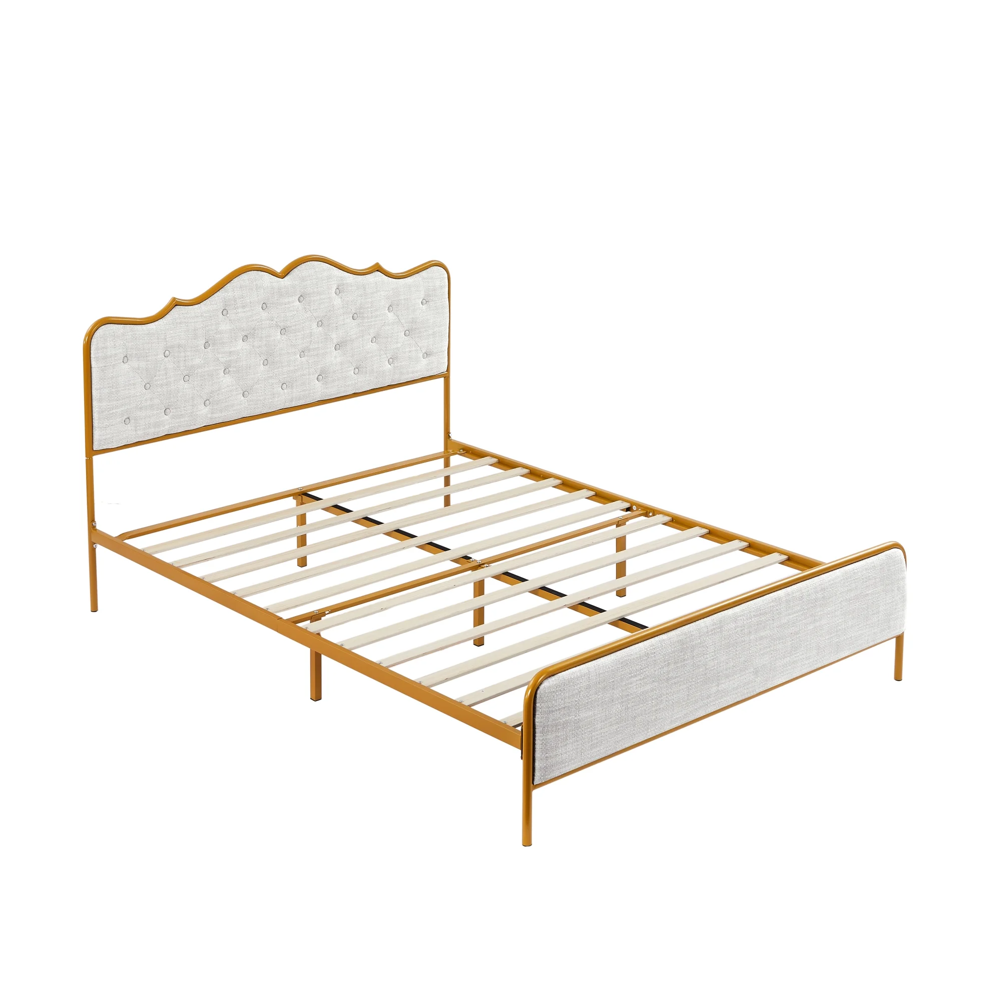 Full Size Platform Bed, Metal and Wood Bed Frame with Headboard and Footboard , White