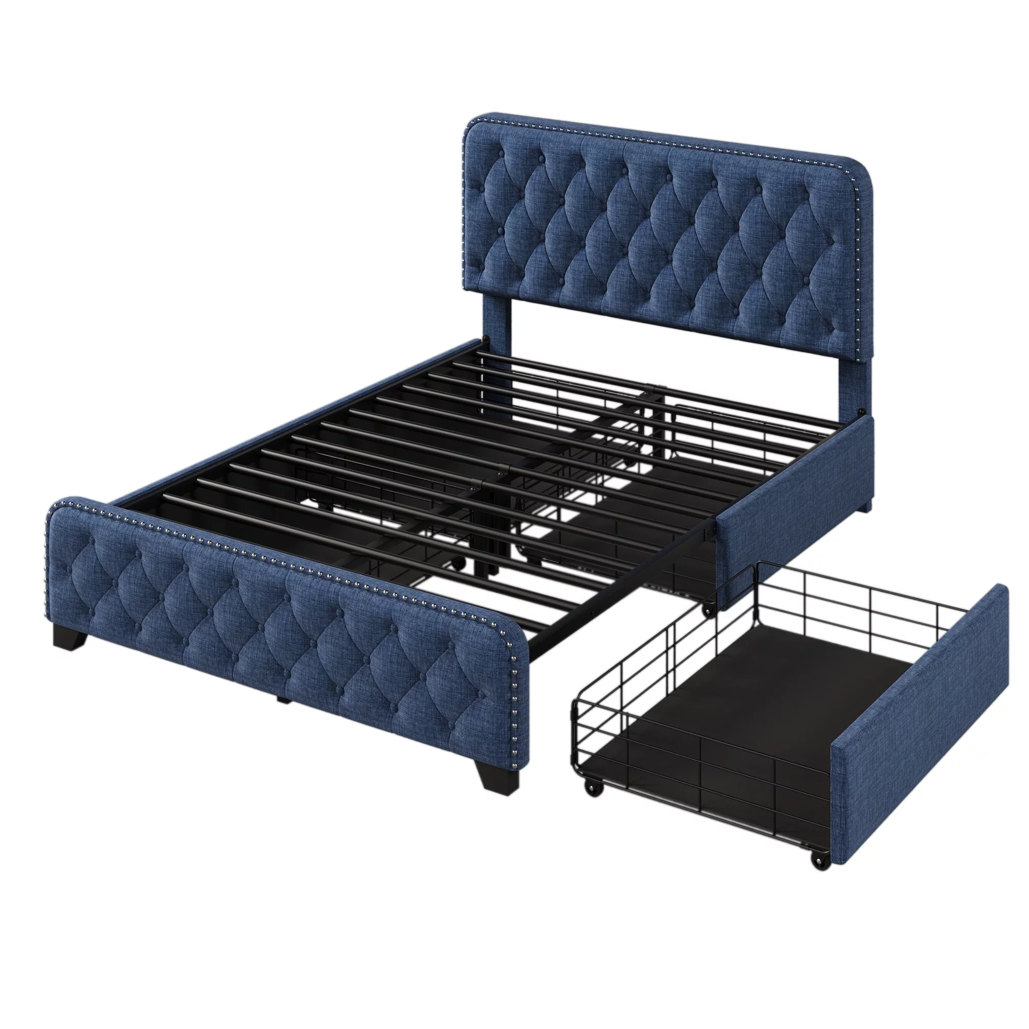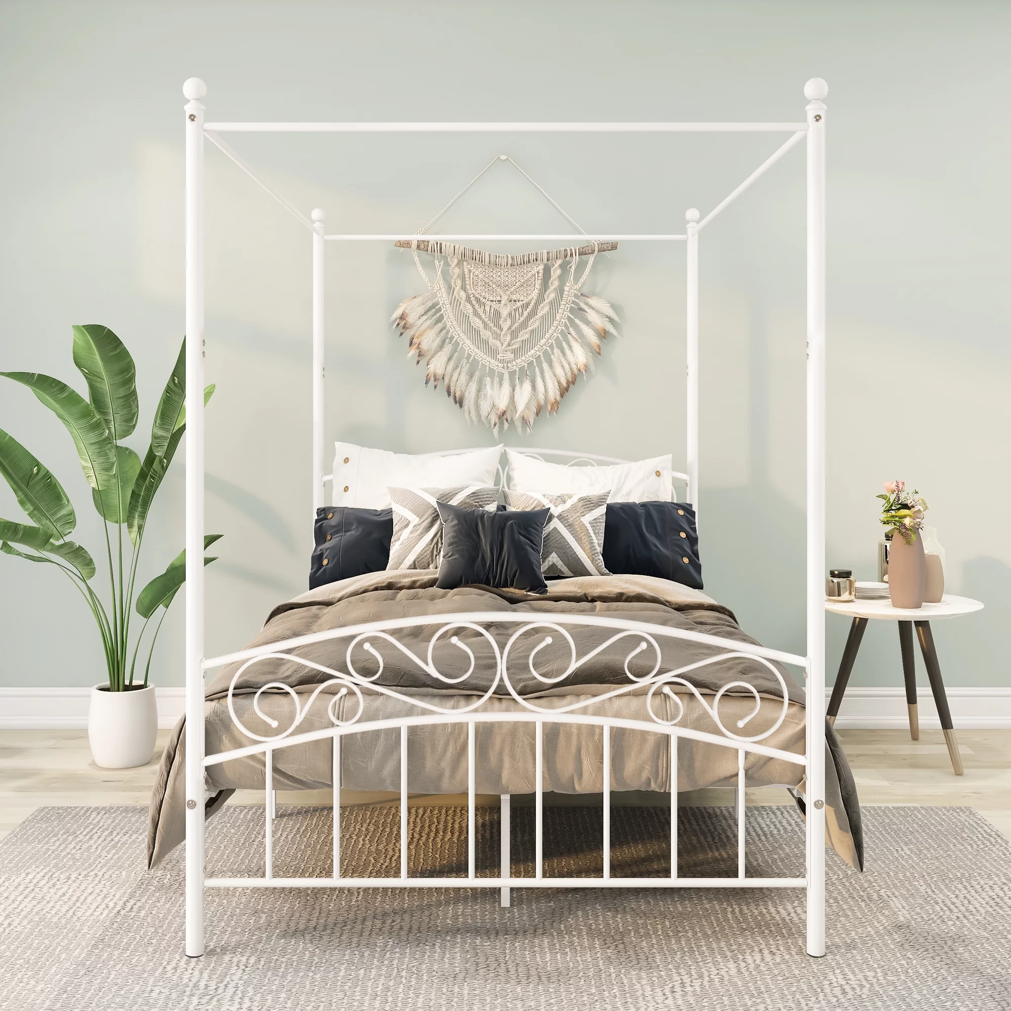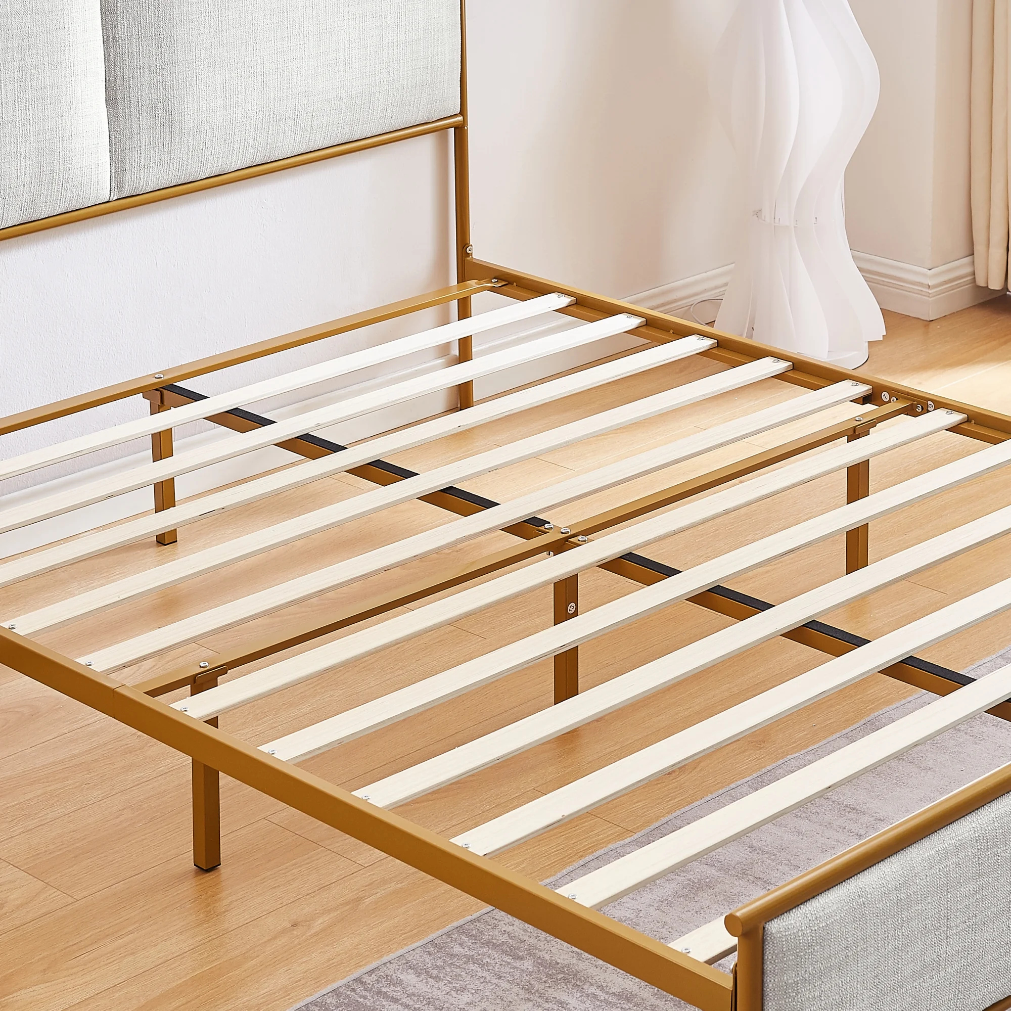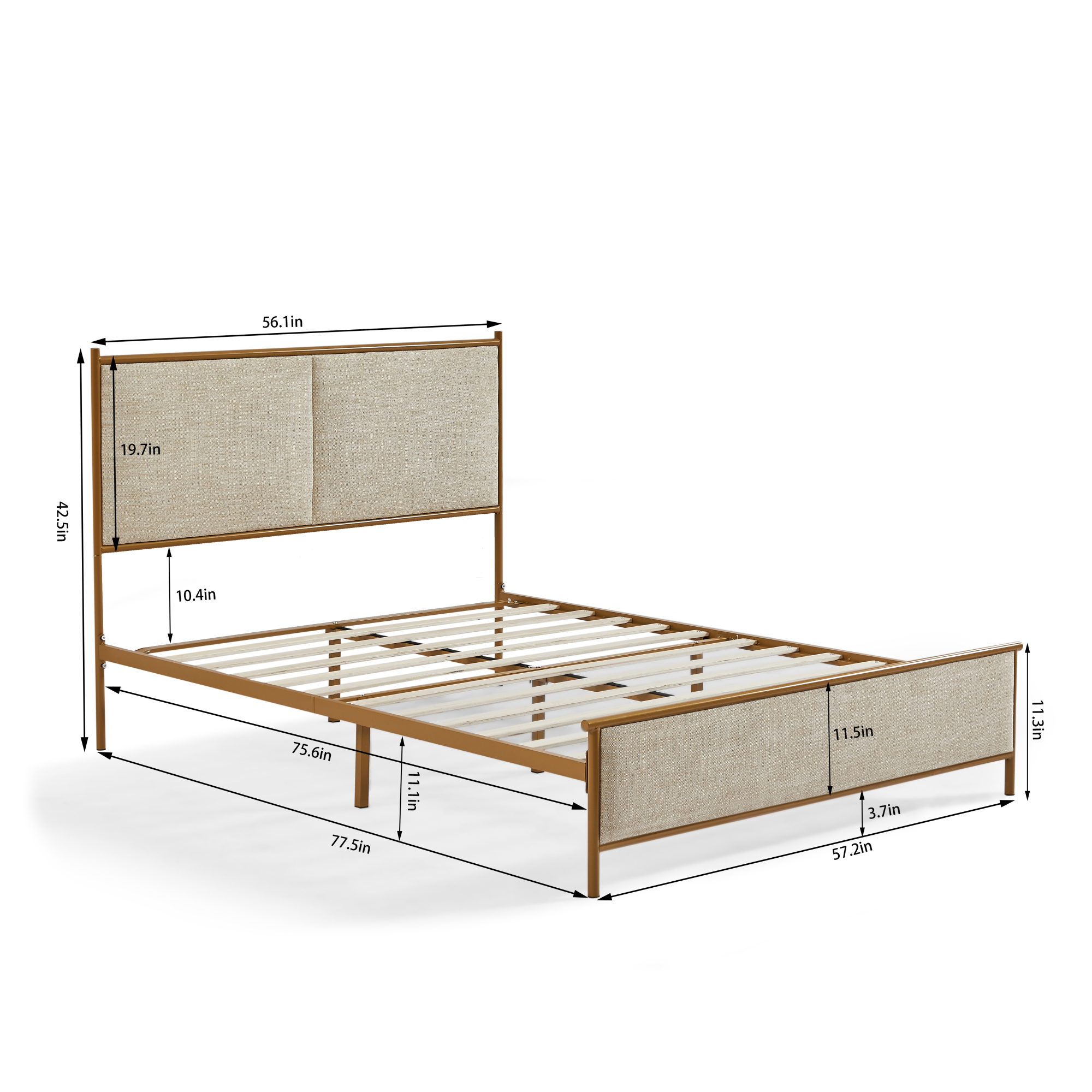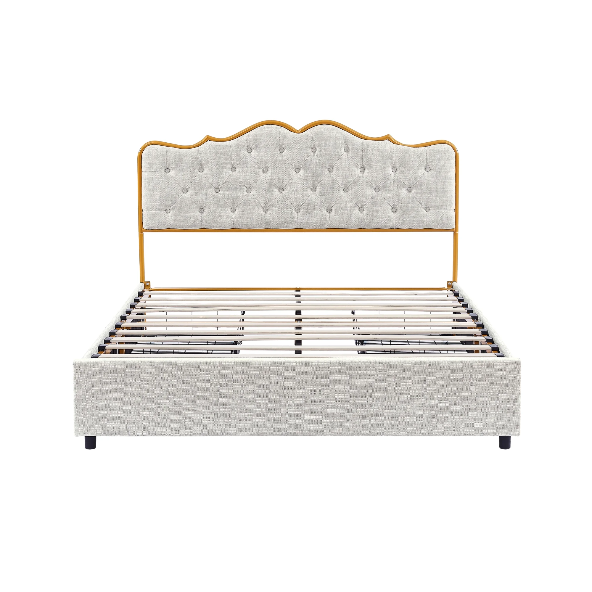 Full Size Platform Bed, Metal and Wood Bed Frame with Headboard and Footboard , White