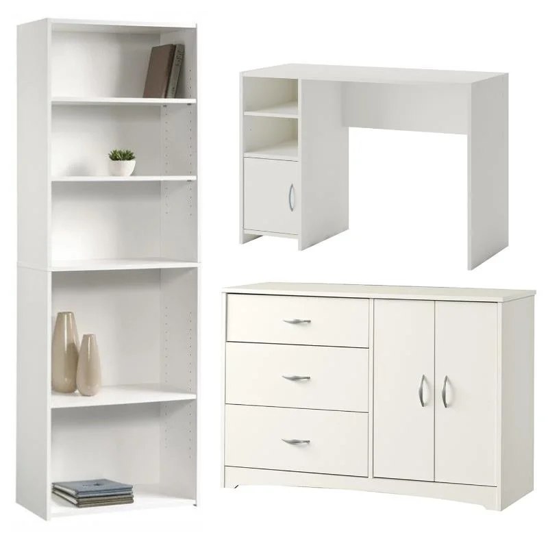 Home Square 3 Piece Set with Computer Desk Bookcase and Bedroom Dresser