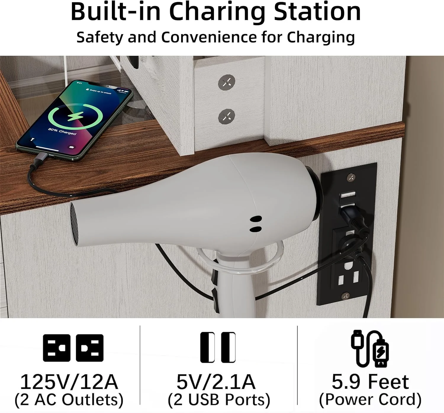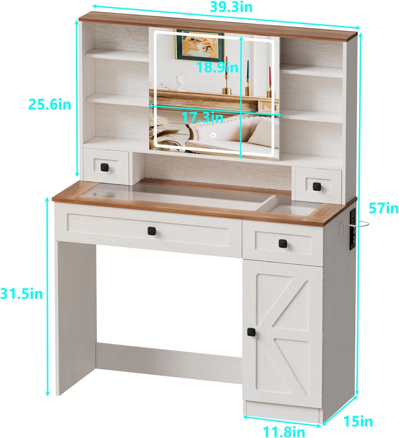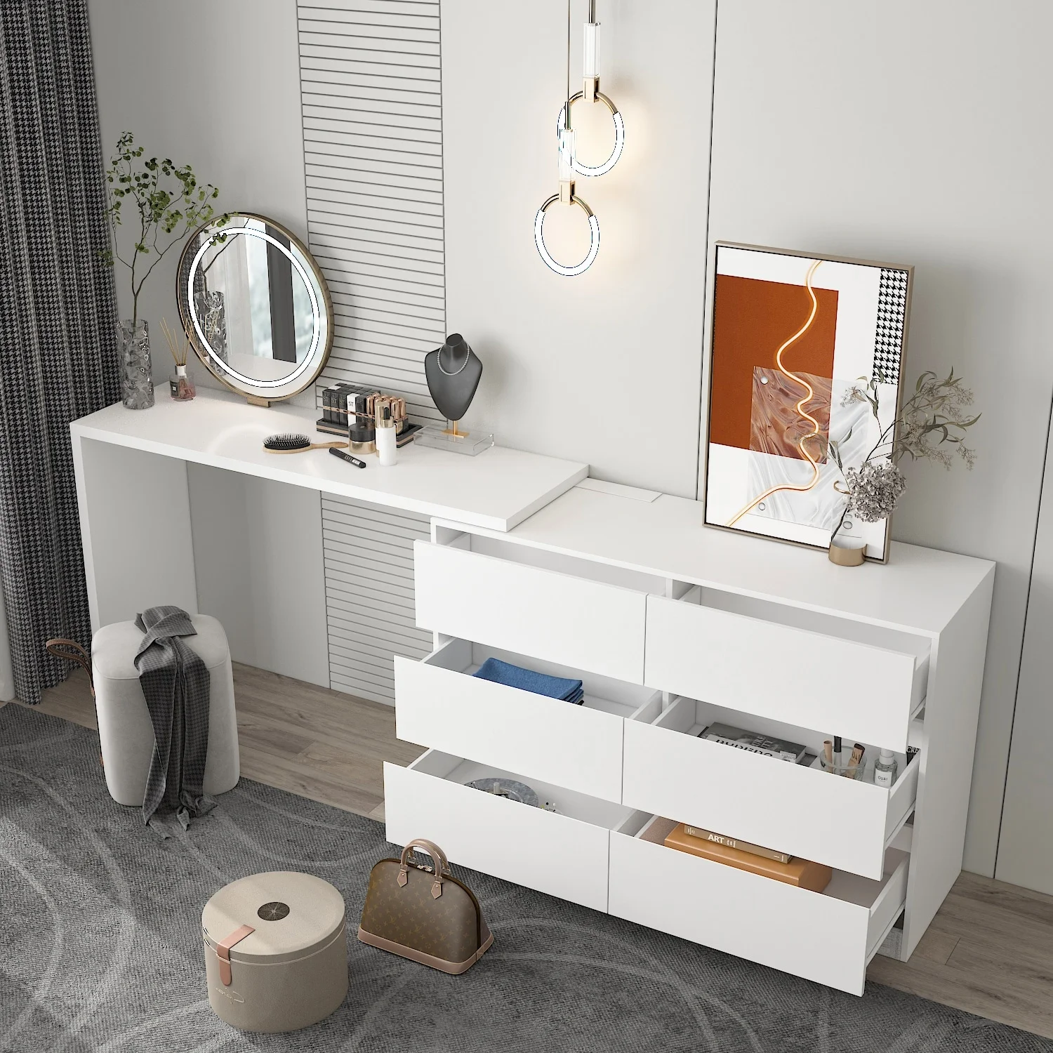 Timechee Home Rotating Dresser and Desk 6 Drawer Dresser Vanity Makeup White