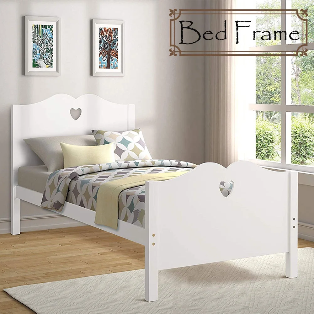 CRO Decor Bed Frame Twin Platform Bed with and Headboard and Footboard (White)