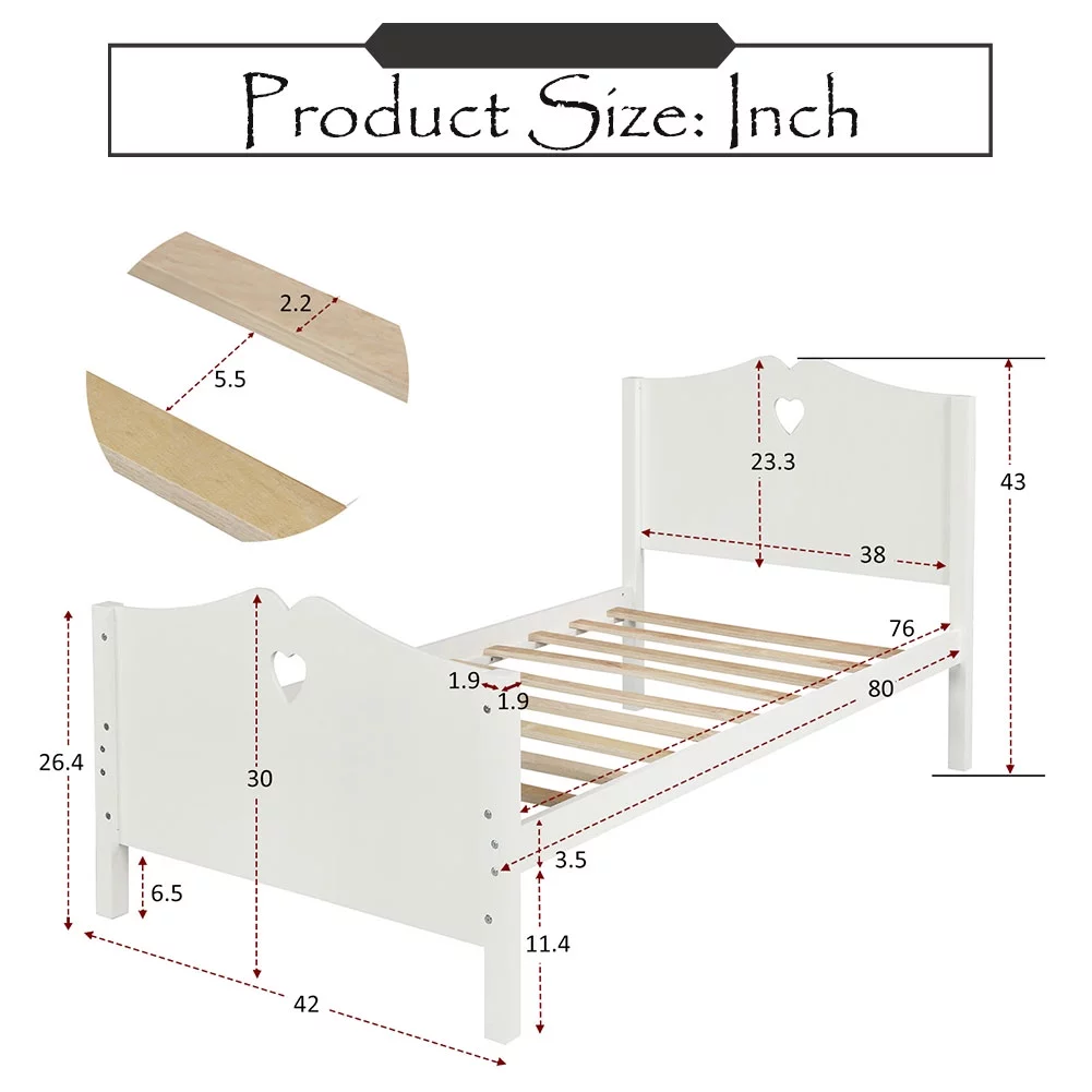 Topcobe Wood Platform Bed Frame for Kids, with Headboard and Wood Slat Support, Twin Size, White