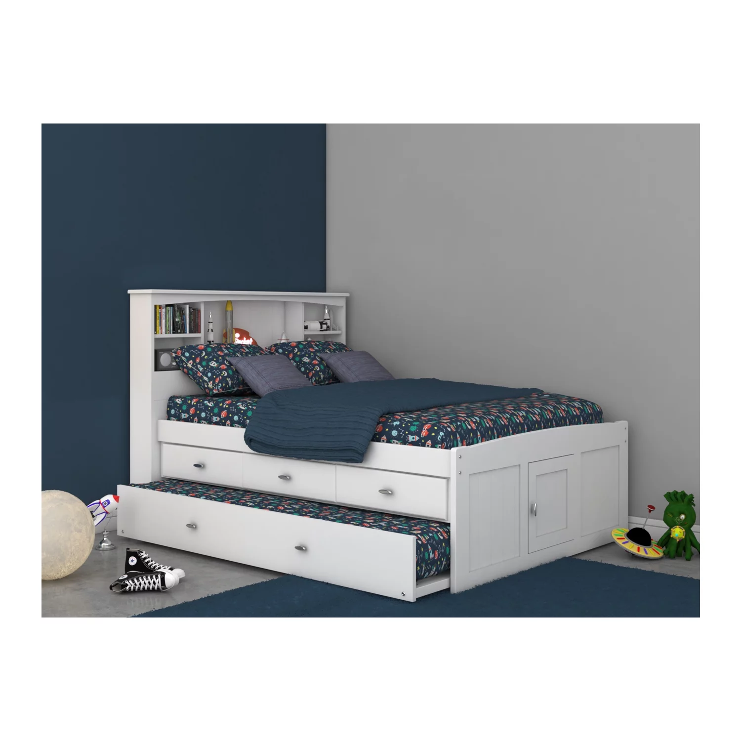 OS Home and Office Furniture 80221K3-22 Solid Pine Bookcase Bed in Casual White