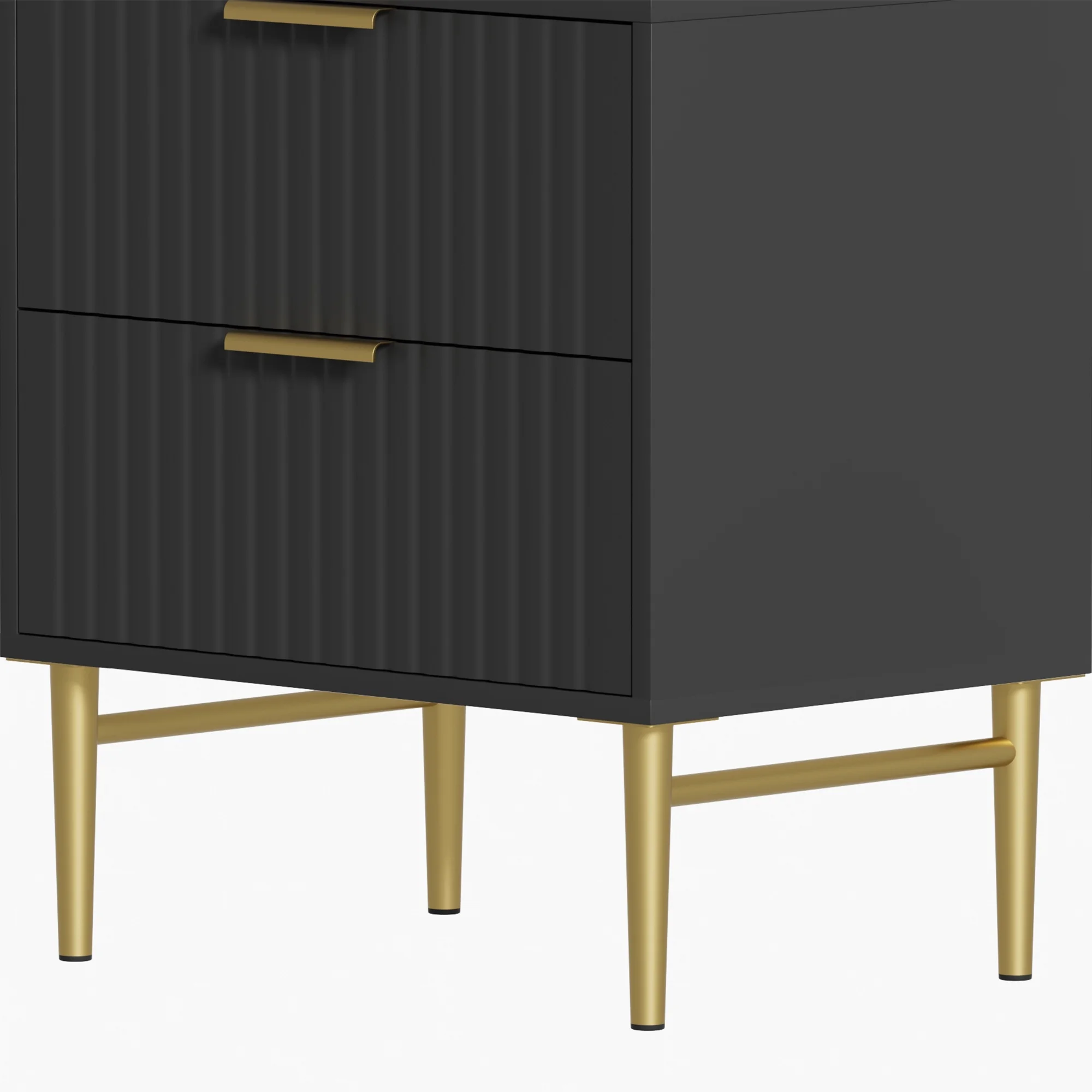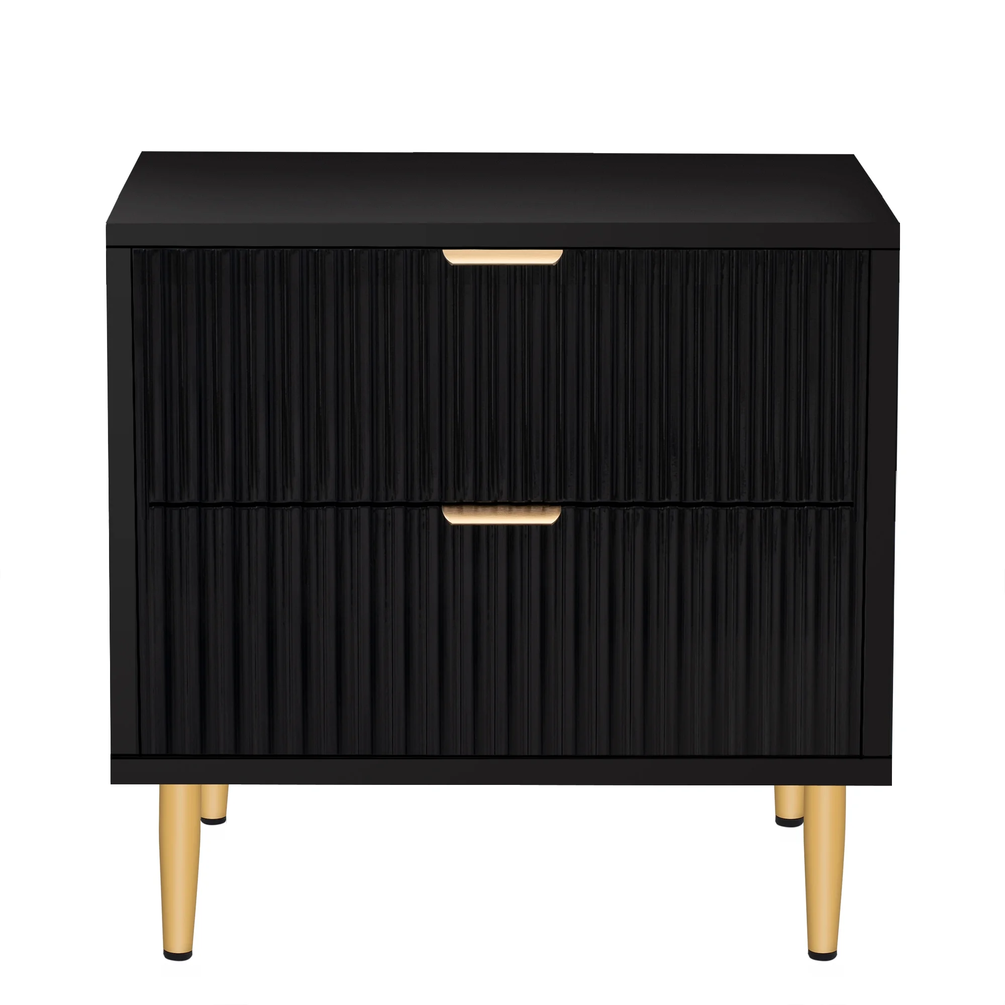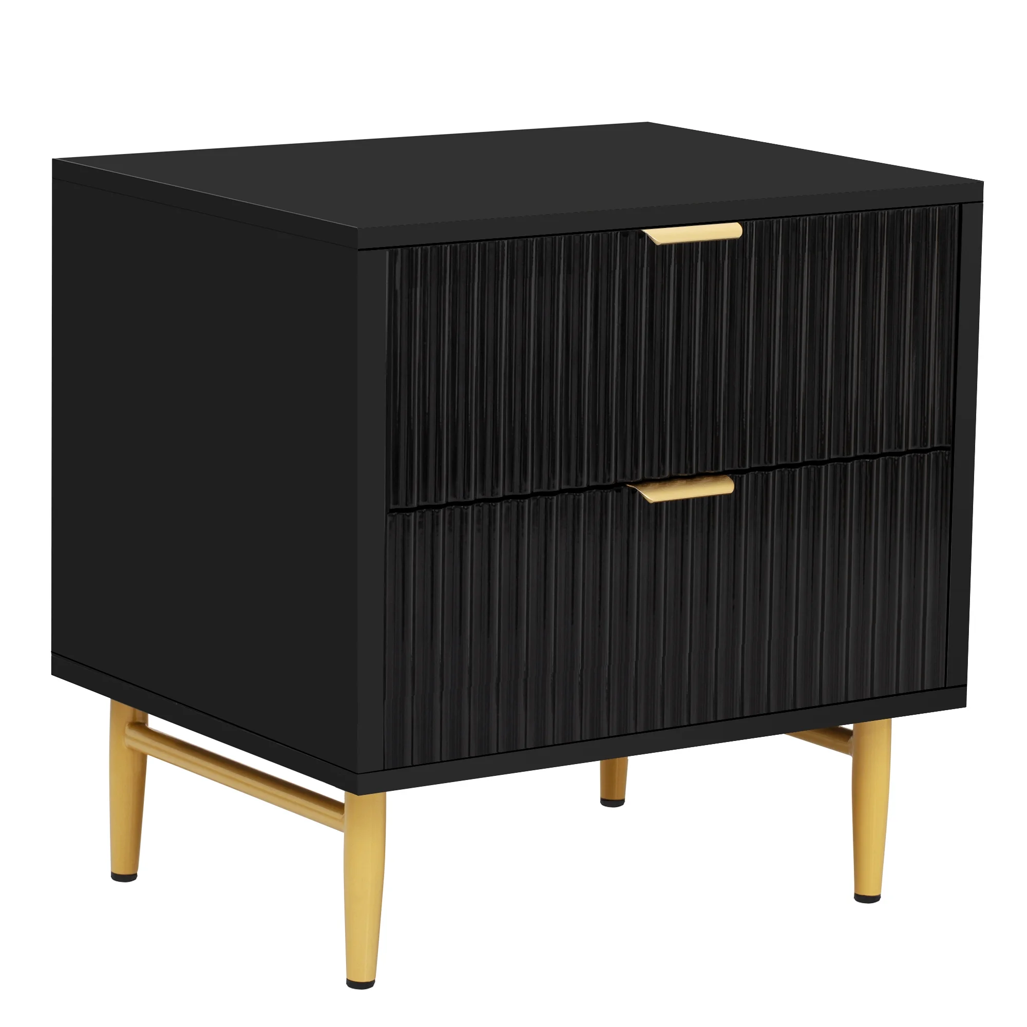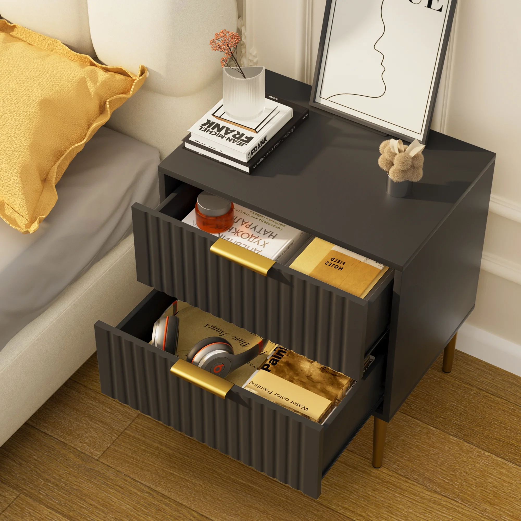 Glavbiku Modern Wood 2 Drawers Nightstand,Vintage Bedside Table for Bedroom,Black,Adult,23.5" H