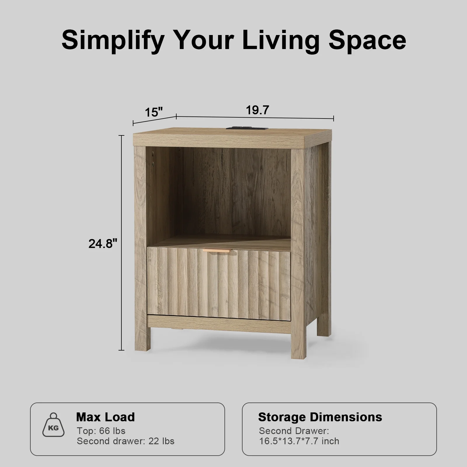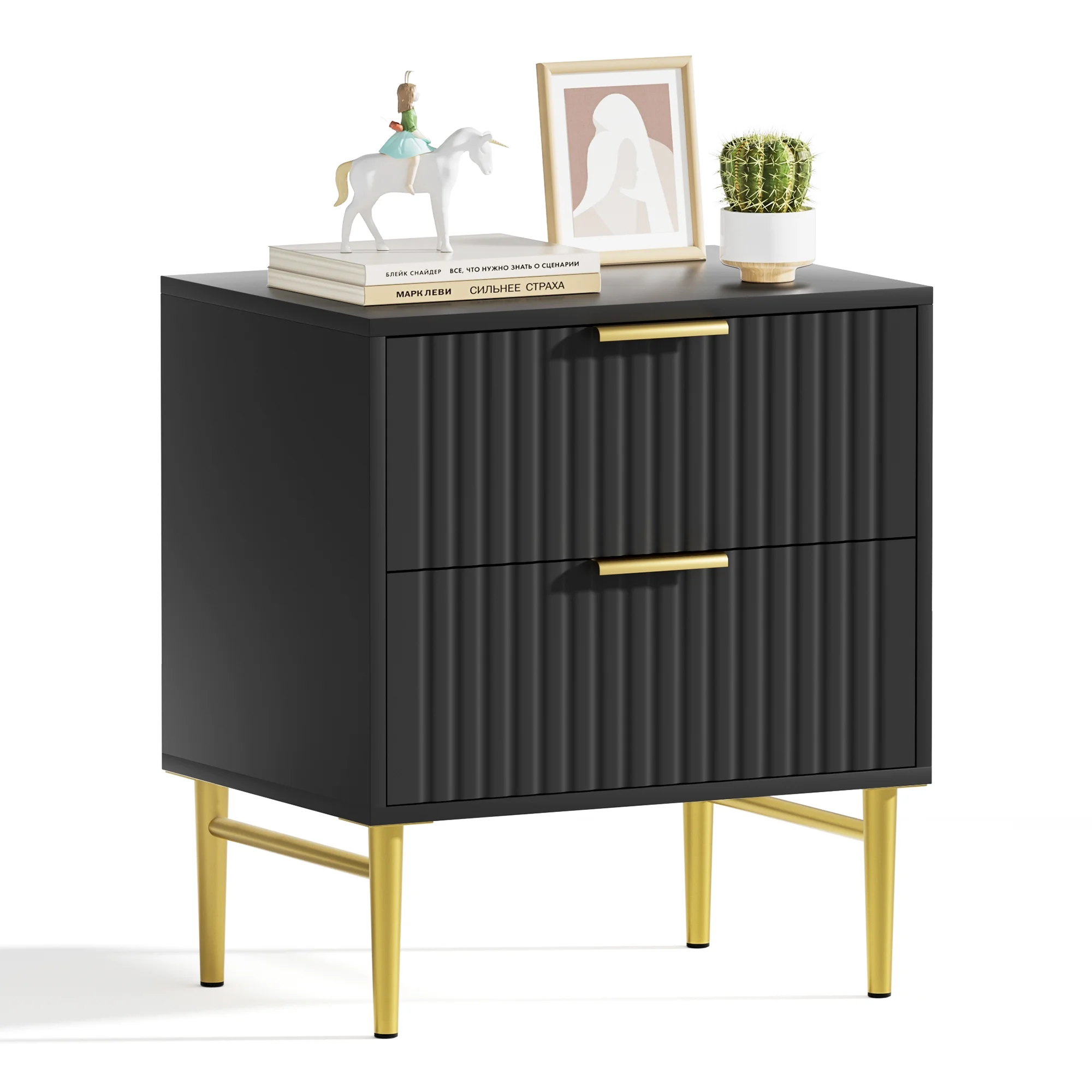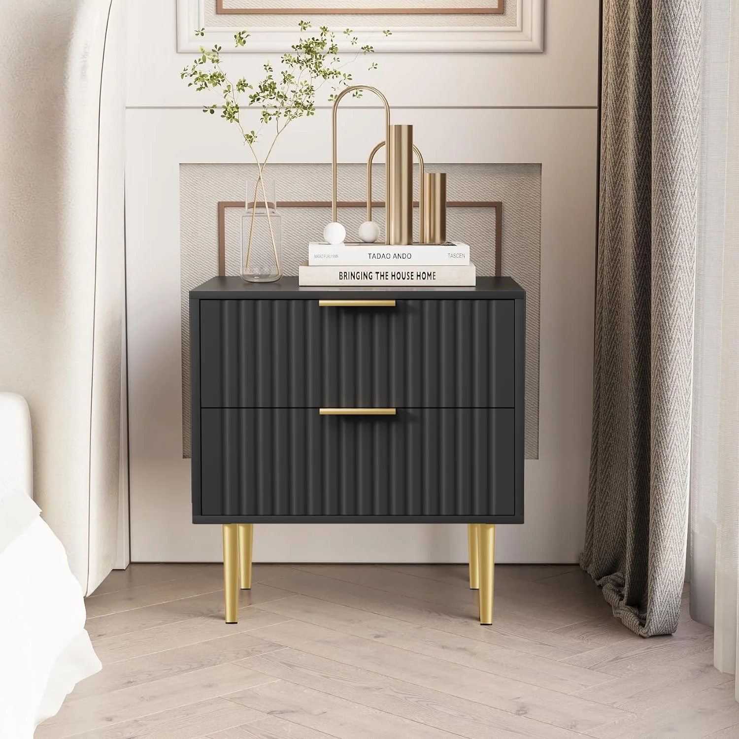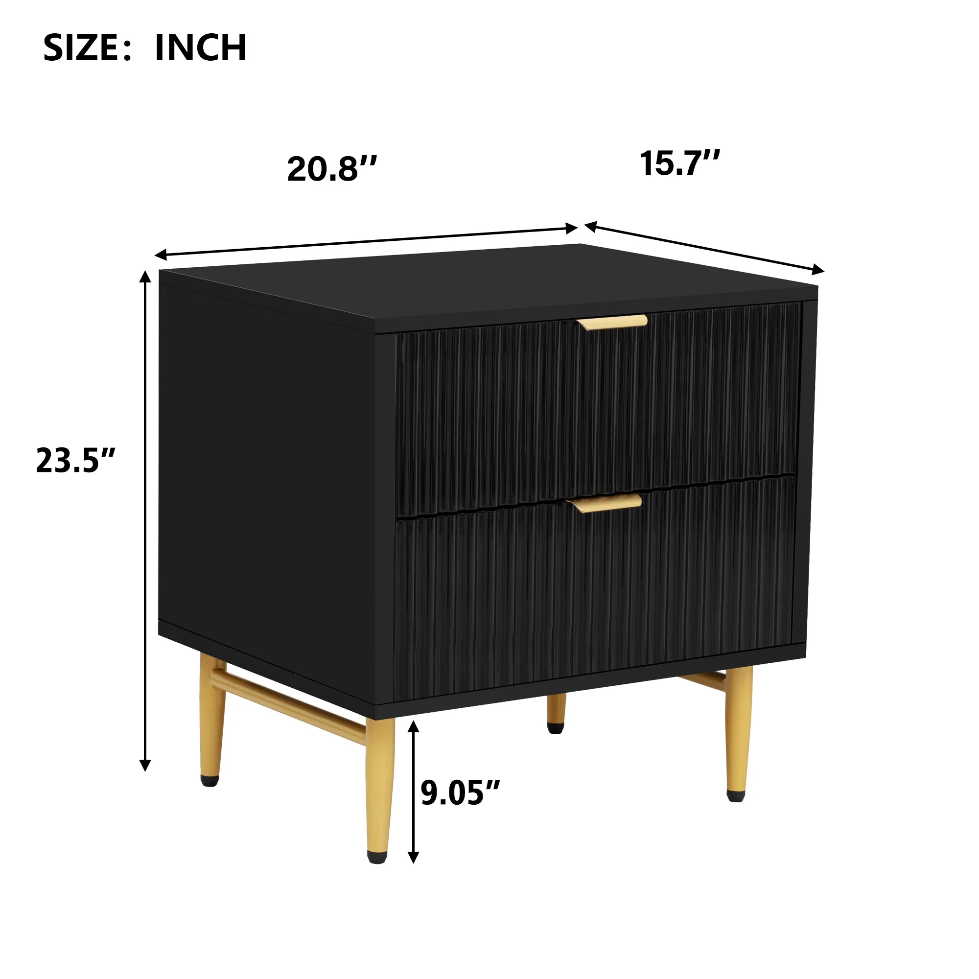 Glavbiku Modern Wood 2 Drawers Nightstand,Vintage Bedside Table for Bedroom,Black,Adult,23.5" H