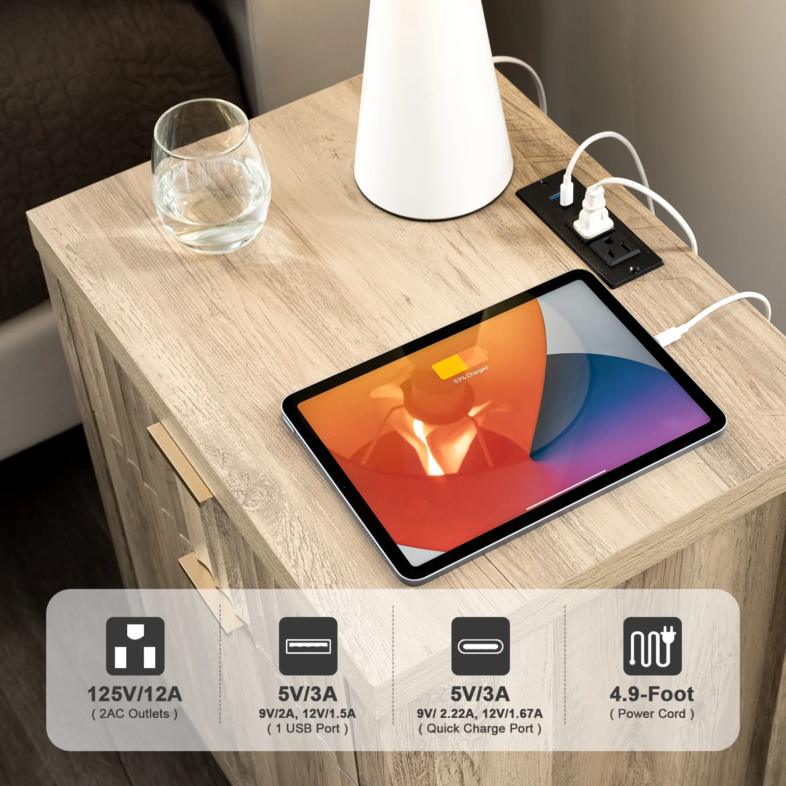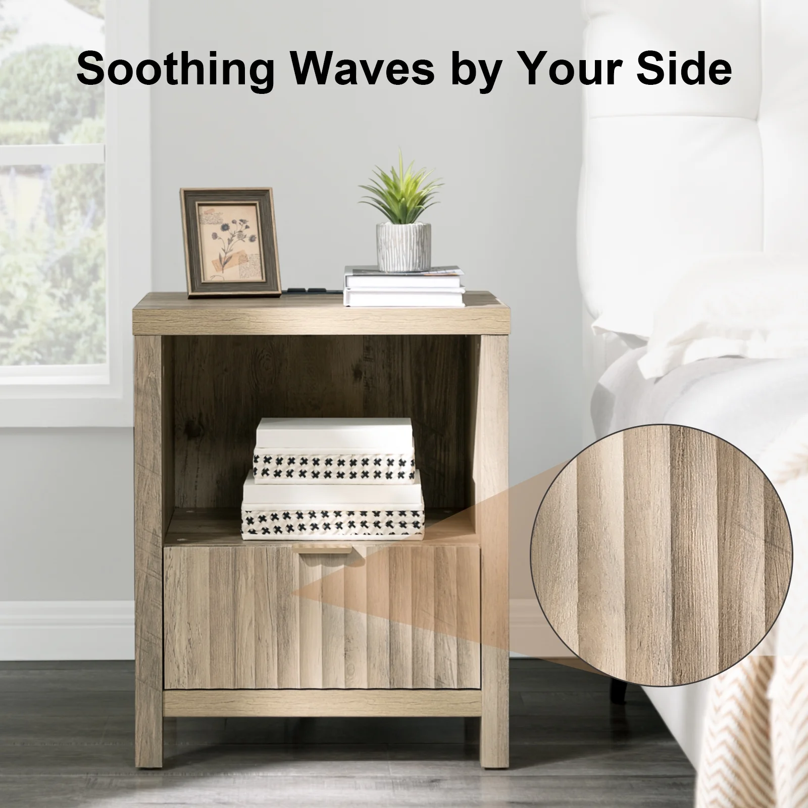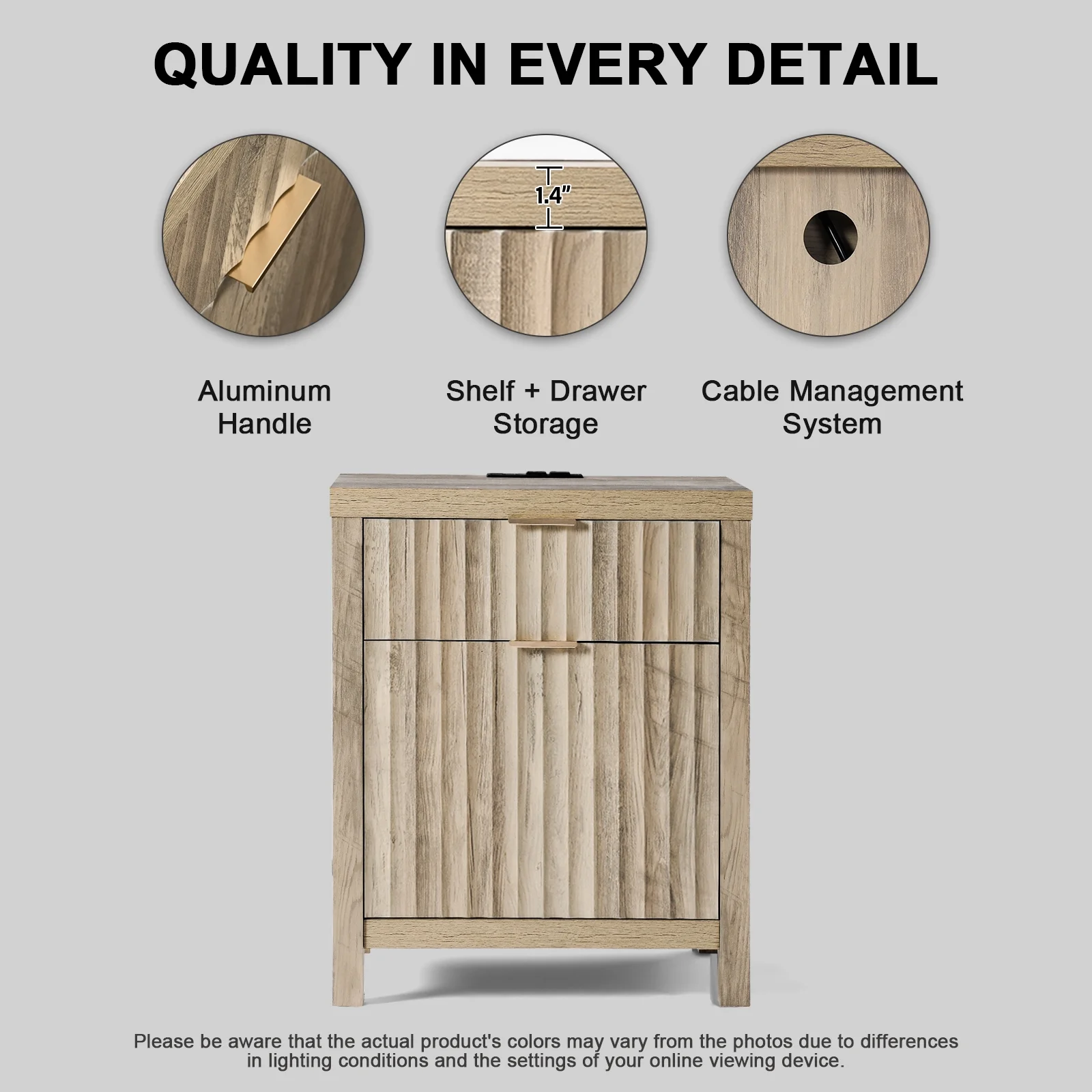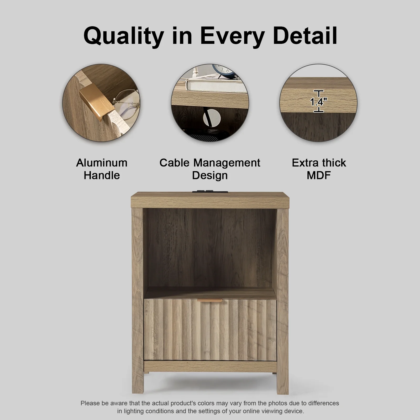 Glavbiku Modern Wood 2 Drawers Nightstand,Vintage Bedside Table for Bedroom,Black,Adult,23.5" H