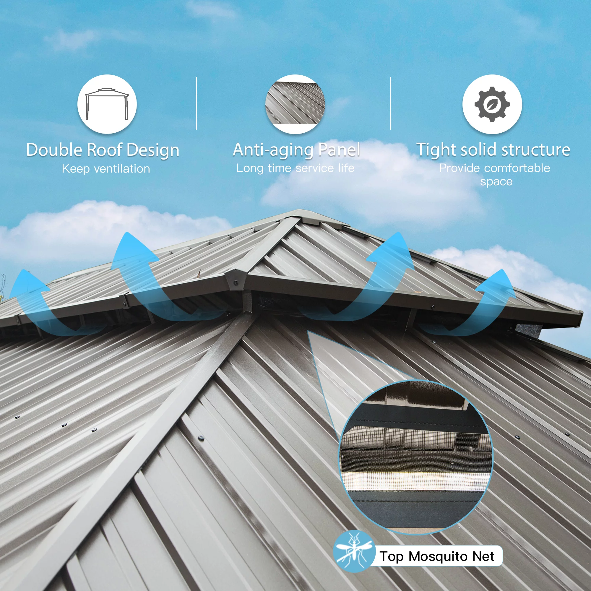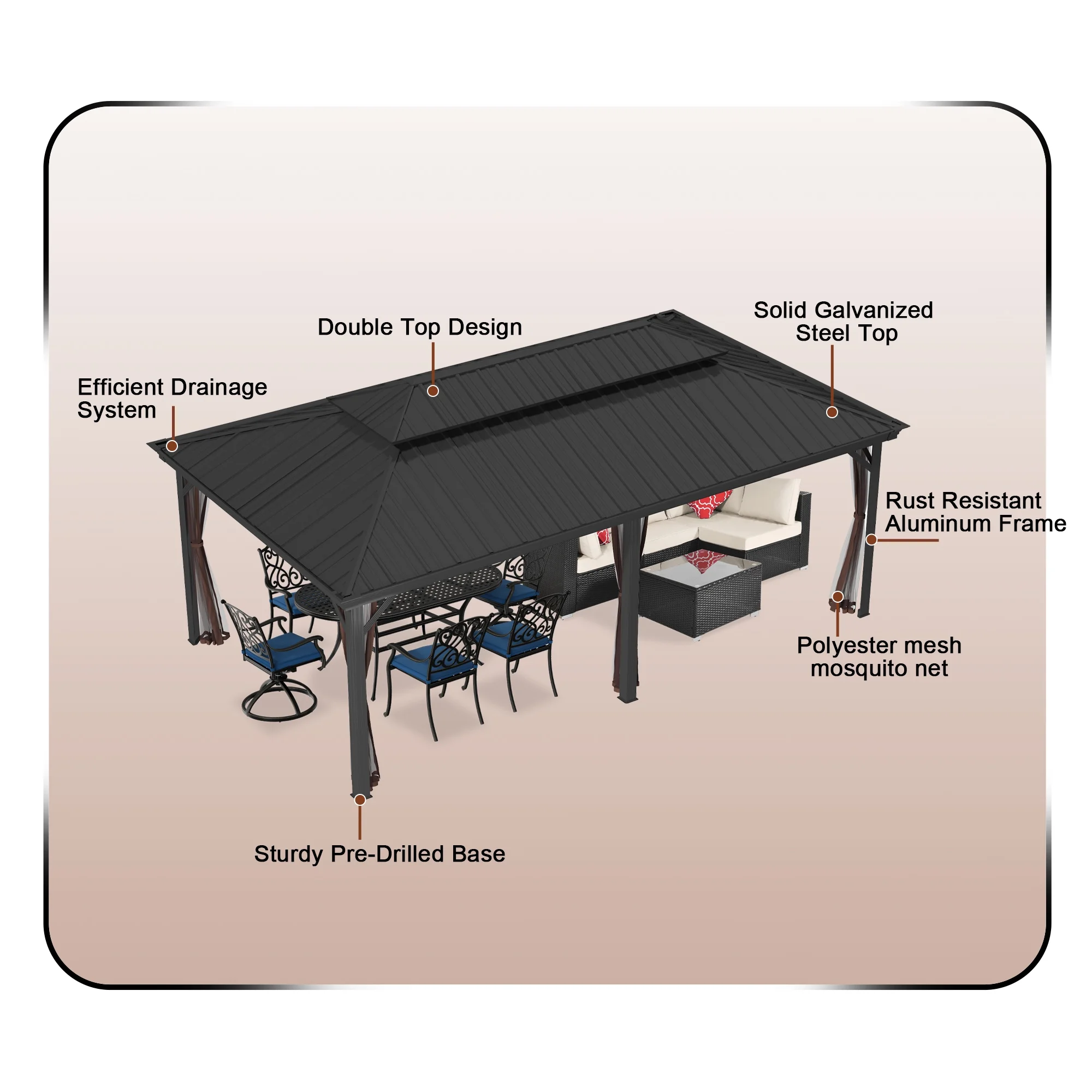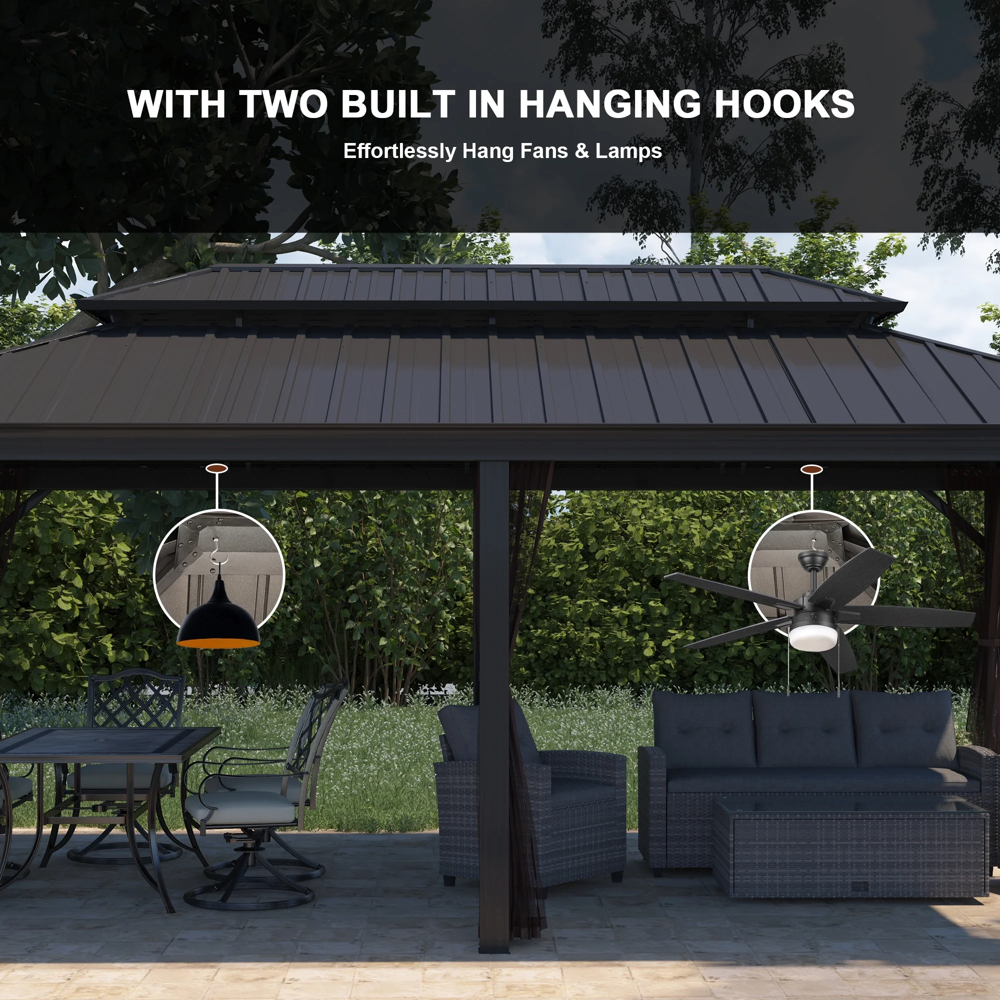 Mondawe 12x20Ft Hardtop Gazebo with Nettings Heavy Duty Pavilion with Iron Double Roof Aluminum Frame for Patio Backyard Deck Lawns