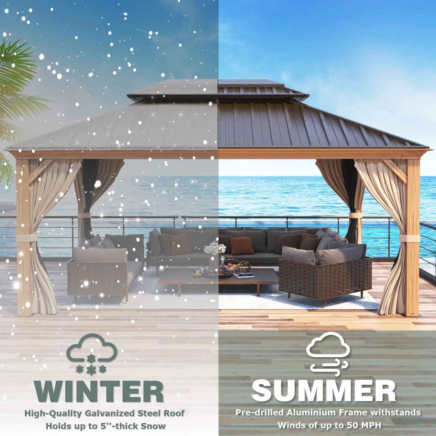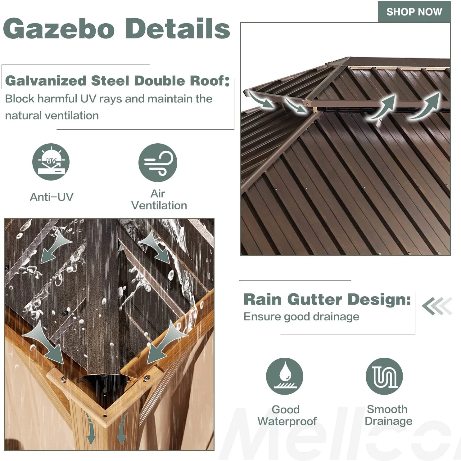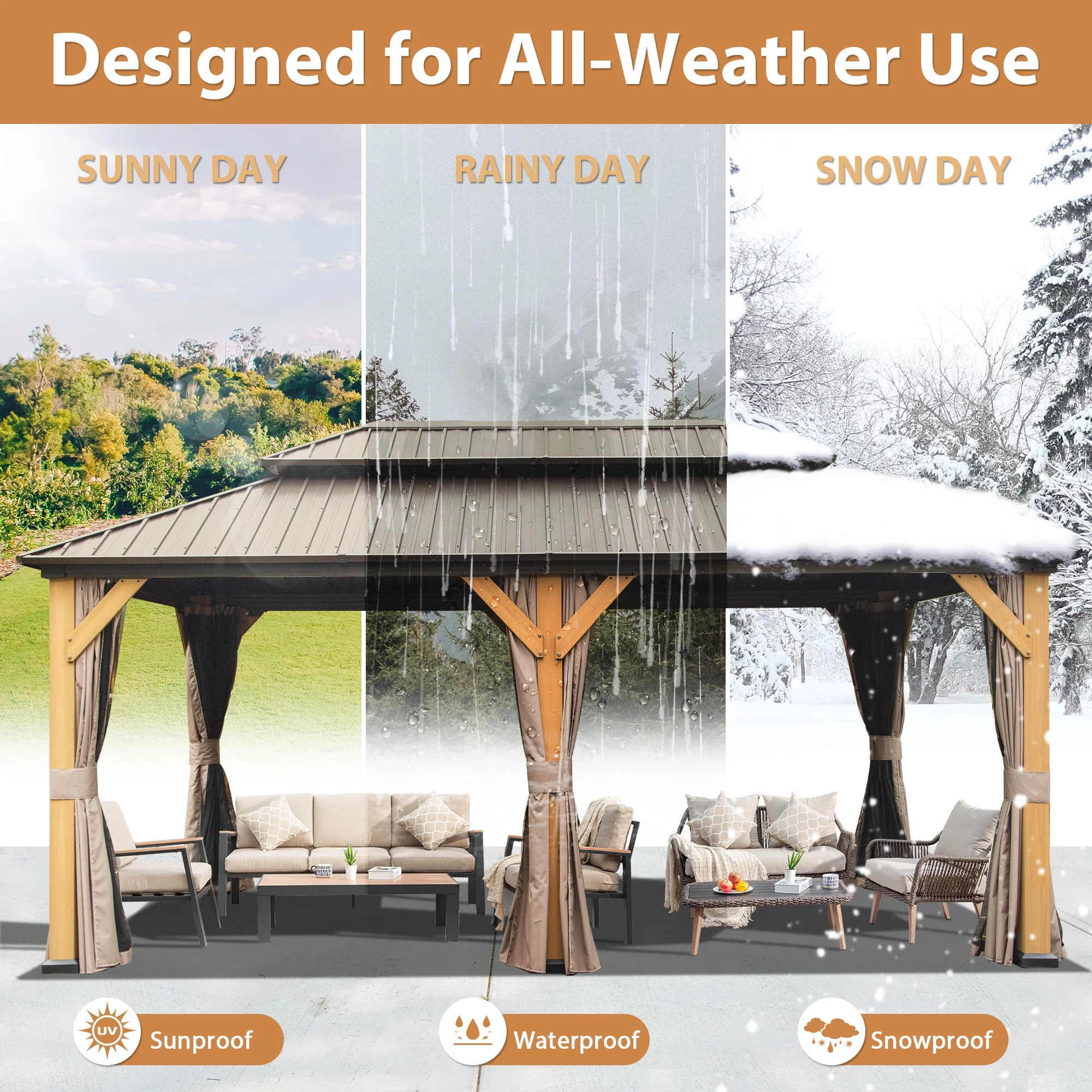 Mondawe 12x20Ft Hardtop Gazebo with Nettings Heavy Duty Pavilion with Iron Double Roof Aluminum Frame for Patio Backyard Deck Lawns