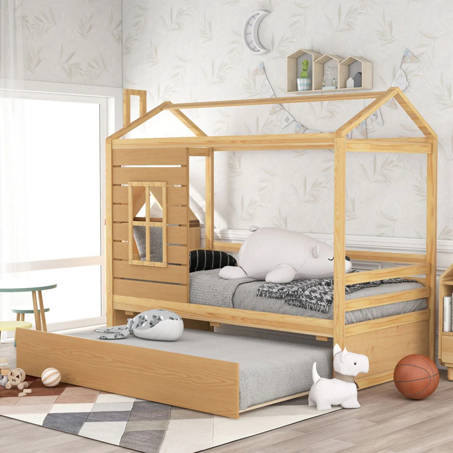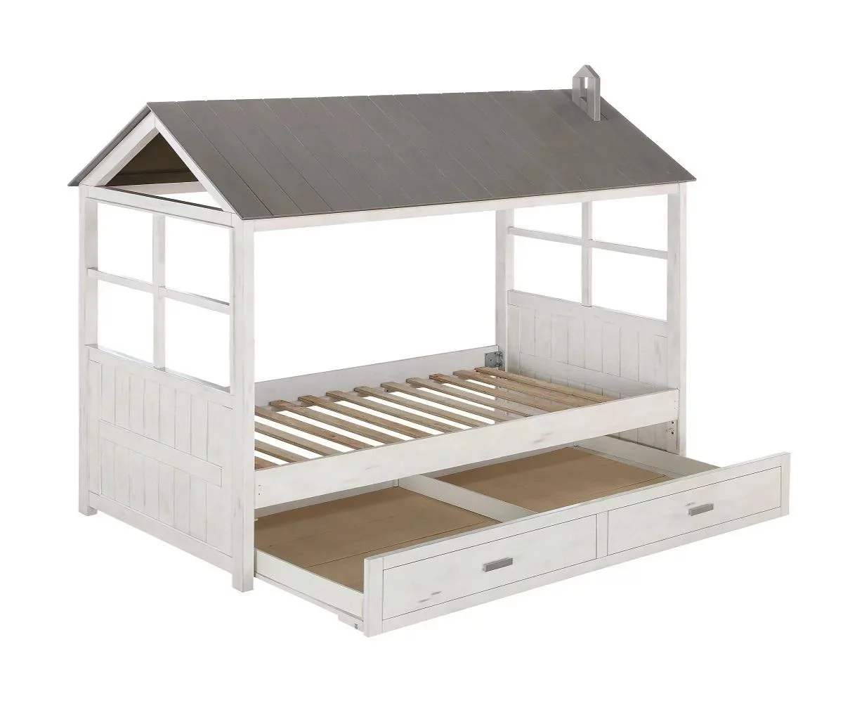White & Gray Twin Cottage Bed + Trundle by Acme Tree House II 37170T-2pcs