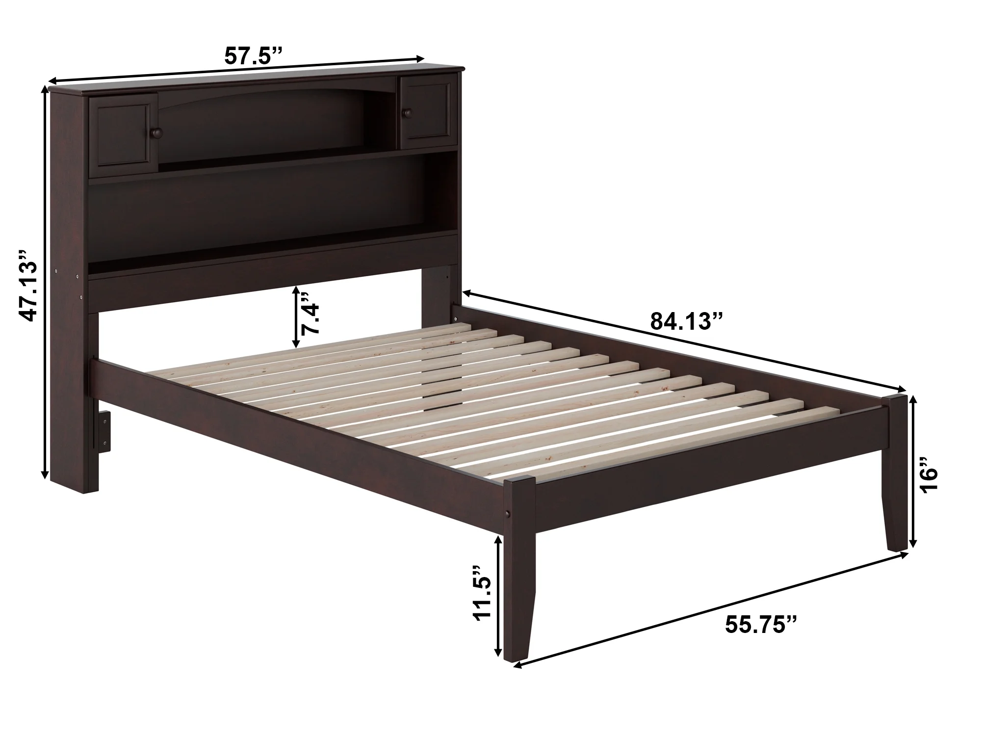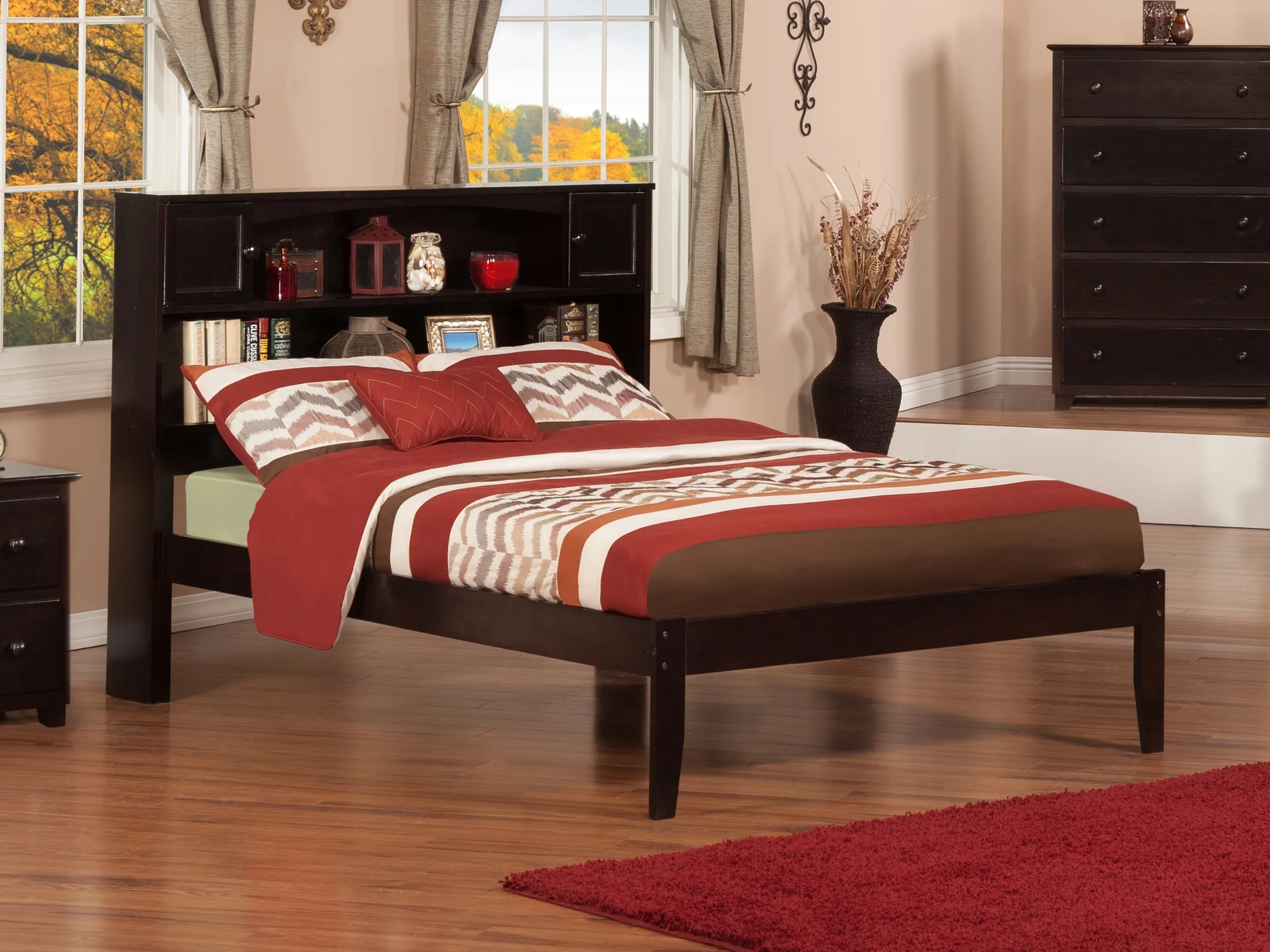 AFI Newport Full Solid Wood Platform Bed with Storage Headboard in Espresso
