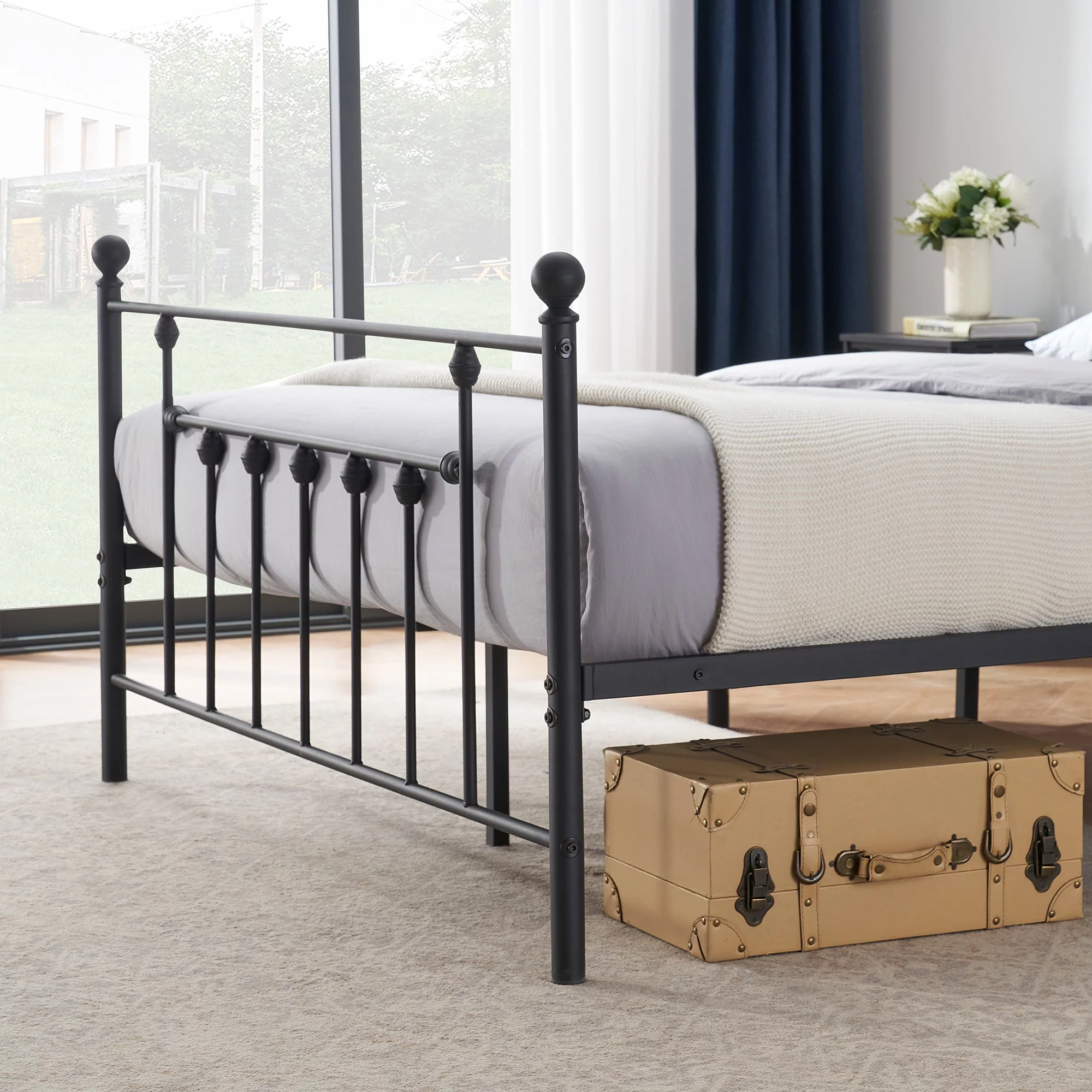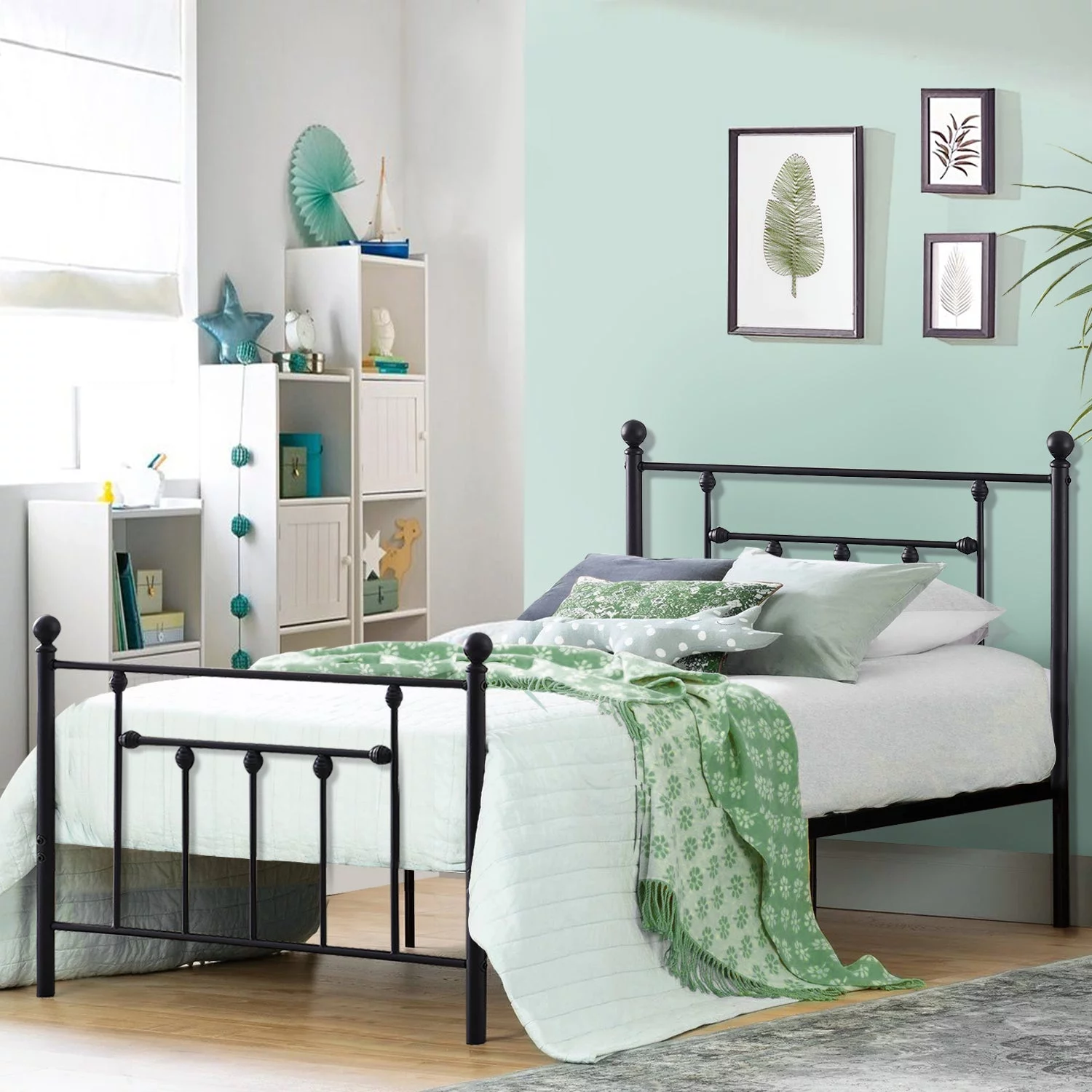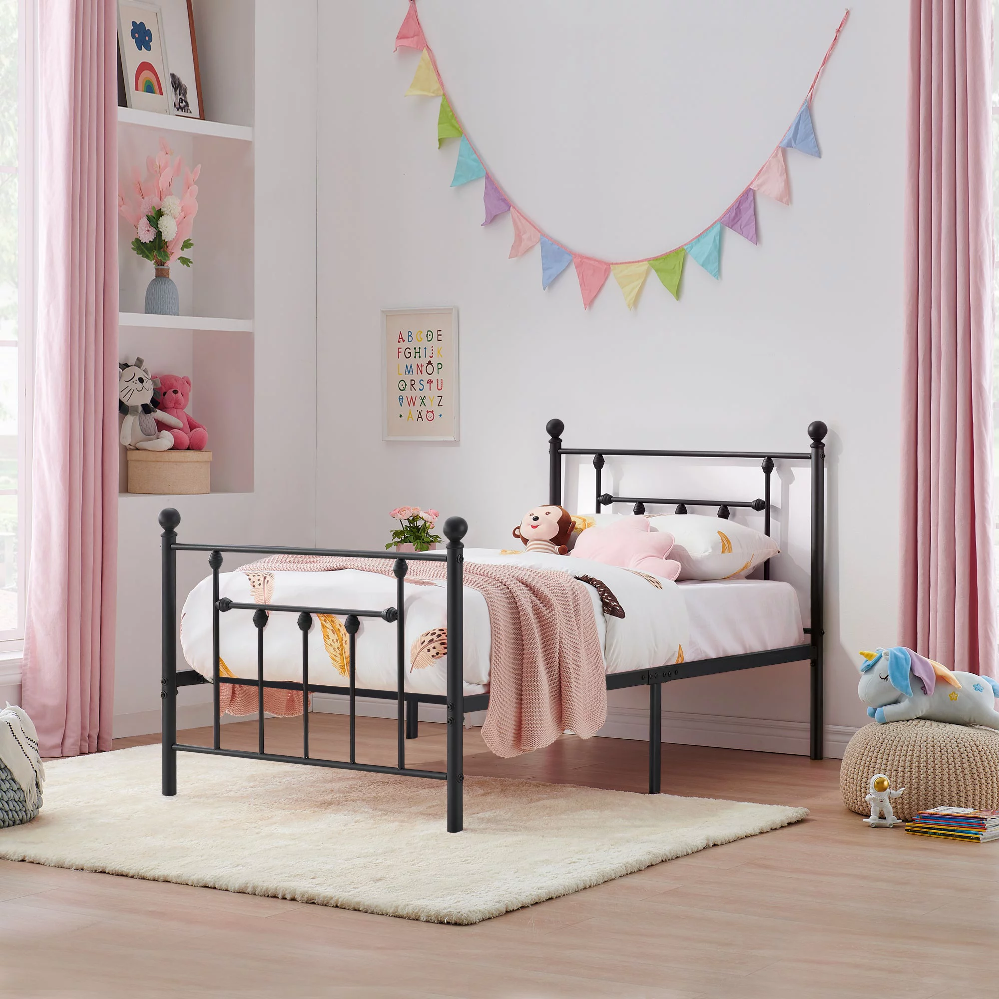 VECELO Twin Size Metal Platform Bed Frame for Kids with Headboard & Footboard, No Box Spring Needed, Black