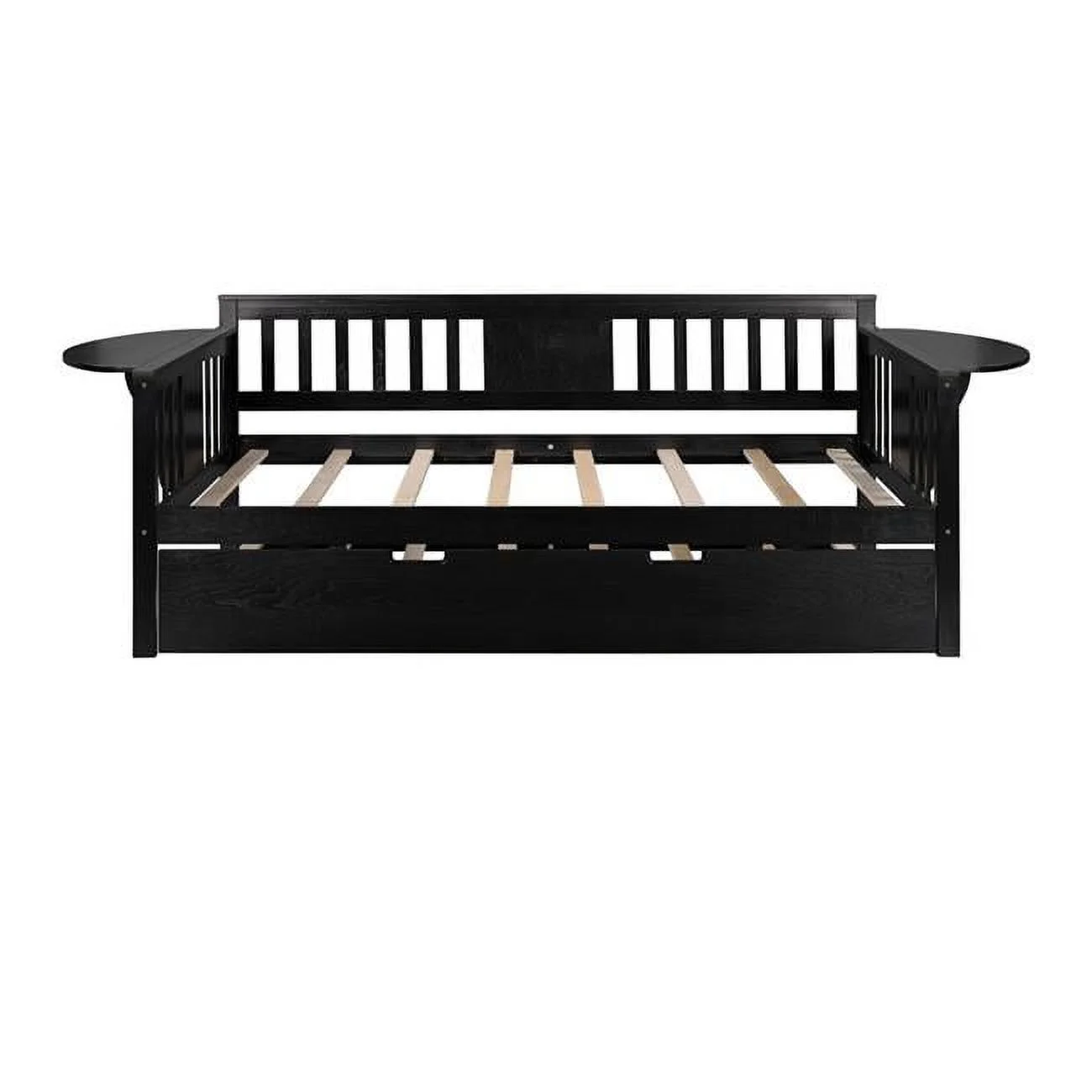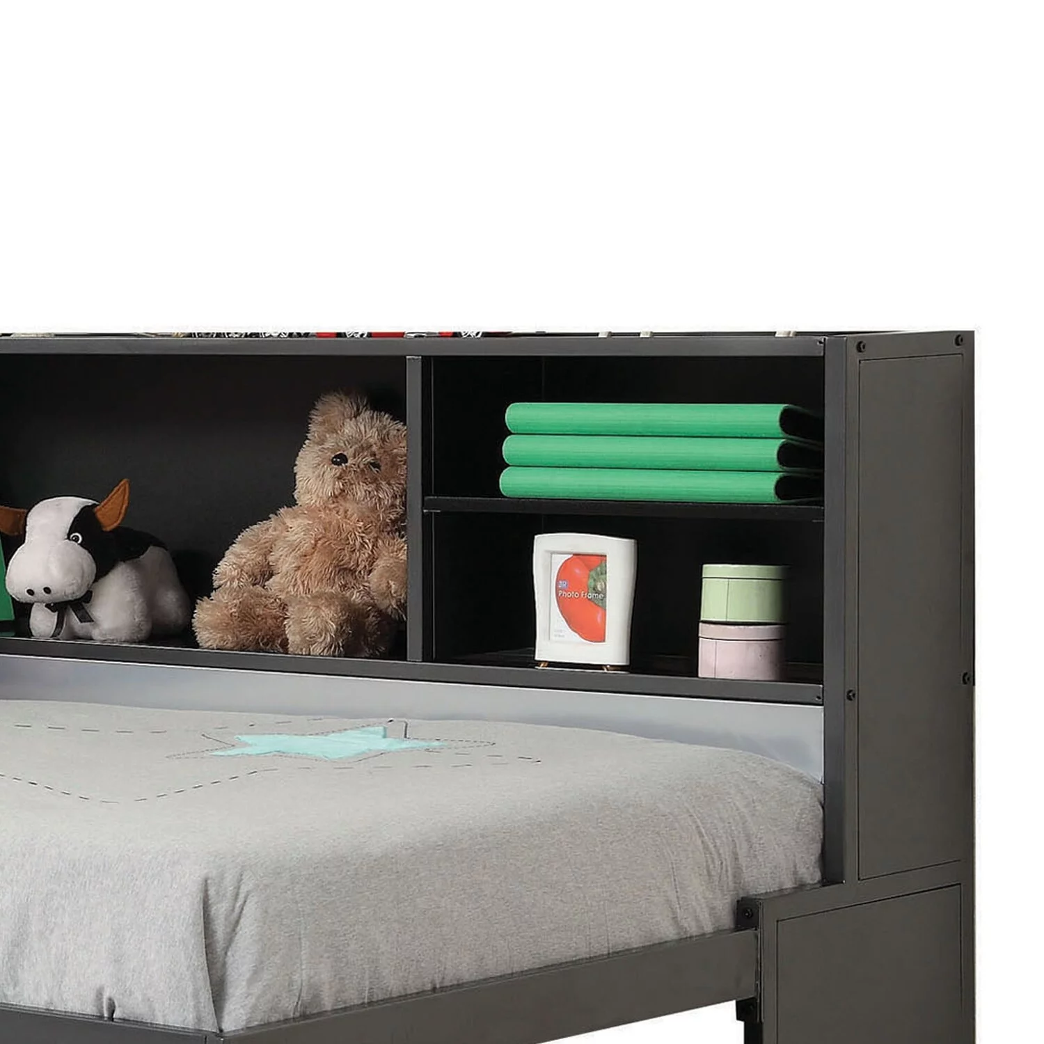 Benzara Metal Twin Bed with Bookcase and Rollout Trundle, Black and Silver