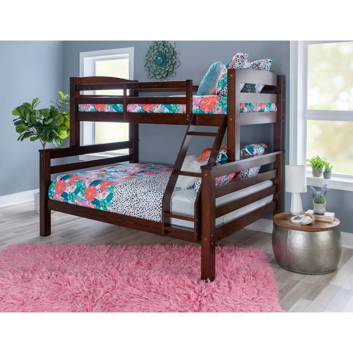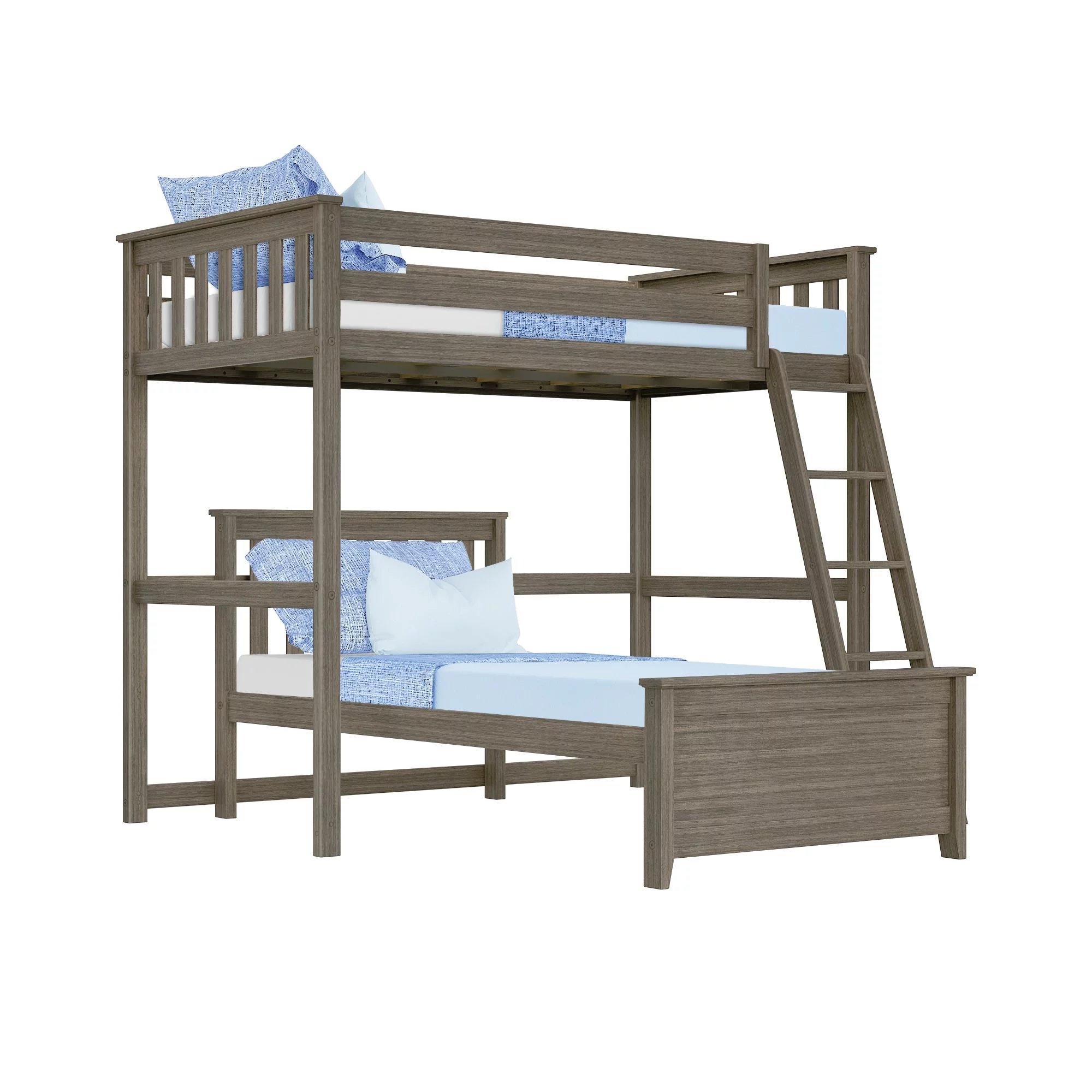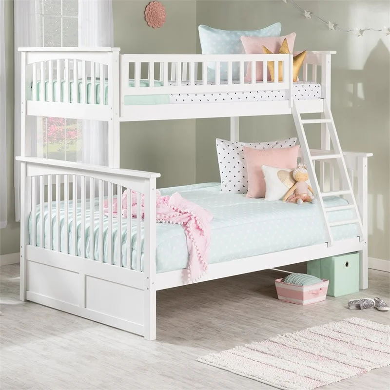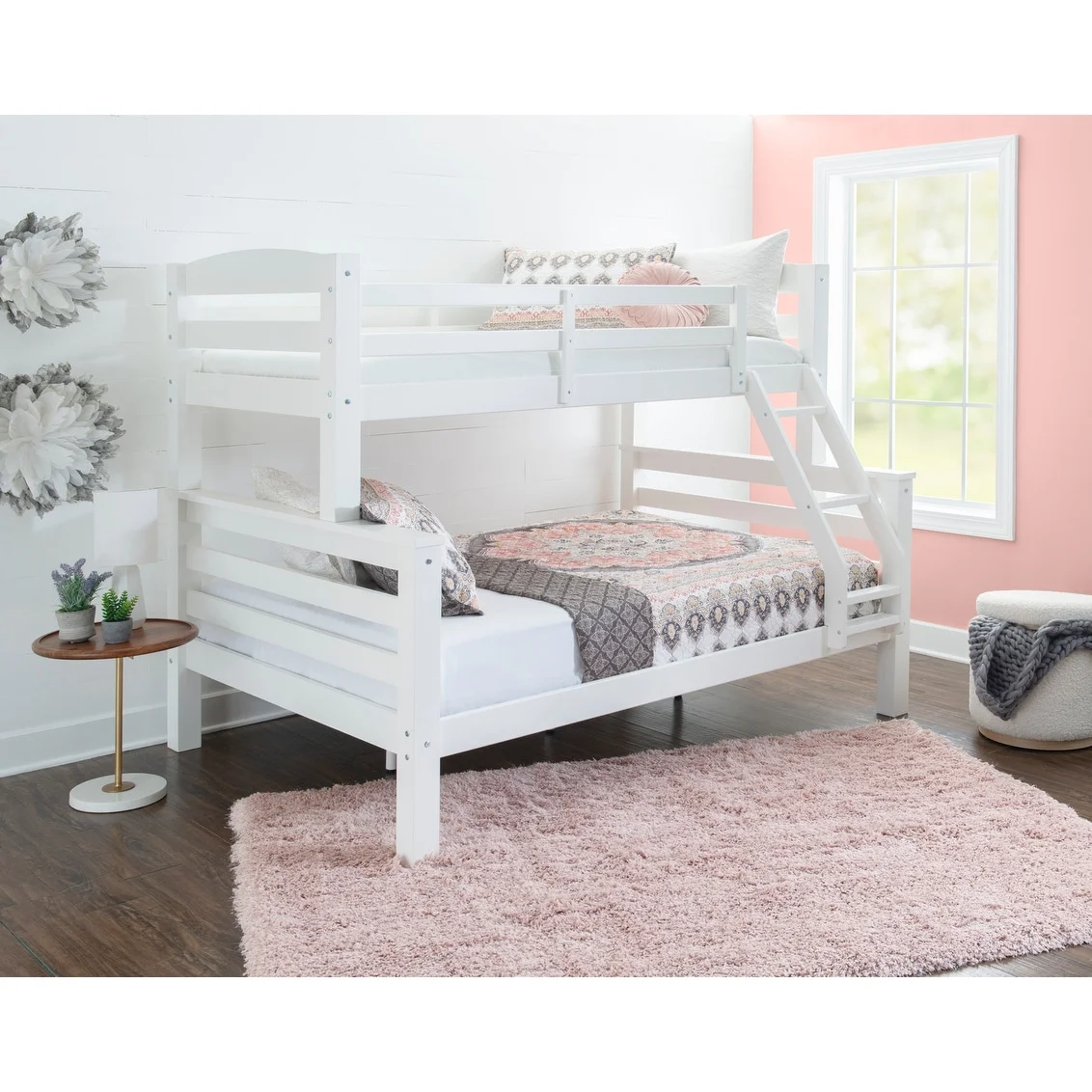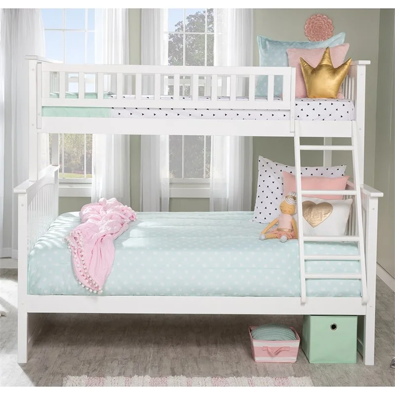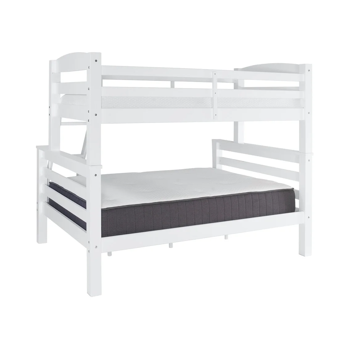 Leo & Lacey Modern Wood Twin Over Full Bunk Bed with USB Charger in White