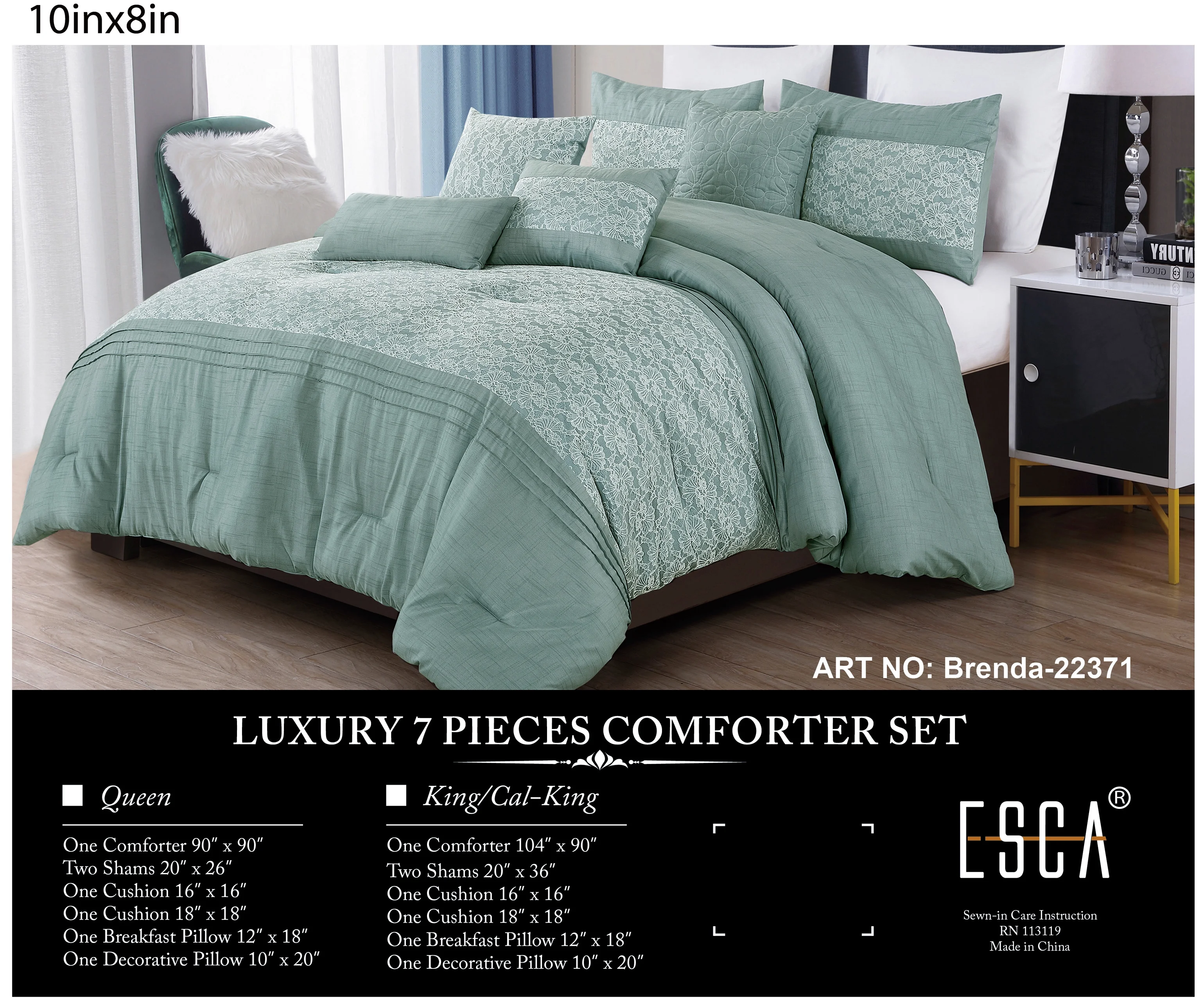 HIG 7 Pieces Embroidery Comforter Set Sage Green Pleat Bed in A Bag, Queen