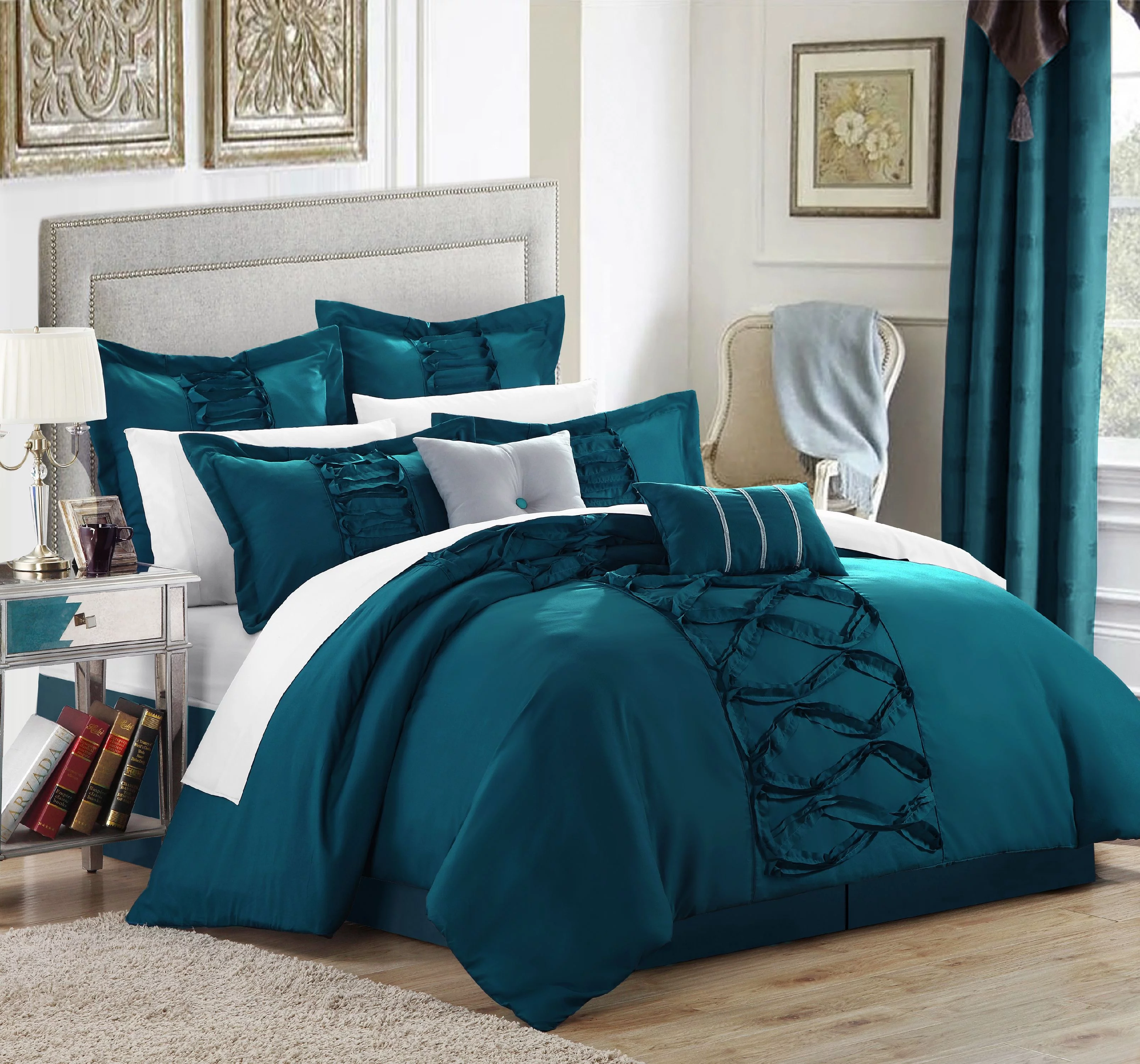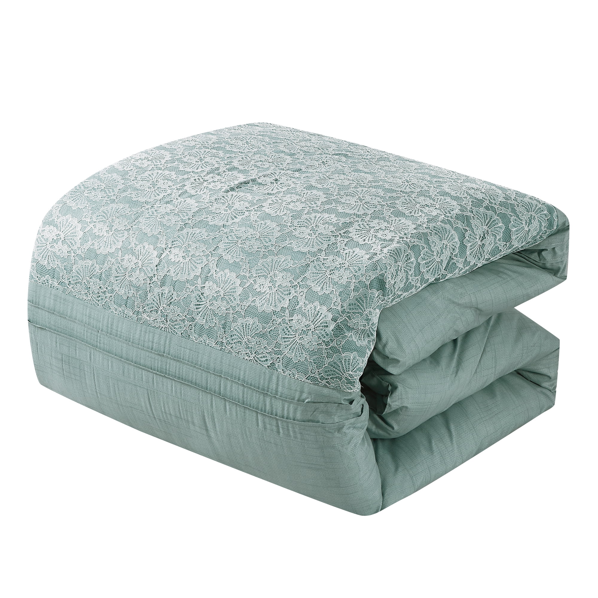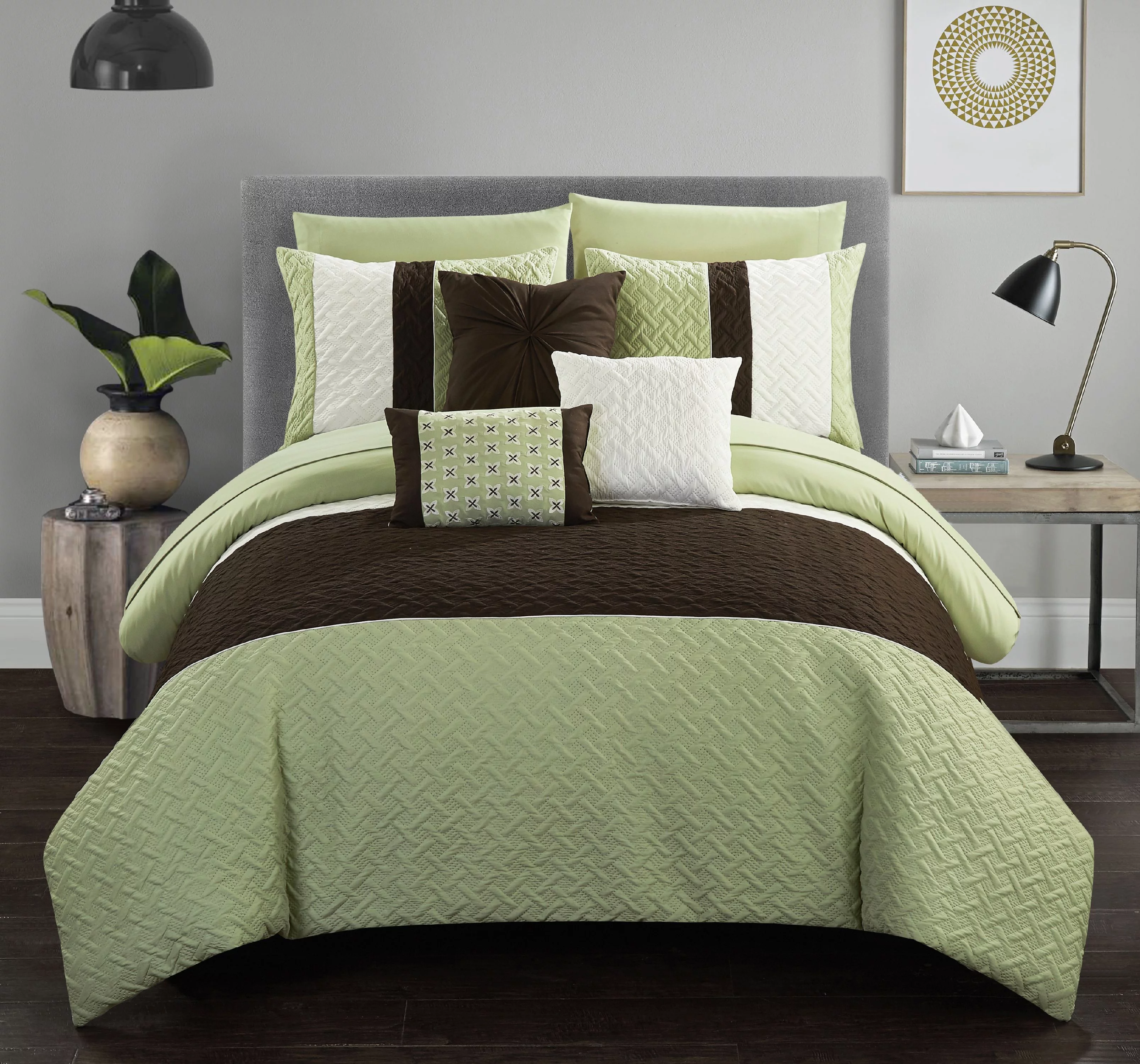 Chic Home Arza 10-Piece Color Block Embroidered Bed in a Bag Comforter Set, Queen, Green