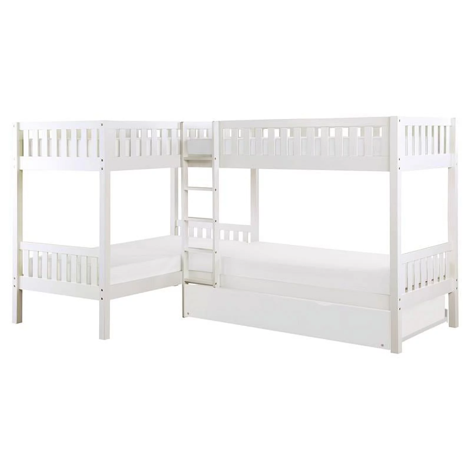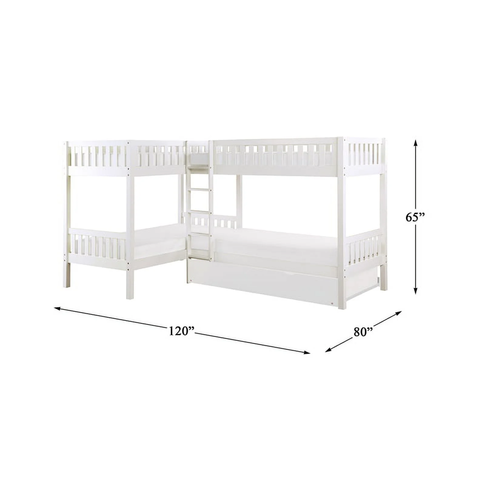 Lexicon Galen Transitional Wood Corner Bunk Bed with Twin Trundle in White